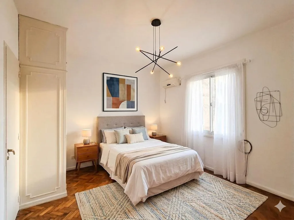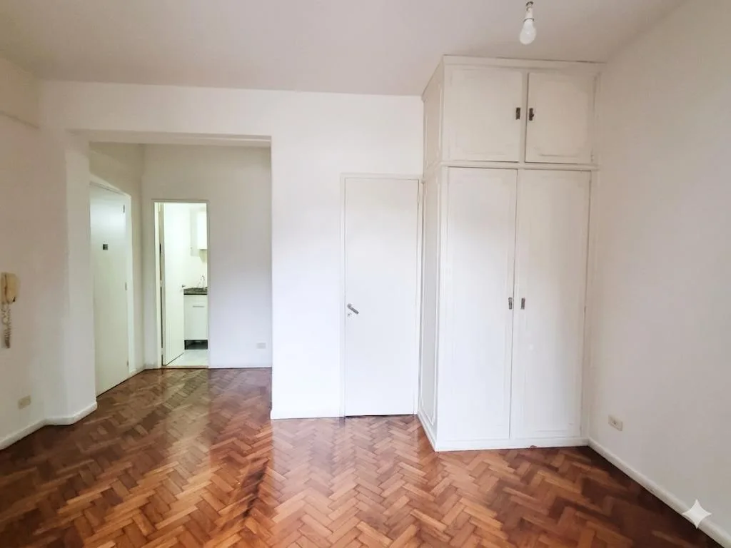 Квартира-студия в аренду в Balvanera. Площадь не указана. Окна выходят на восток, в комнате есть встроенный шкаф (placar). Паркетный пол, совмещённый санузел с ванной и естественным освещением. Отдельная кухня с электрическим бойлером (termo) и электрической плитой (anafes). Коммунальные платежи не указаны. Стандартный договор на 24 месяца: аванс за 1 месяц и залог-страховка (caución) в размере 1 месяца в USD, индексация раз в квартал по ICL. Без домашних животных, ограничения по доступности для