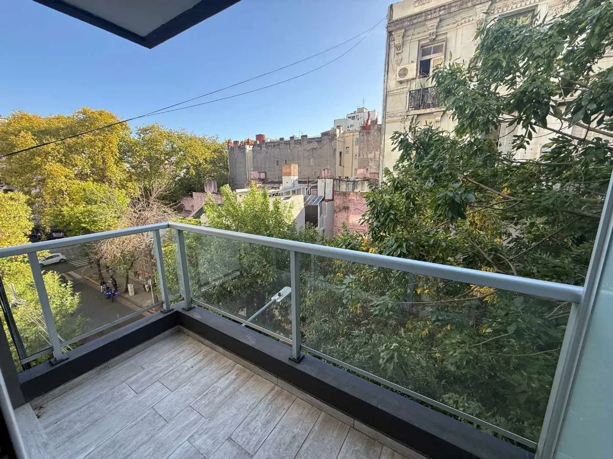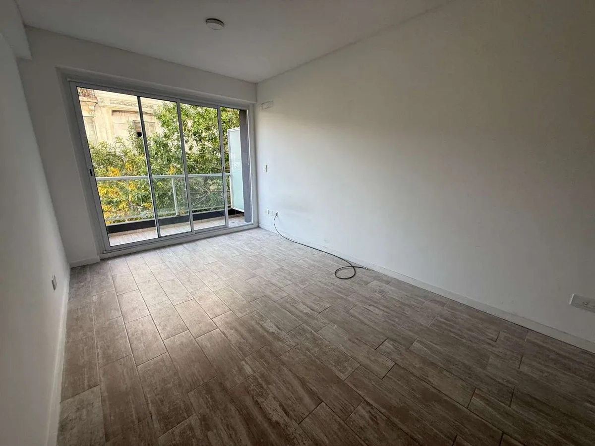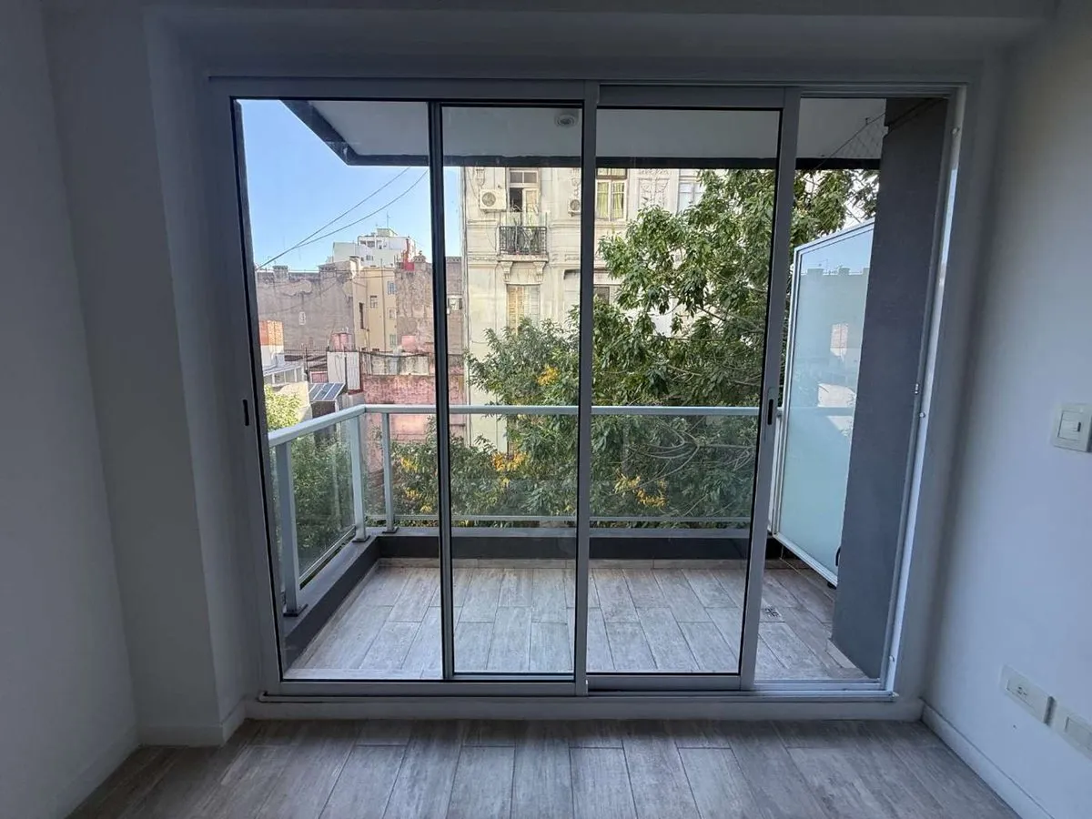 Квартира-студия площадью 34 m² в Balvanera, 4-й этаж. Новая, окна на запад, есть балкон. Встроенный шкаф. В описании указано, что вода и электроэнергия включены в коммунальные платежи здания (expensas). Дом построен в 2025 году, вход на Sarandí.