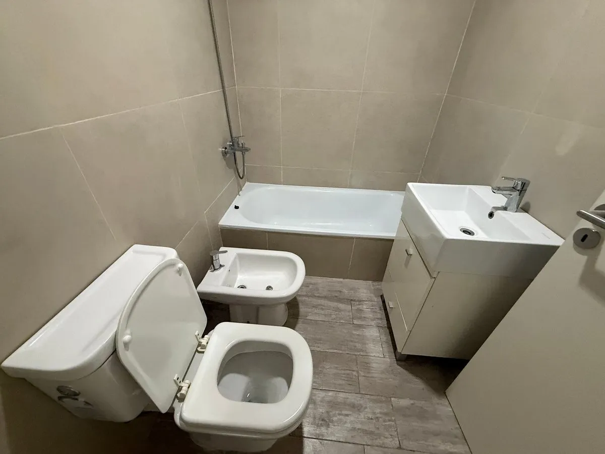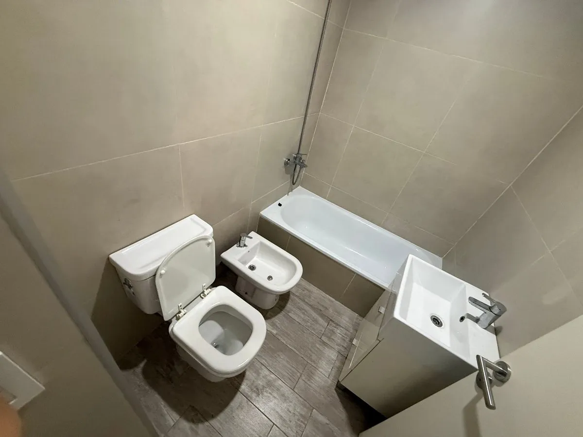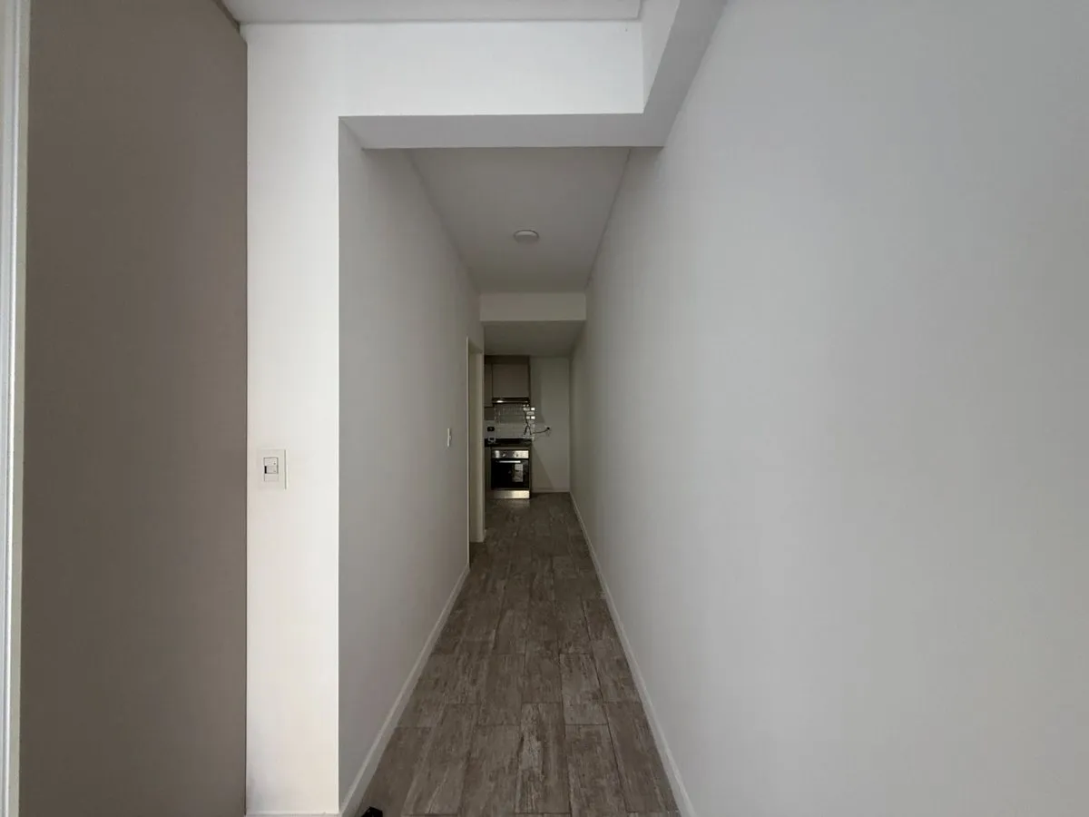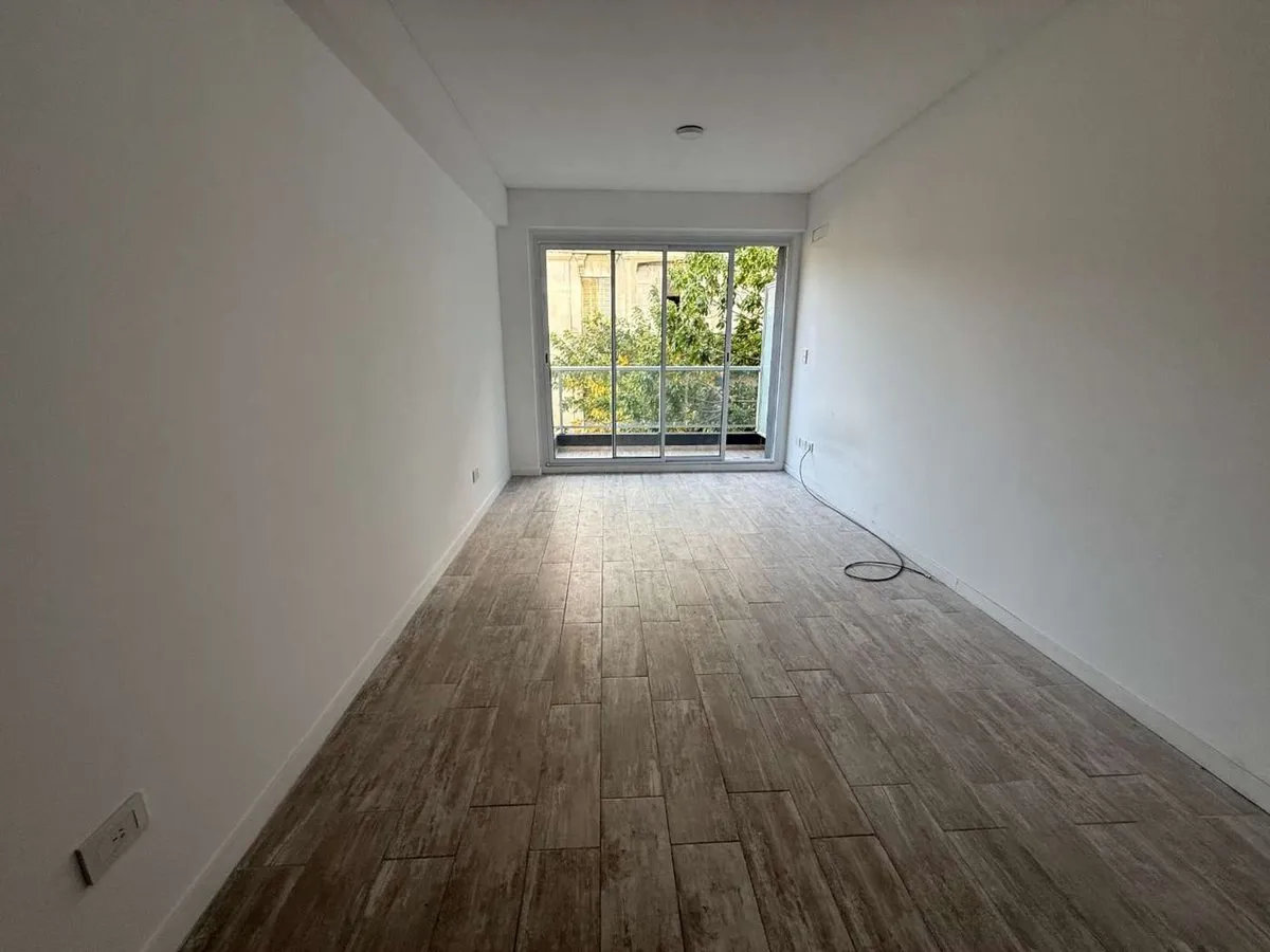 Квартира-студия площадью 34 m² в Balvanera, 4-й этаж. Новая, окна на запад, есть балкон. Встроенный шкаф. В описании указано, что вода и электроэнергия включены в коммунальные платежи здания (expensas). Дом построен в 2025 году, вход на Sarandí.