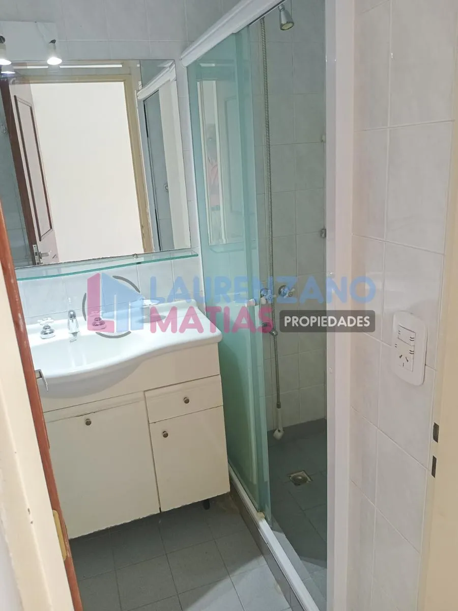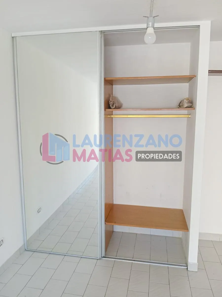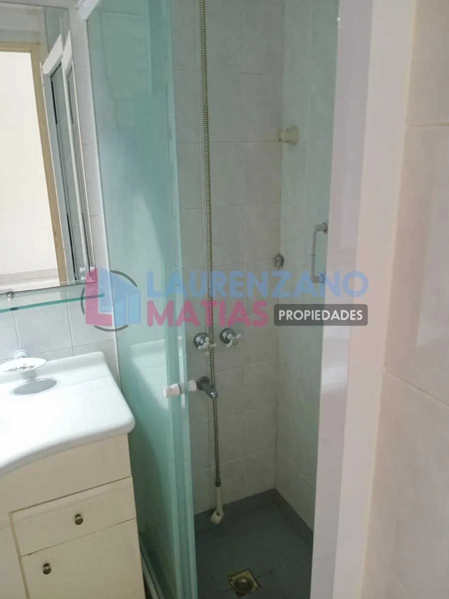 Квартира-студия площадью 7 m x 3,20 m в Almagro, окна во двор (contrafrente) с балконом и остеклением. В комнате установлен шкаф с двумя распашными дверцами с зеркальными вставками и внутренним наполнением. Отдельная ванная с тумбой (vanitory) и местом под душ с перегородкой, отдельная кухня с окном во двор и мебелью, столешницей из гранитного мрамора, двумя раковинами из нержавеющей стали (одна для зоны мойки), подключением для стиральной машины, кухонной плитой и индивидуальным газовым водонаг