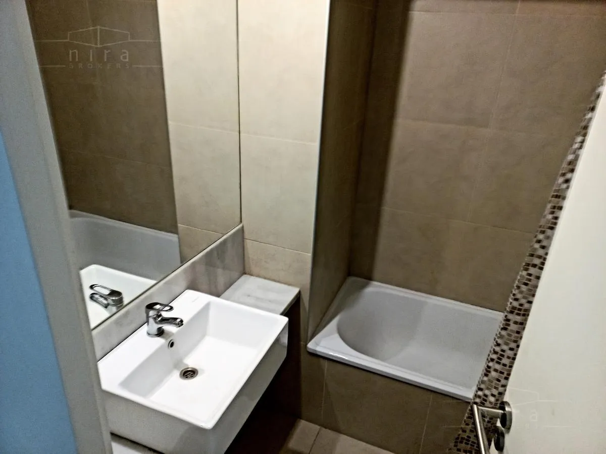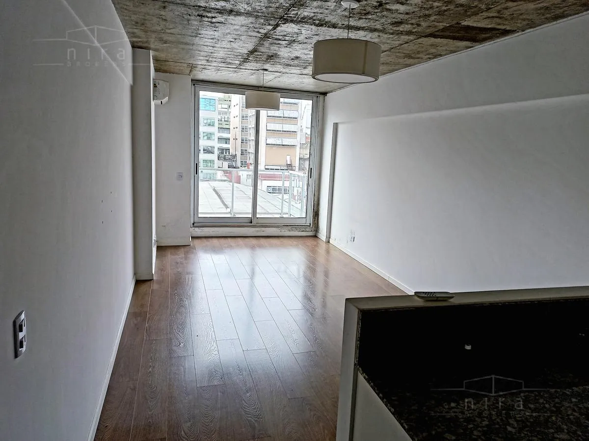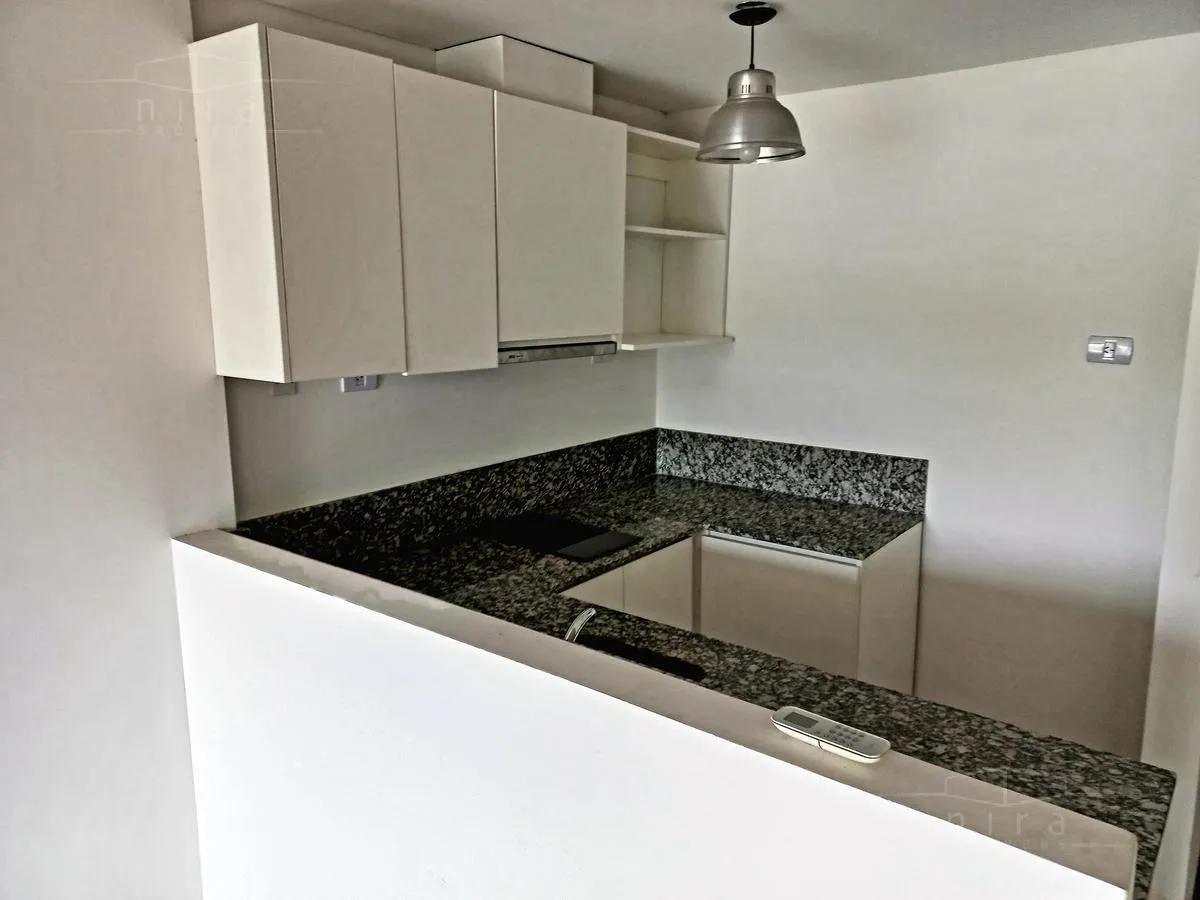 Квартира-студия на 6-м этаже, окна во двор. Интегрированная кухня, тёплая вода центральная. Электрические конфорки, установлен кондиционер (холод/тепло). Столешницы из гранита на кухне и мрамора в ванной, напольное покрытие из винила, алюминиевые стеклопакеты DVH. Здание с лифтом, есть генератор и общие удобства: солярий с душем и зоной гриля, а также laundry. Коммунальные платежи здания (expensas) и ABL по последним данным нужно уточнять.
