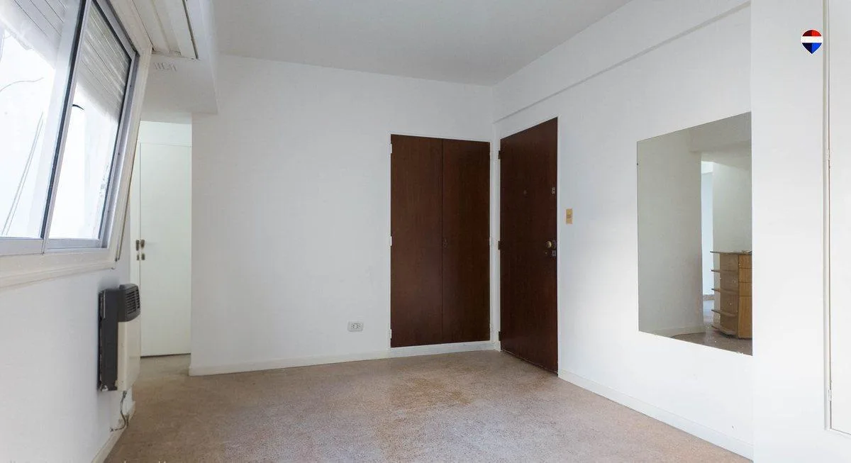 Квартира-студия площадью 28 m² на 9-м этаже по адресу Calle Paraguay 2600 в Balvanera. Окна выходят во внутренний двор квартала, в помещении предусмотрены естественное освещение и вентиляция. Отдельная небольшая спальня с окном в pulmón de manzana и отдельная ванная комната с душем. Кухня в формате kitchenette расположена в зоне коридора-раздевалки. Квартира с функциональной планировкой и подходит для профессионального использования.