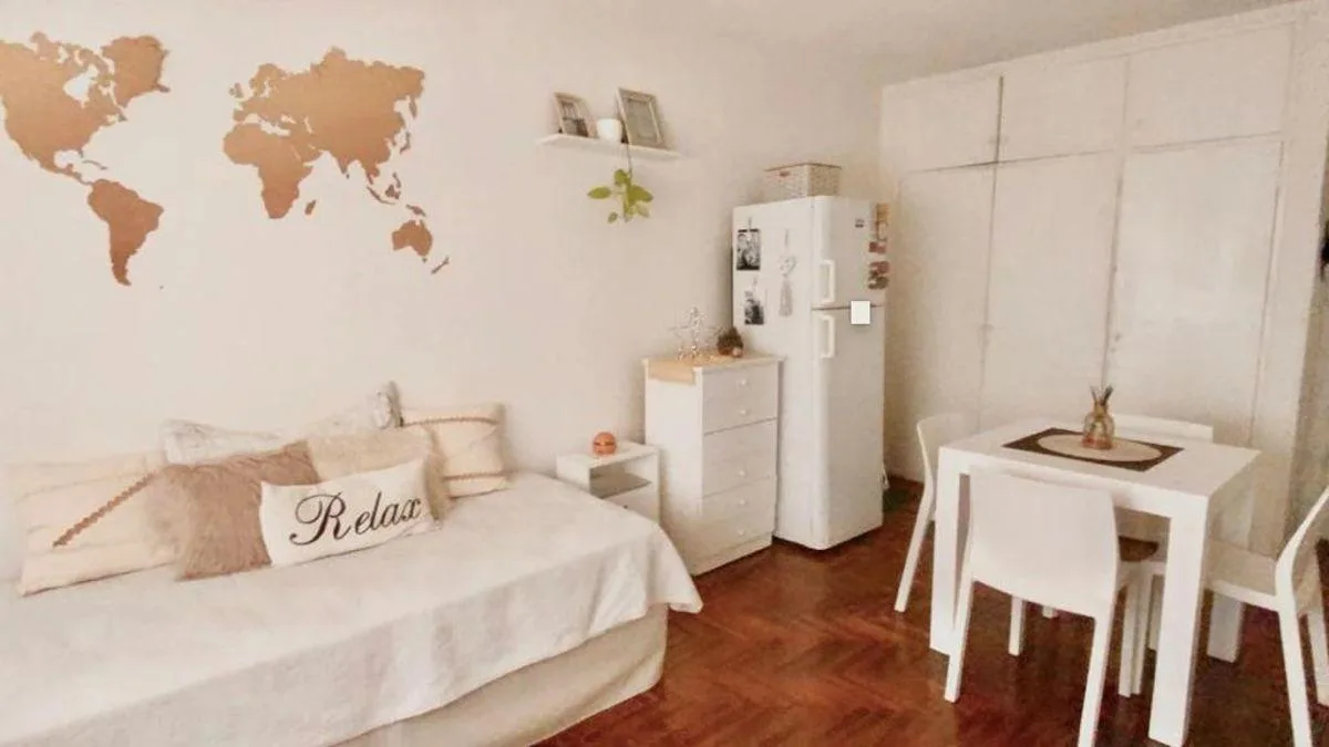 Квартира-студия площадью не указана в Balvanera, меблирована. Полный санузел, горячая вода от электрического термотанка. Отопление и охлаждение обеспечиваются кондиционером сплит, кухня на газу, напольное покрытие — паркет. Коммунальные платежи здания пониженные. Доступна с мая 2026 года.