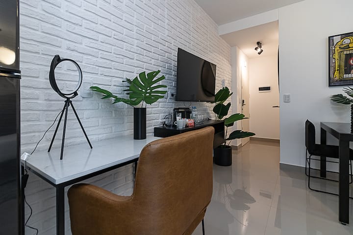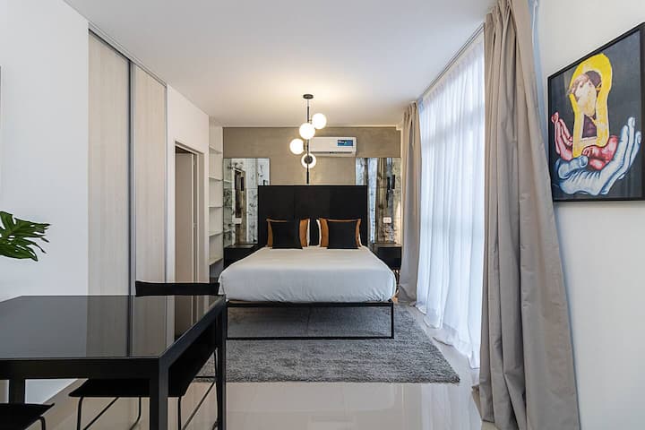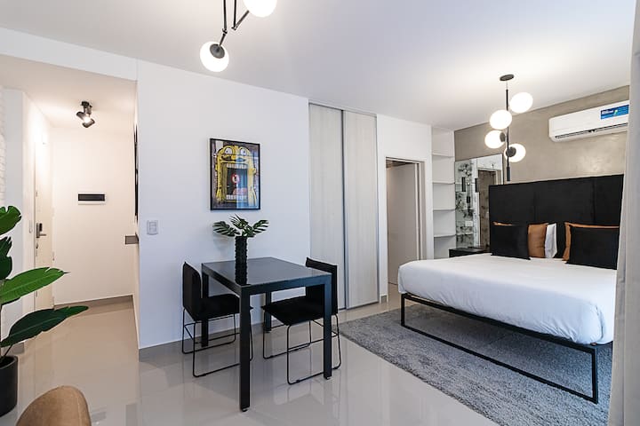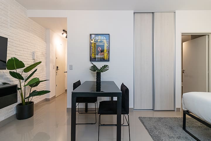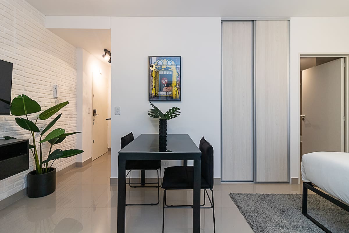 Квартира-студия в Balvanera. Предусмотрен бесконтактный заезд. В здании есть высокоскоростной WiFi, Nespresso™ кофе и чай, круглосуточная бесплатная прачечная, хранение багажа, бассейн и солярий. Заселение осуществляется по двум кодам доступа: QR-коду для входа в здание и индивидуальному коду для доступа в квартиру.