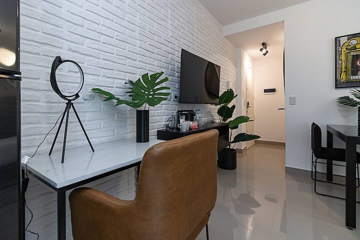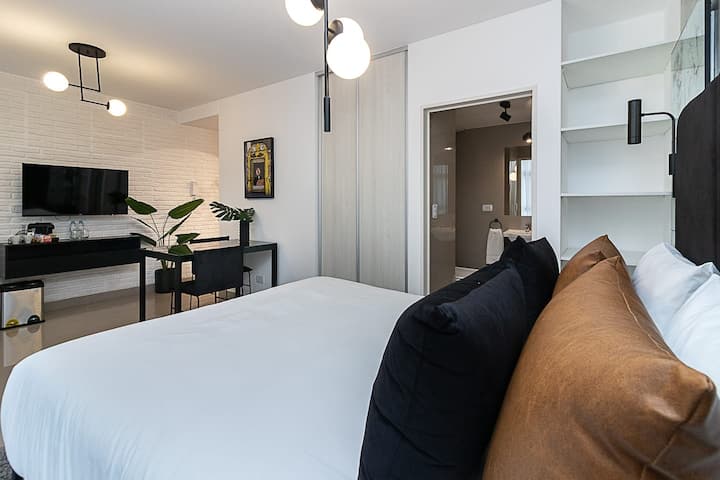 Квартира-студия в Balvanera. Заселение с бесконтактной регистрацией, высокоскоростной WiFi, кофе и чай Nespresso™, круглосуточная бесплатная прачечная в здании. В распоряжении гостей камера хранения багажа, бассейн и солярий. Доступ осуществляется по двум кодам: QR-код для входа в здание и индивидуальный код для входа в квартиру.
