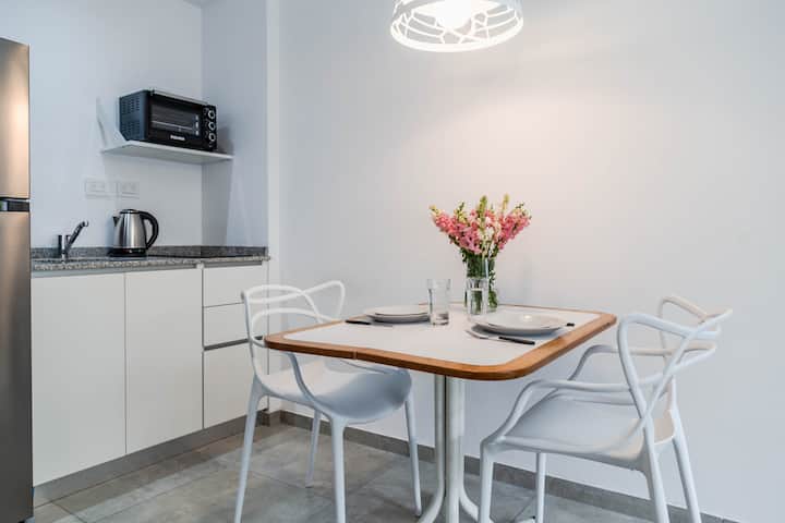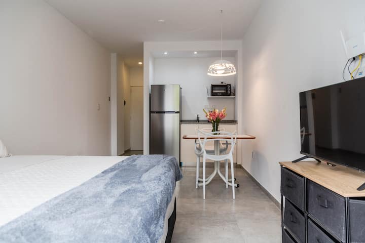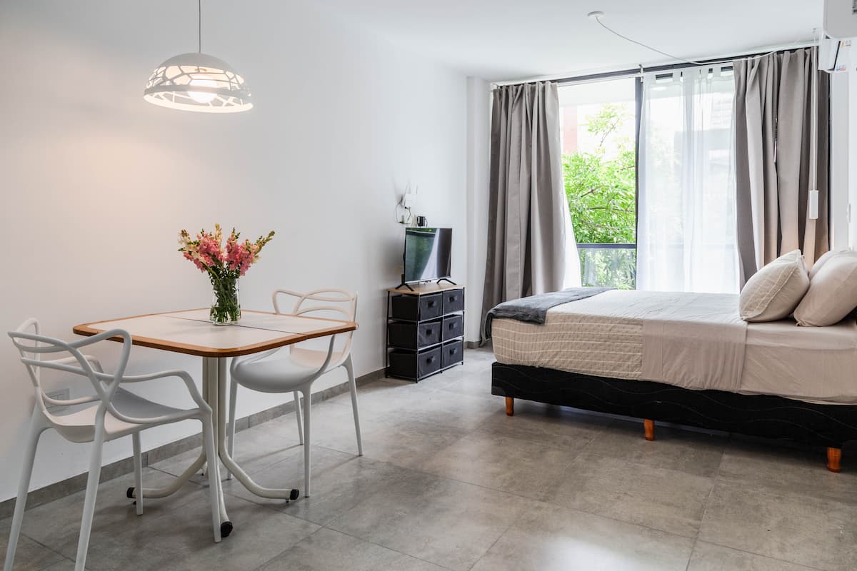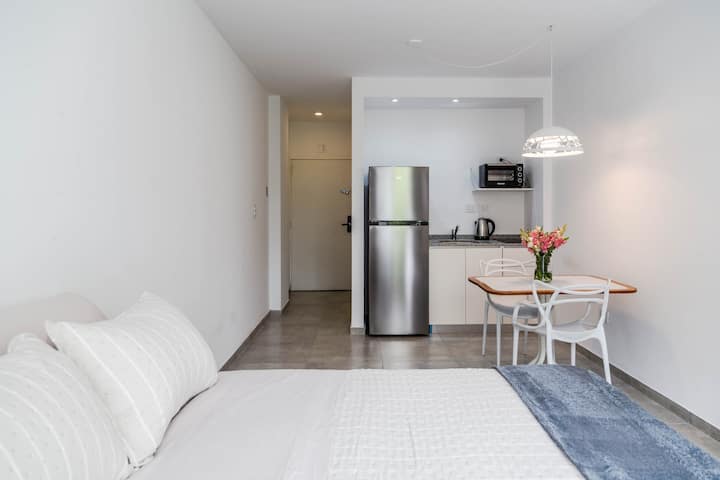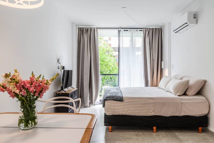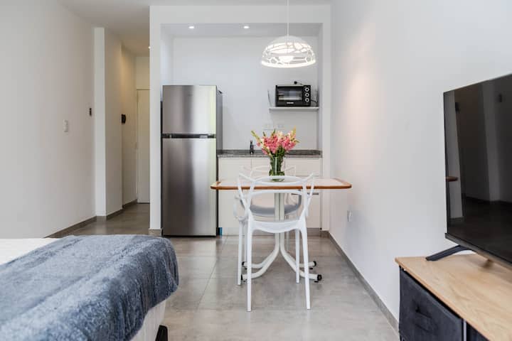 Квартира-студия в Congreso. Площадь не указана. Новая отделка; полностью оборудованная кухня, кондиционер, телевизор. Есть ванная комната и балкон. Доступ в здание организован через электронный замок. В здании предусмотрены бассейн, общая гостиная для жильцов (SUM), зона гриля, прачечная и общие зоны.