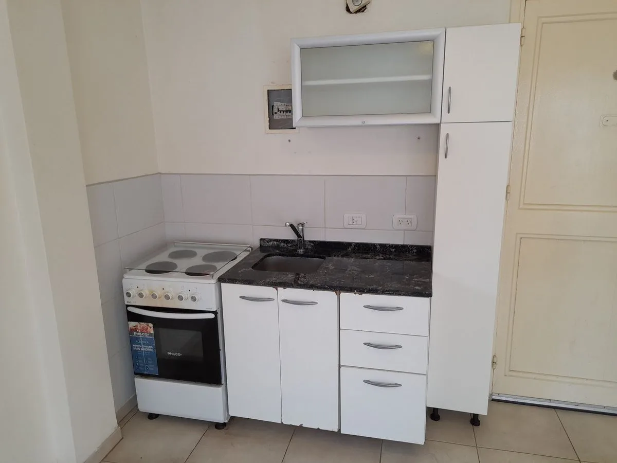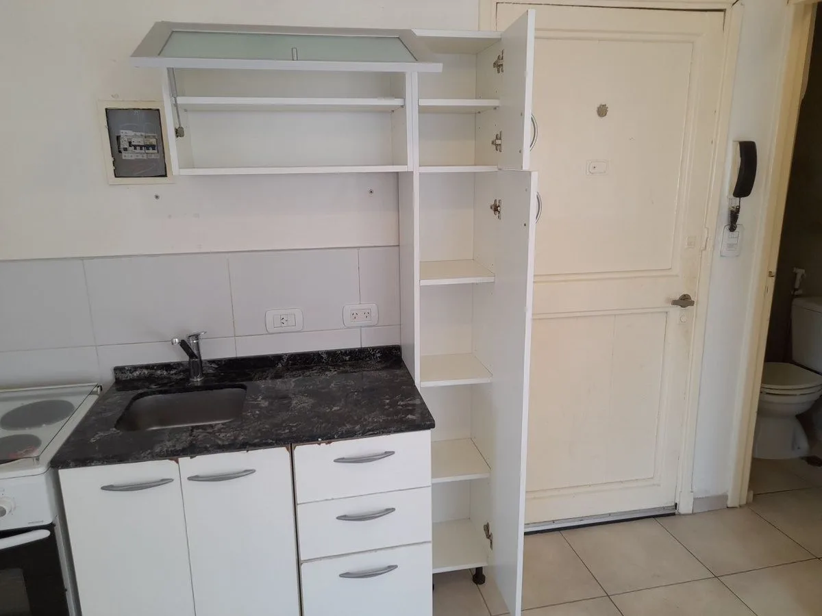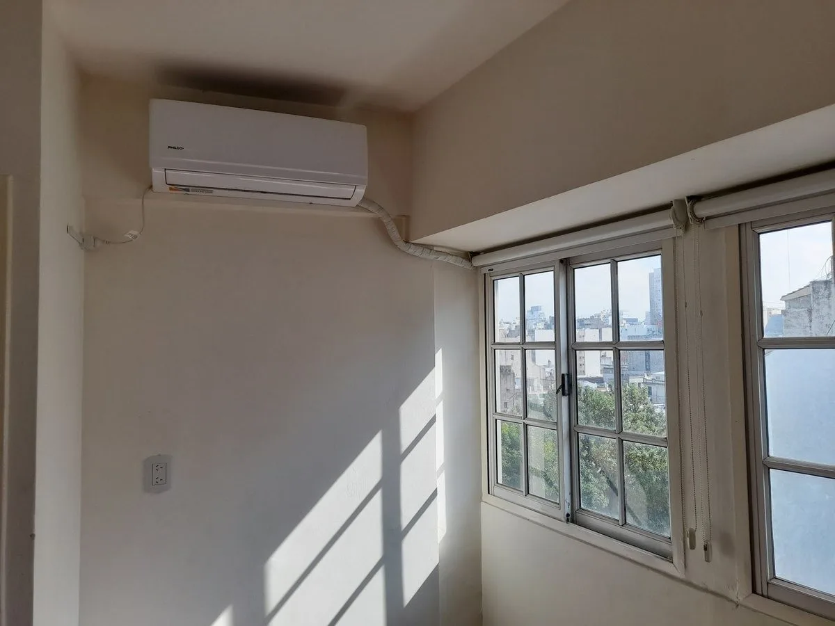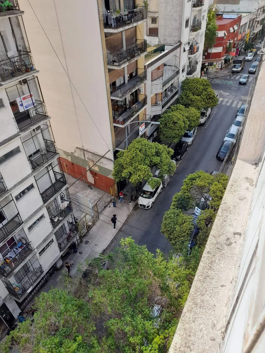 Квартира-студия в Balvanera, на 7-м этаже, с лифтом. Окна выходят на улицу Lavalle. Есть зона кухни с столешницей, навесным шкафом, электрической плитой с духовкой и 4 конфорками, керамическое покрытие пола. Санузел расположен напротив входа и оборудован душем. Жилая зона с паркетным покрытием, встроенный шкаф; предусмотрены шторы. Срок аренды на 1 год, с возможностью продления. Условия заселения: максимум 2 человека. Коммунальные платежи и стоимость аренды без уточнений по публикации.