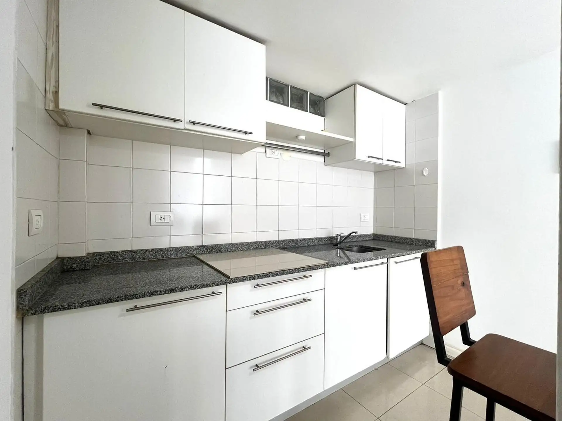 Квартира-студия с балконом на улицу. Кухня полуинтегрированная, ванная комната с ванной. Есть шкаф, кондиционер (холод/тепло) и горячая вода от бойлера. Коммунальные платежи здания и ABL включены в цену.