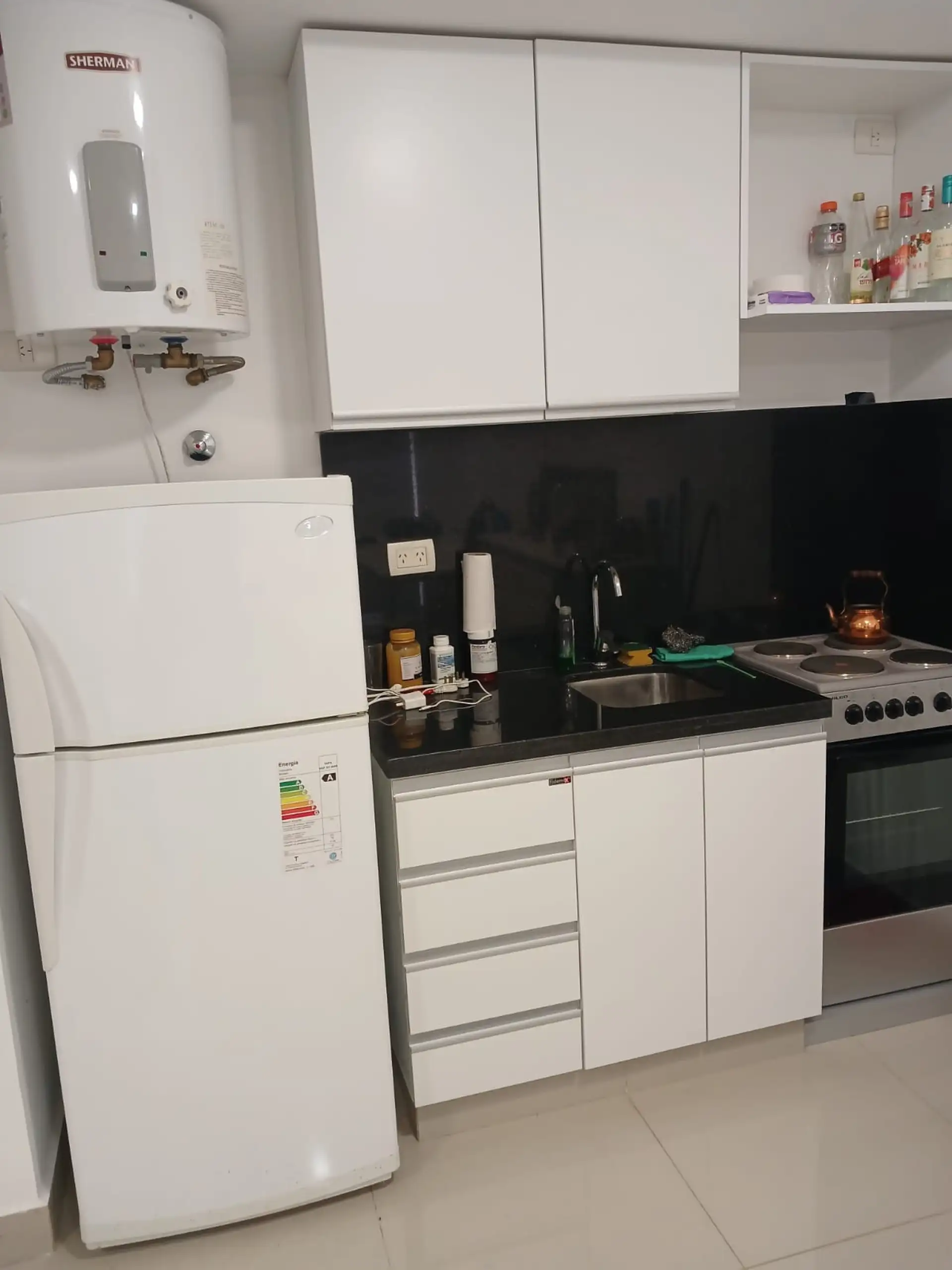Квартира-студия площадью 42 m² на высоком этаже, окна во двор. В студии установлен кондиционер холод/тепло, есть выход на балкон. Кухня интегрирована в комнату, ванная с ванной; полы — керамогранит. Отдельные индивидуальные электросчётчики, всё электрическое. Коммунальные платежи здания составляют около $140.000. Аренда возможна с мебелью или без. В здании есть зона гриля, прачечная и система безопасности с постом (totem).