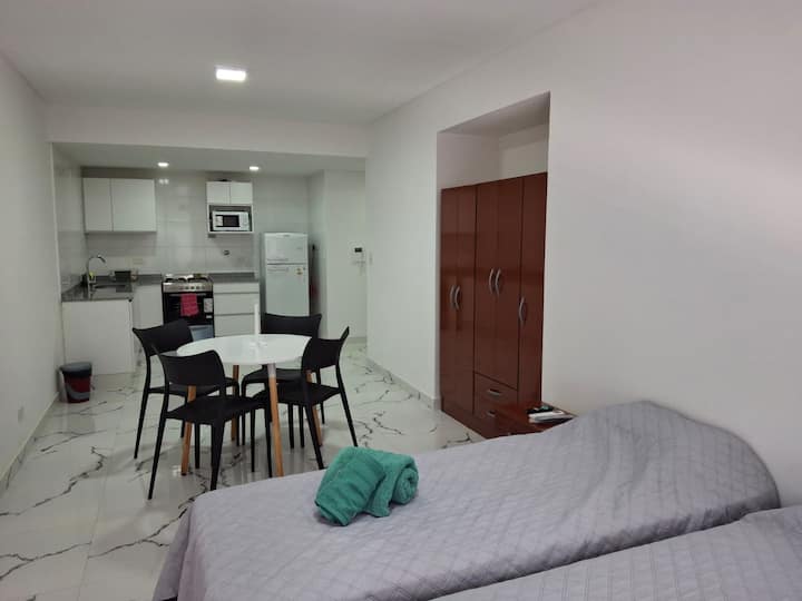 Новая квартира-студия в Balvanera. Окна выходят на Coto Aguero и Shopping Abasto. Кухня с интегрированной газовой плитой, отдельная ванная комната. Пол с керамической/фарфоровой плиткой, центральное водоснабжение. В здании есть общая гостиная для жильцов (SUM), бассейн и прачечная.
