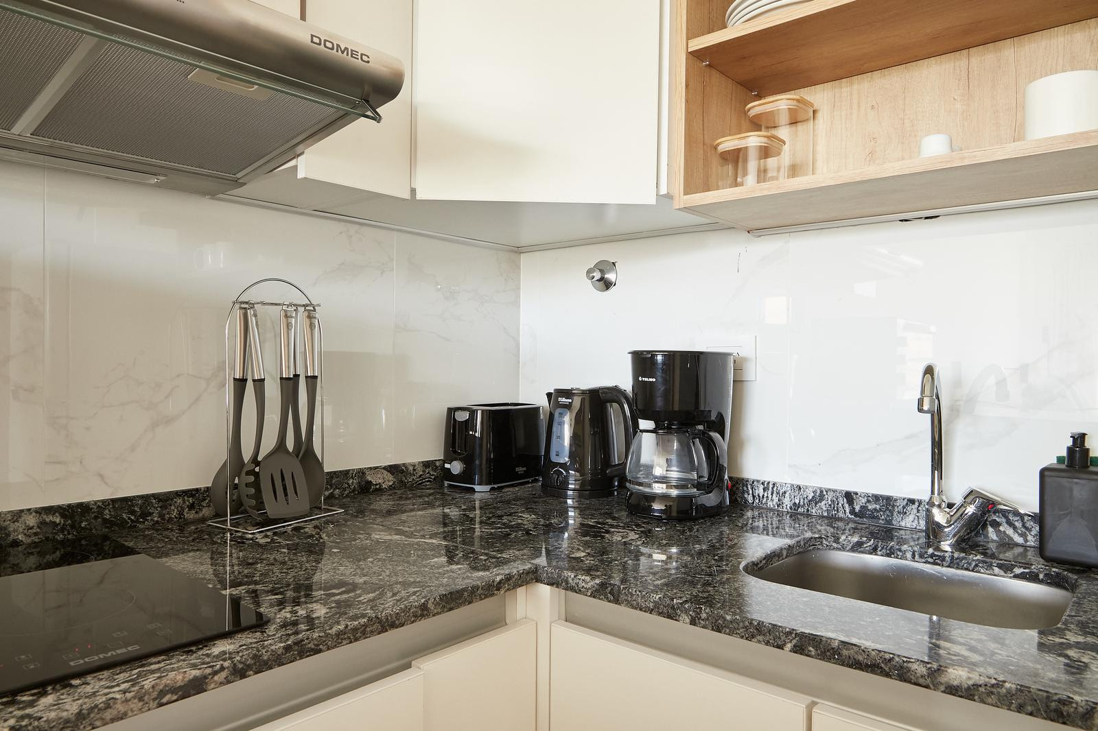 Квартира-студия в Balvanera, аренда на временный срок. Квартира полностью оборудована, есть кухня с бытовой техникой и необходимой посудой. Ванная после ремонта с душем без поддона. Предусмотрены телевизор с сервисами потокового видео и Wi‑Fi. Есть балкон, окна выходят на открытую зелёную зону. В стоимость включены коммунальные платежи здания и услуги: электричество, вода, ABL и Wi‑Fi.