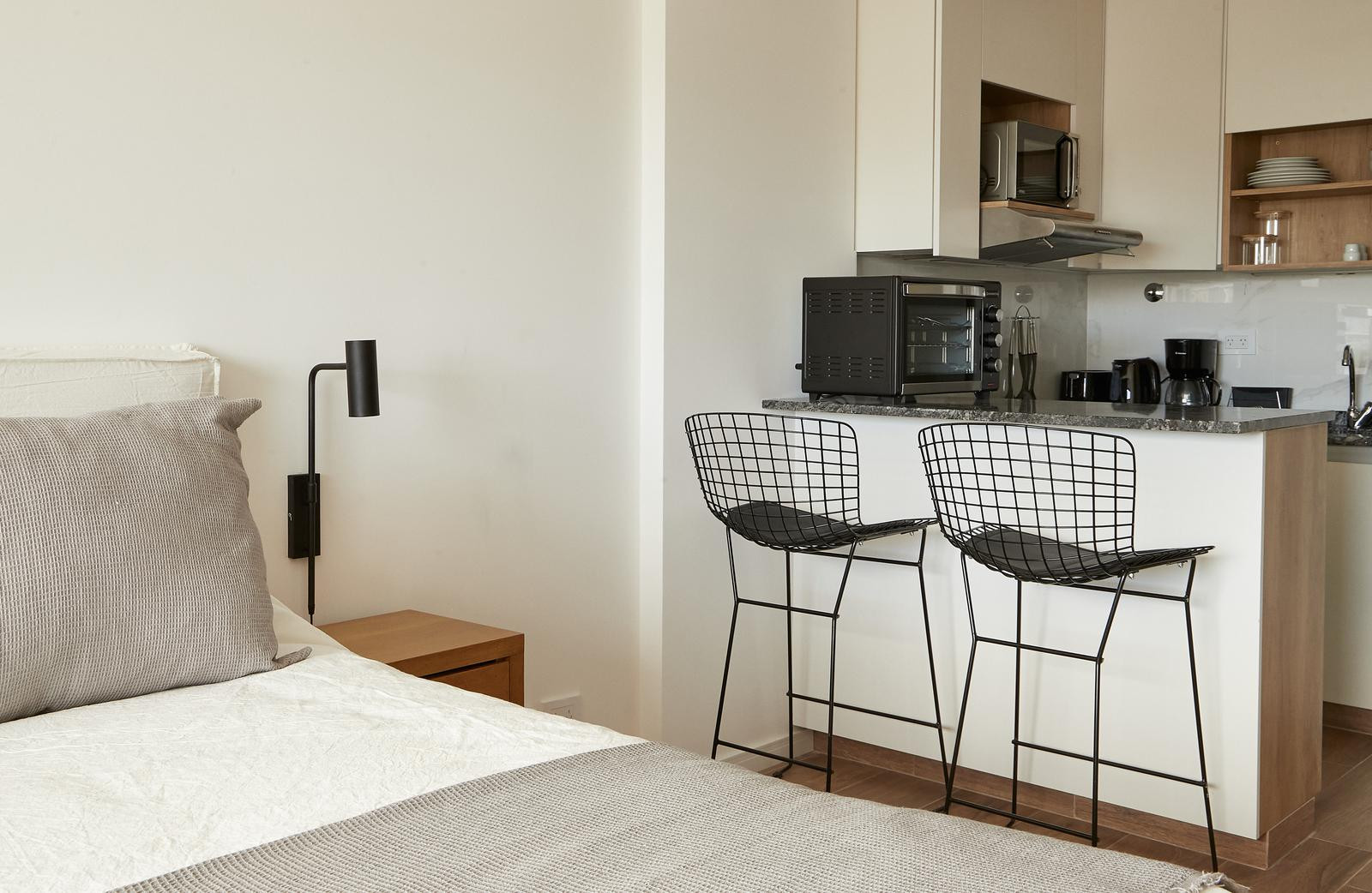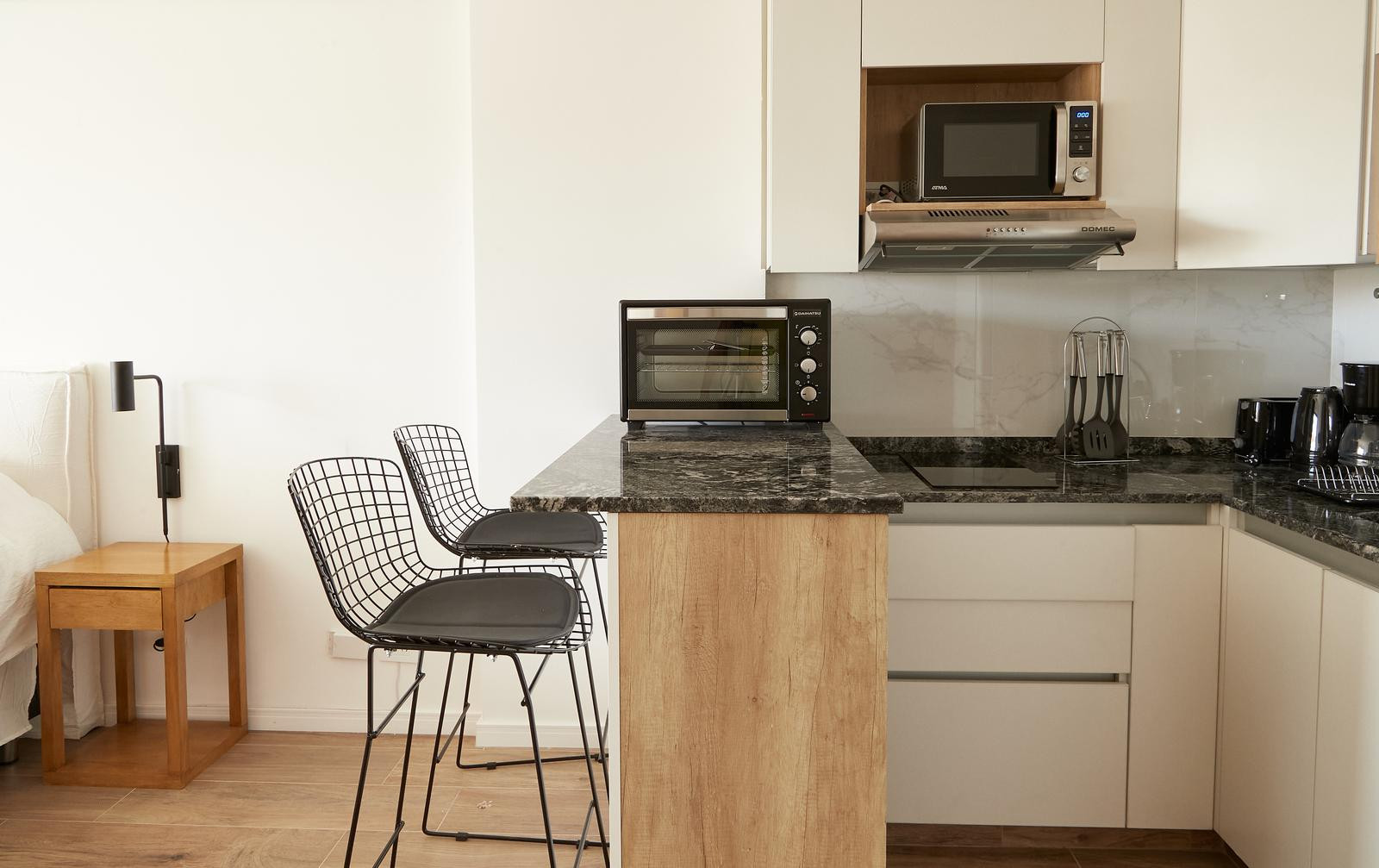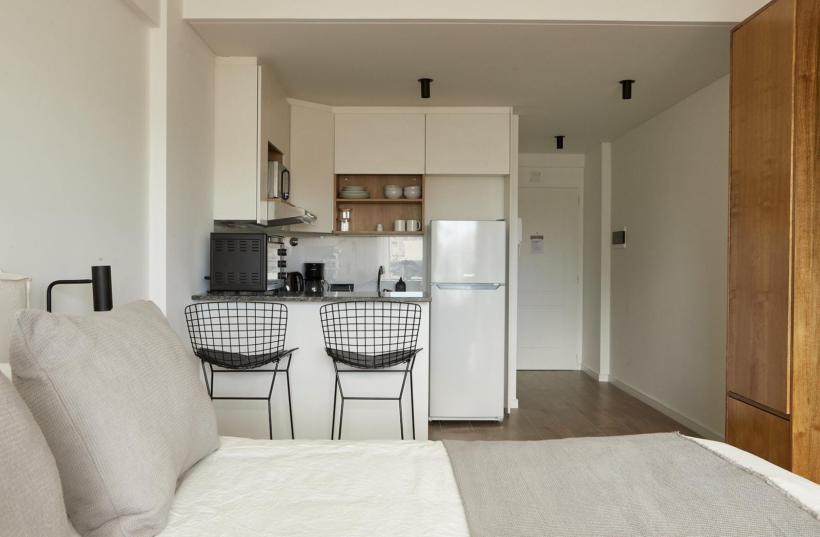 Квартира-студия в Abasto, с мебелью и полностью оборудованной кухней. Ванная комната после ремонта с душем без ступеньки. В квартире есть телевизор со streaming и высокоскоростной Wi‑Fi. Имеется балкон с открытым видом на зелень. В стоимость включены коммунальные платежи здания и услуги: электричество, вода, ABL, Wi‑Fi.