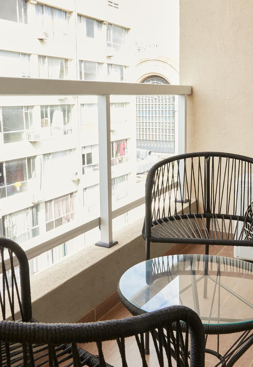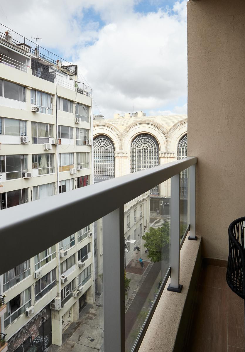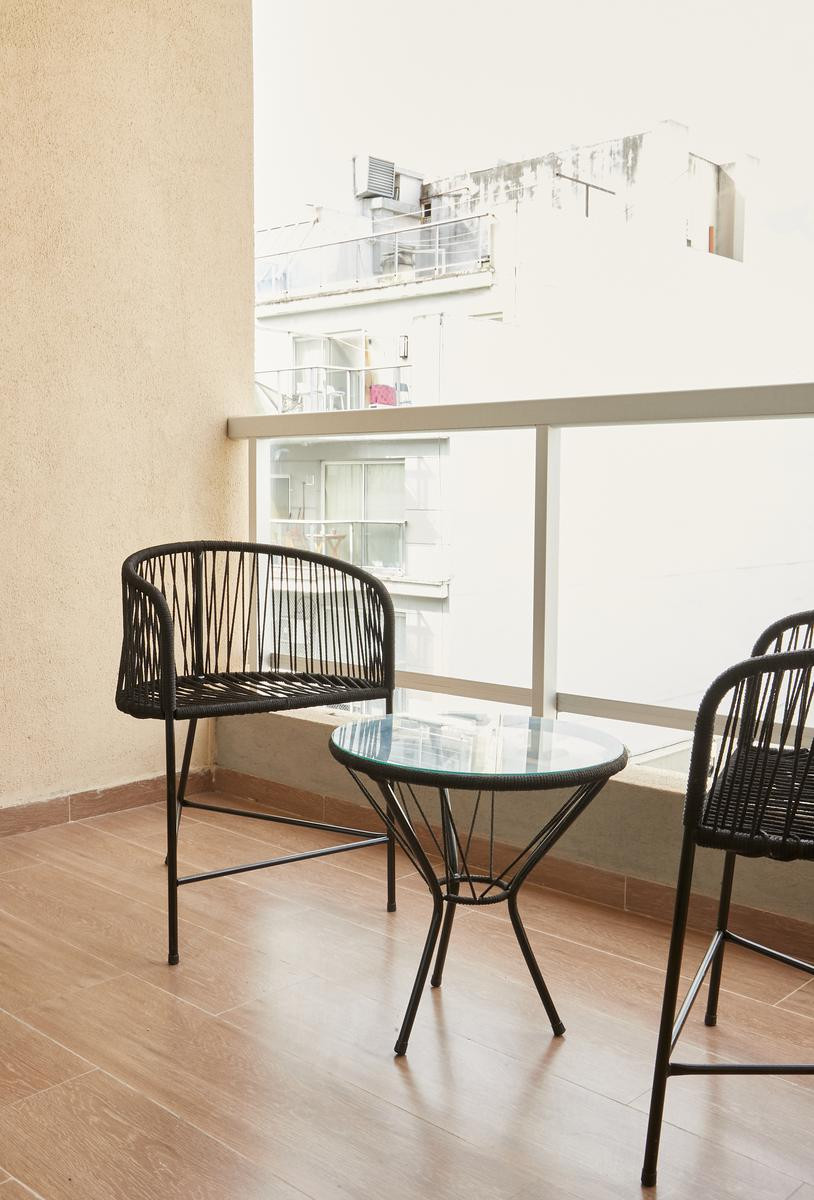 Квартира-студия с мебелью и полностью оборудованной кухней, в Balvanera. В ванной комнате сделан недавний ремонт: душевая на уровне пола. Есть телевизор с сервисами потокового видео и Wi‑Fi. В квартире предусмотрен балкон с открытым и зелёным видом. Цена включает коммунальные платежи здания и услуги: электричество, воду, ABL и Wi‑Fi.