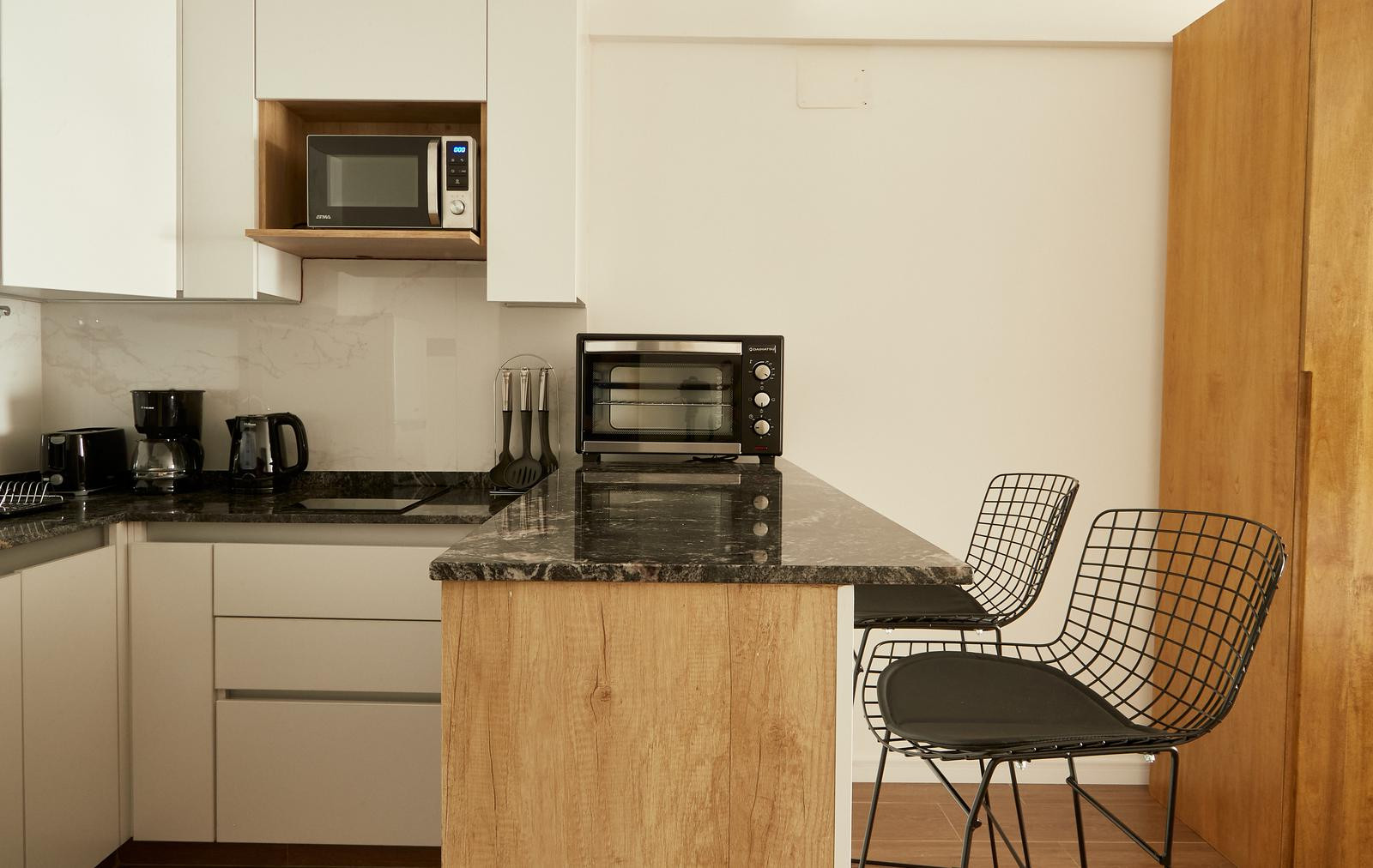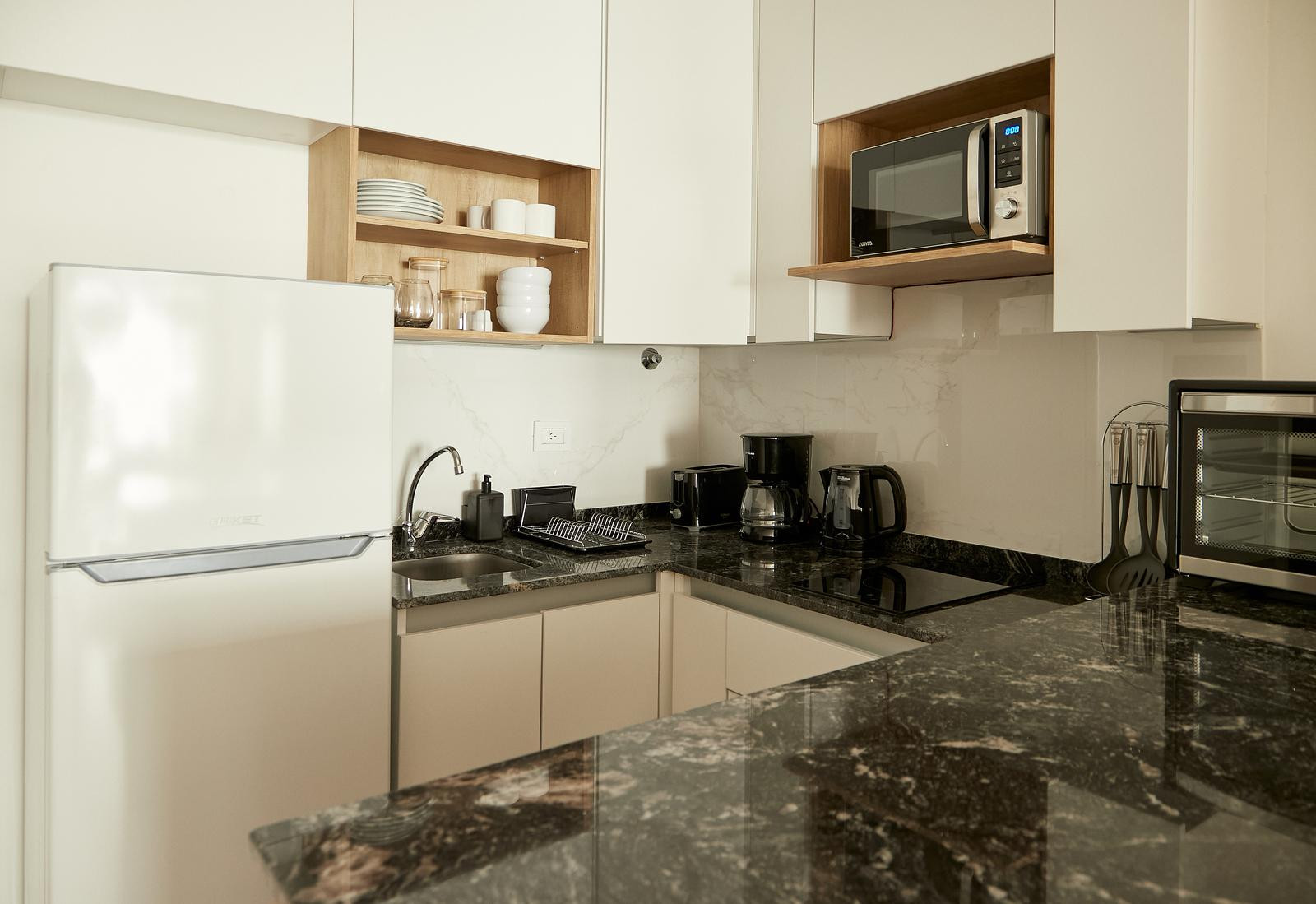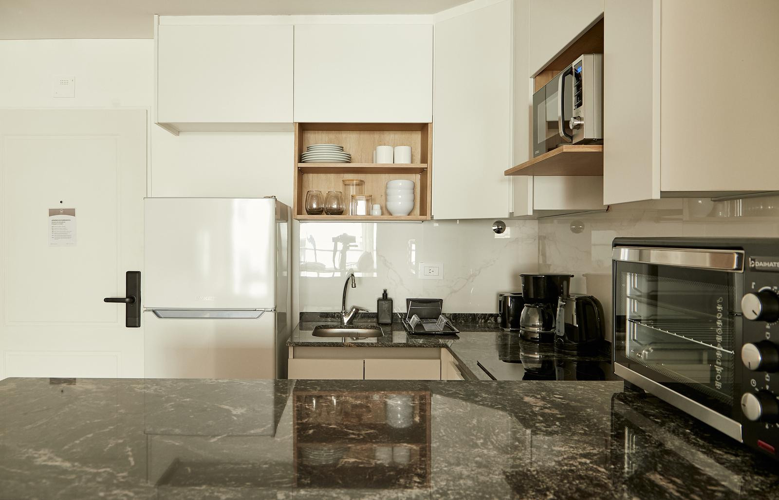 Квартира-студия с мебелью и полностью оборудованной кухней, в Balvanera. В ванной комнате сделан недавний ремонт: душевая на уровне пола. Есть телевизор с сервисами потокового видео и Wi‑Fi. В квартире предусмотрен балкон с открытым и зелёным видом. Цена включает коммунальные платежи здания и услуги: электричество, воду, ABL и Wi‑Fi.