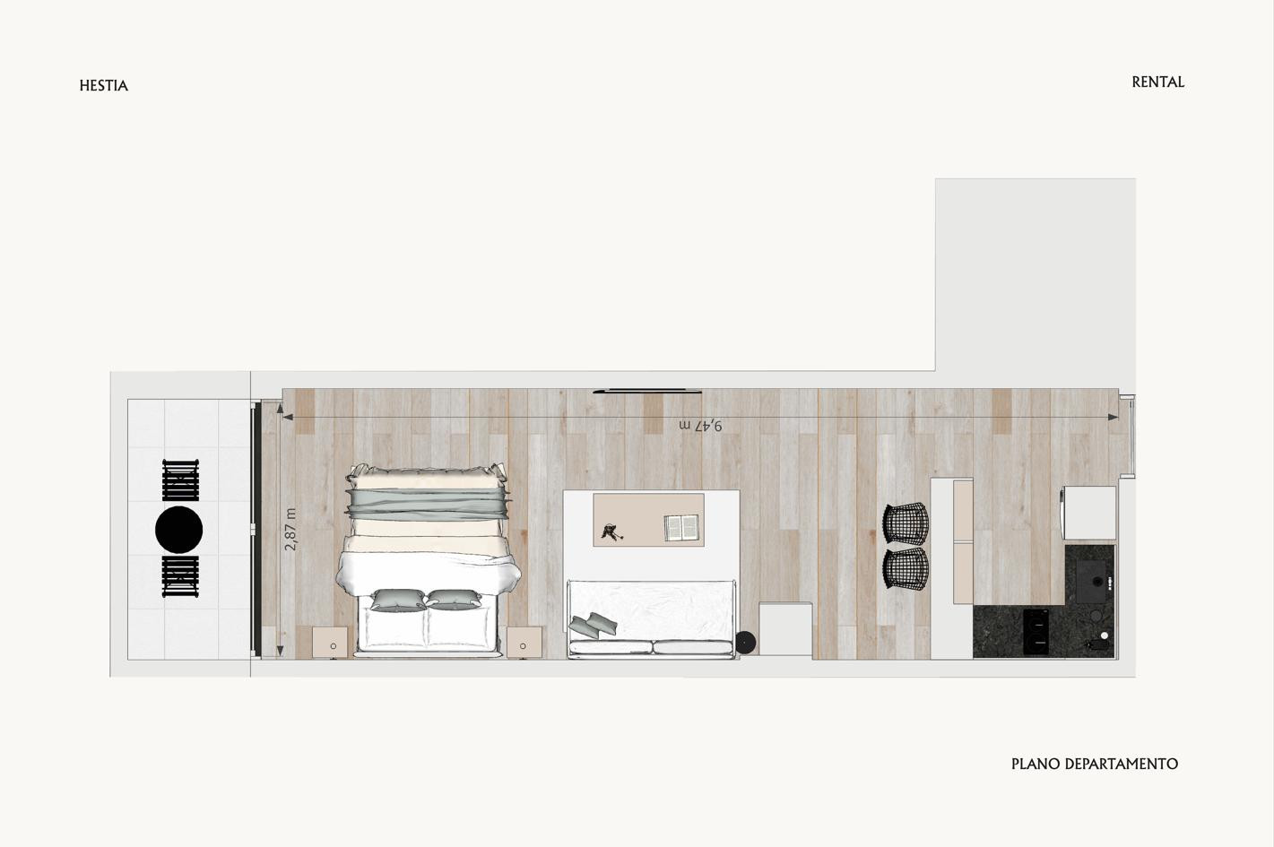 Квартира-студия для временной аренды в Balvanera