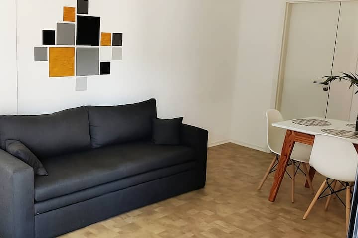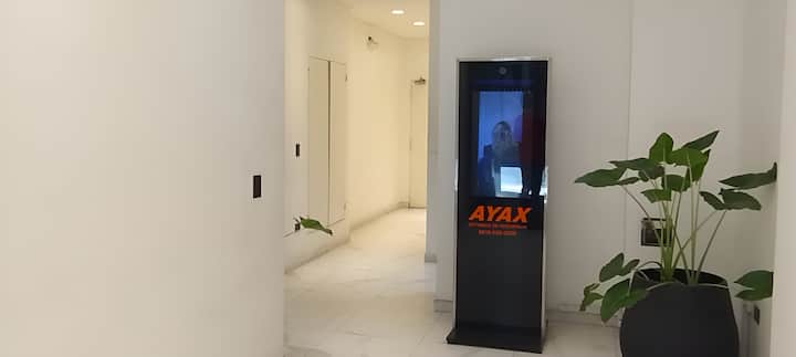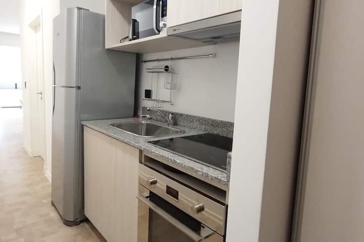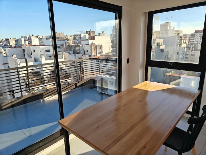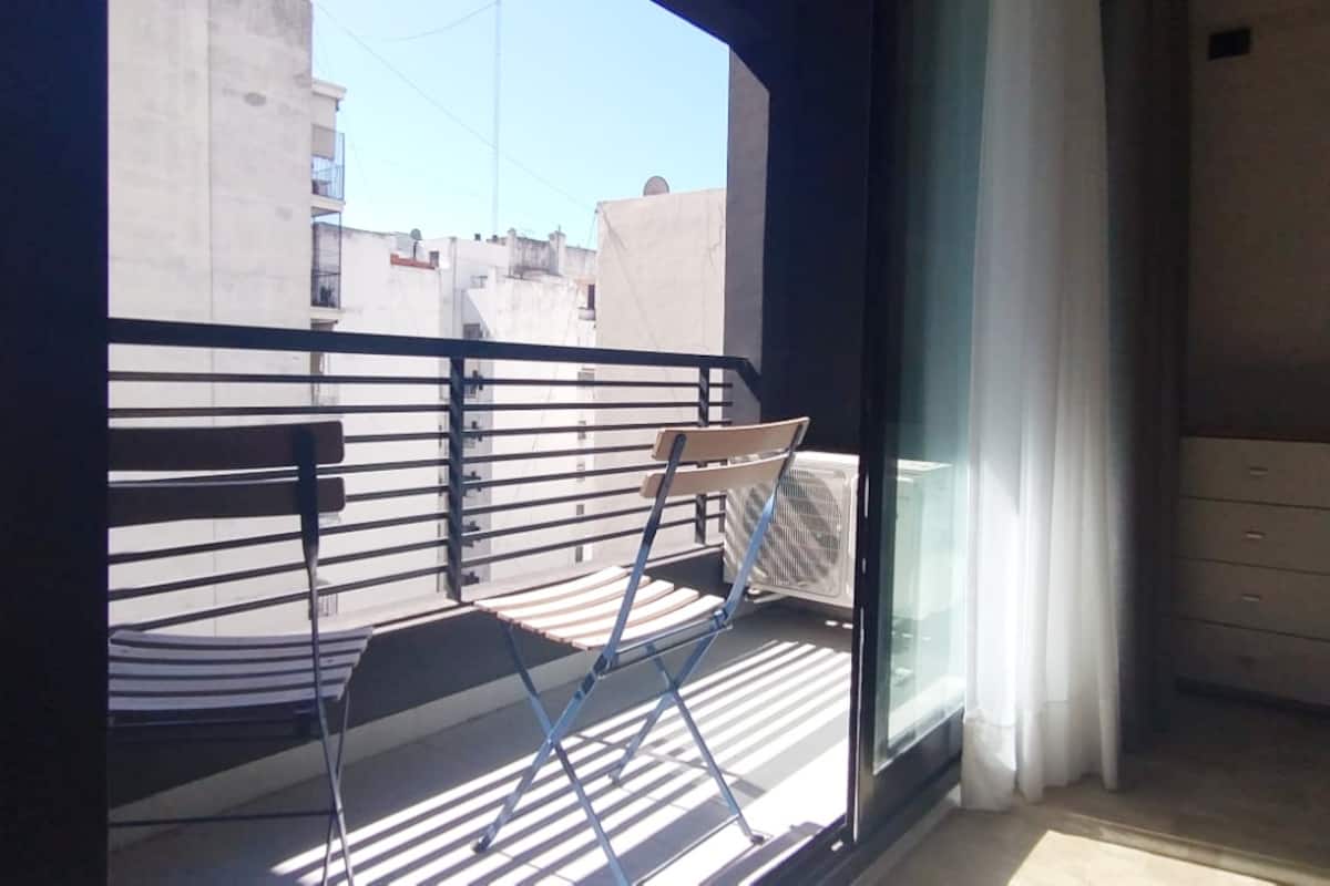 Лофт-студия площадью 47 m² в Barrio Norte, высокий этаж. Окна выходят на тихую сторону; есть балкон 3 m² с санузлом. Здание с круглосуточной охраной, общей комнатой для жильцов, рабочей зоной, террасой и прачечной. В квартире кухня полностью оборудована; есть WiFi. Планировка включает раздвижную двуспальную кровать и диван-кровать для 2 человек. Метрополитен: линии H и D, хорошая транспортная доступность.