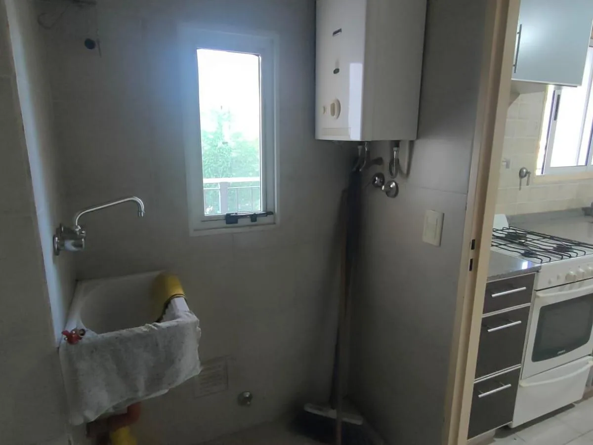 Квартира-студия площадью не указана, 4-й этаж, окна во двор, с открытым видом. В комнате встроенный шкаф, кухня с полуинтеграцией отделена барной стойкой; есть отдельное помещение под прачечную. Выход из комнаты на протяжённый балкон 7 mt. Отопление: печь с выводом в вентканал (tiro balanceado). Коммунальные платежи здания не указаны; в доме есть SUM.