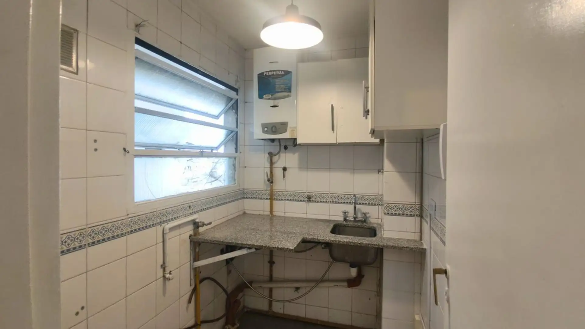 Квартира-студия в аренду в Barracas. Внутри одно помещение с кухней и отдельной ванной комнатой. Указаны хорошая вентиляция и доступность транспорта и магазинов.