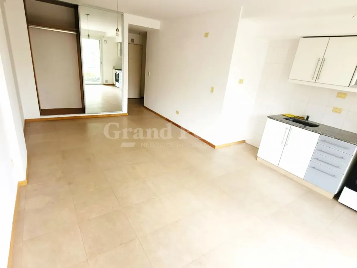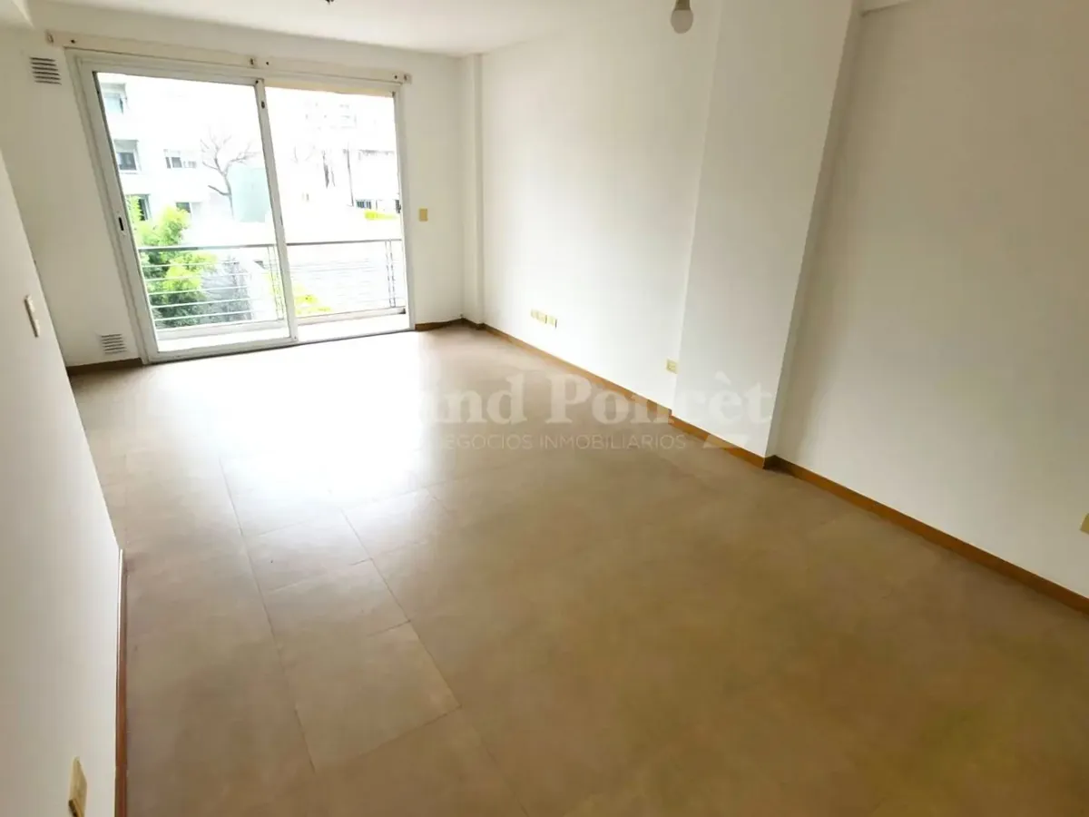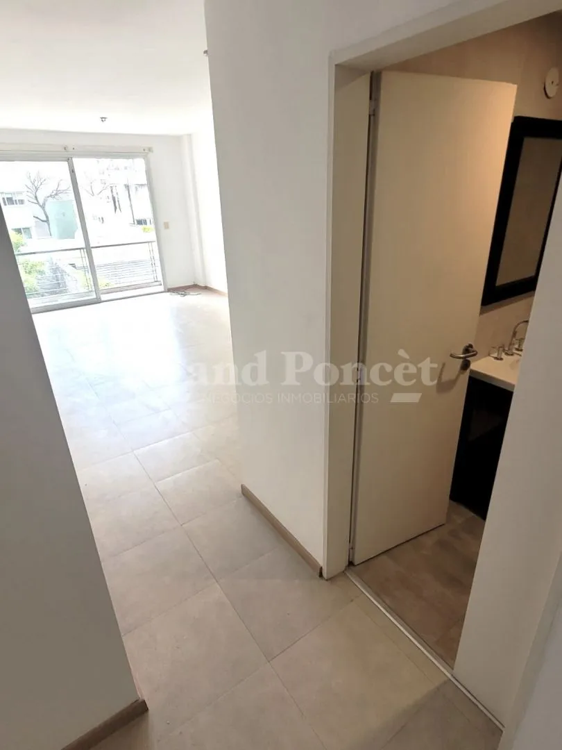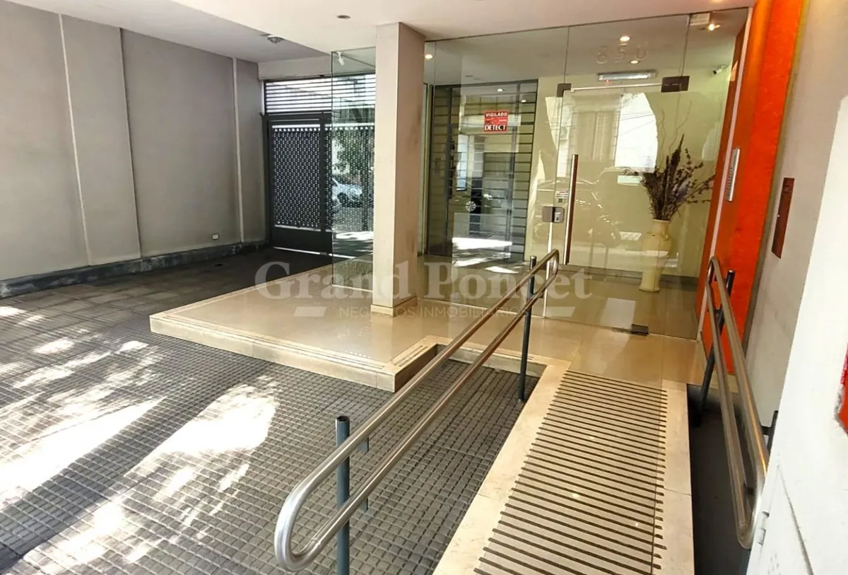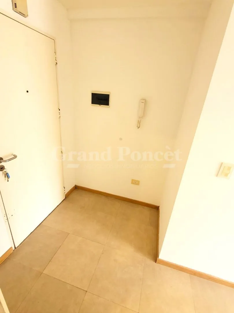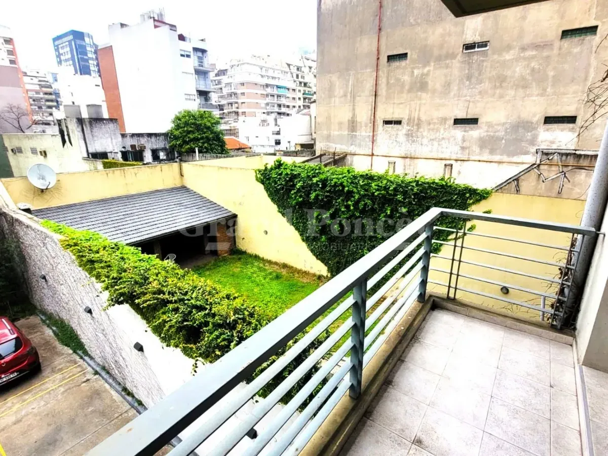 Квартира-студия площадью 37 m² в Barracas, окна во двор (contrafrente). В планировке есть прихожая, основная комната с встроенным шкафом и кухонной нишей, отдельная ванная. Балкон выходит во двор, установлен кондиционер холод/тепло. В здании есть зона гриля и общая терраса. Коммунальные платежи здания включают AYSA; аренда без допуска домашних животных.