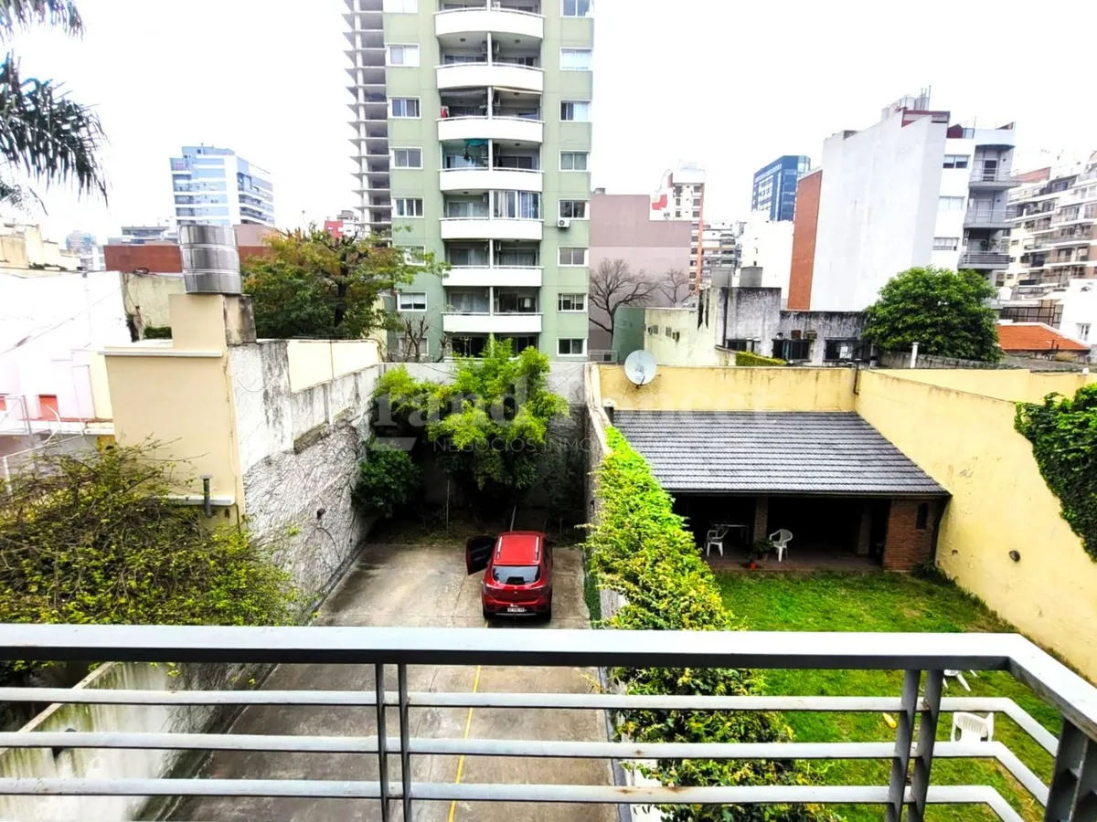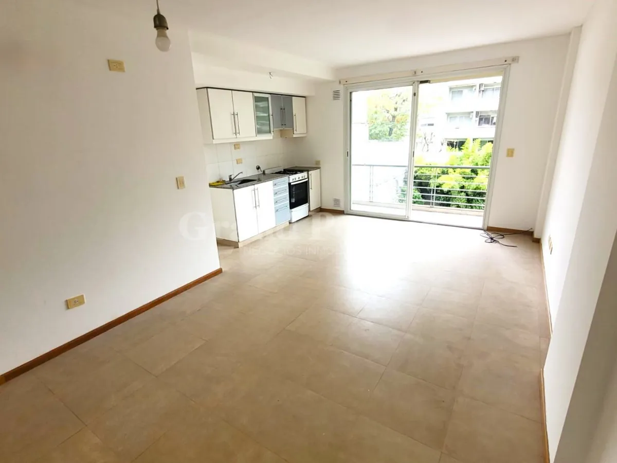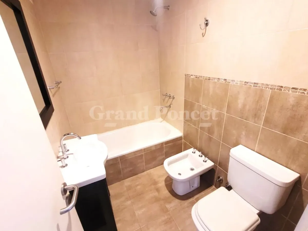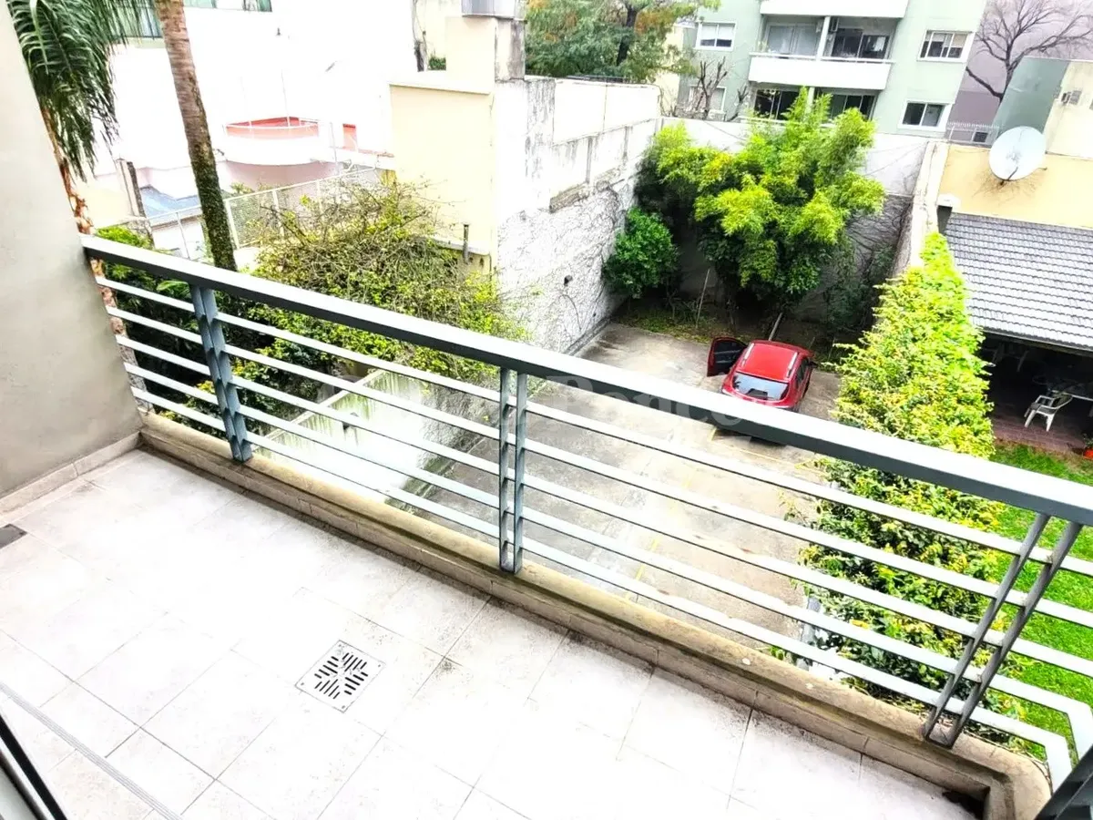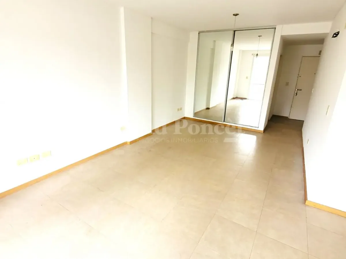 Квартира-студия площадью 37 m² в Barracas, окна во двор (contrafrente). В планировке есть прихожая, основная комната с встроенным шкафом и кухонной нишей, отдельная ванная. Балкон выходит во двор, установлен кондиционер холод/тепло. В здании есть зона гриля и общая терраса. Коммунальные платежи здания включают AYSA; аренда без допуска домашних животных.