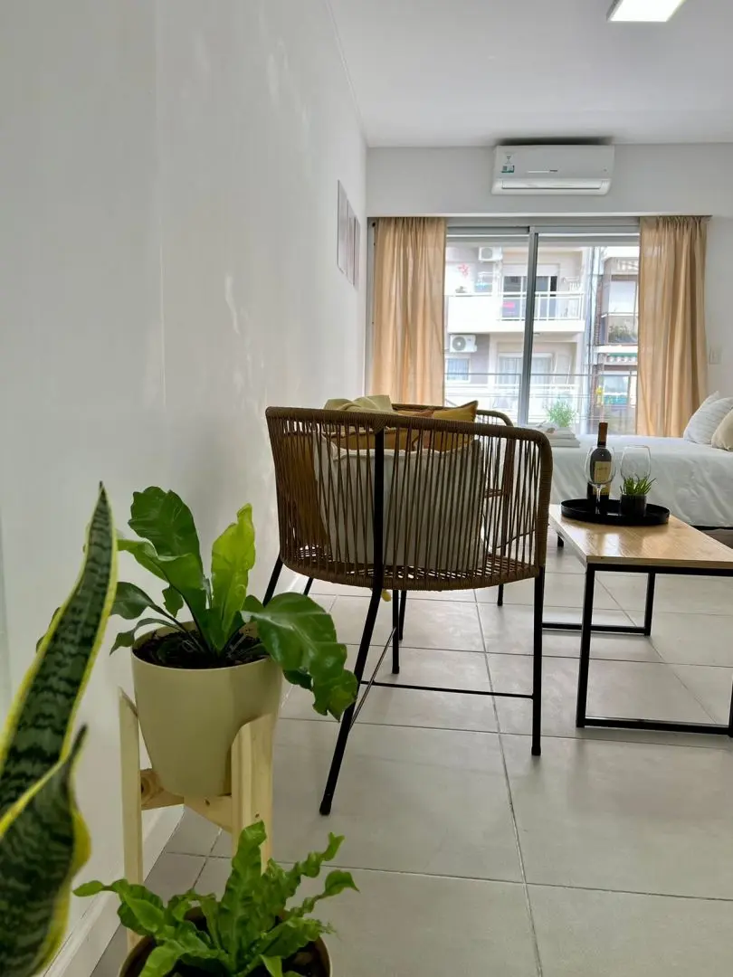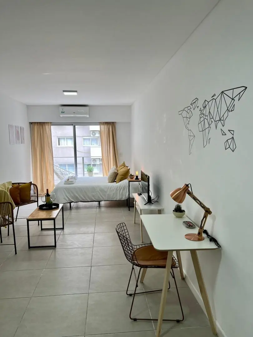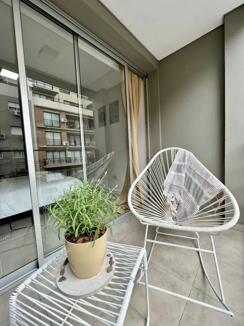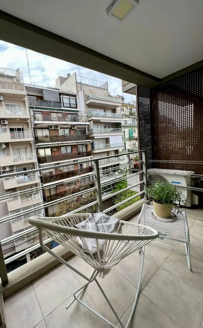Квартира-студия площадью не указана в Belgrano, с балконом и окнами на улицу, с мебелью. Внутри отдельная полностью оборудованная кухня, душевая/ванная с ванной, двуспальная кровать Queen, SMART TV, рабочий стол и обеденный стол, кондиционер (холод/тепло). В здании есть терраса с зоной гриля и laundry. Арендная ставка не включает коммунальные платежи здания, воду, электроэнергию и интернет; эти расходы оплачивает арендатор. Доступно с 4 мая 2026 года.