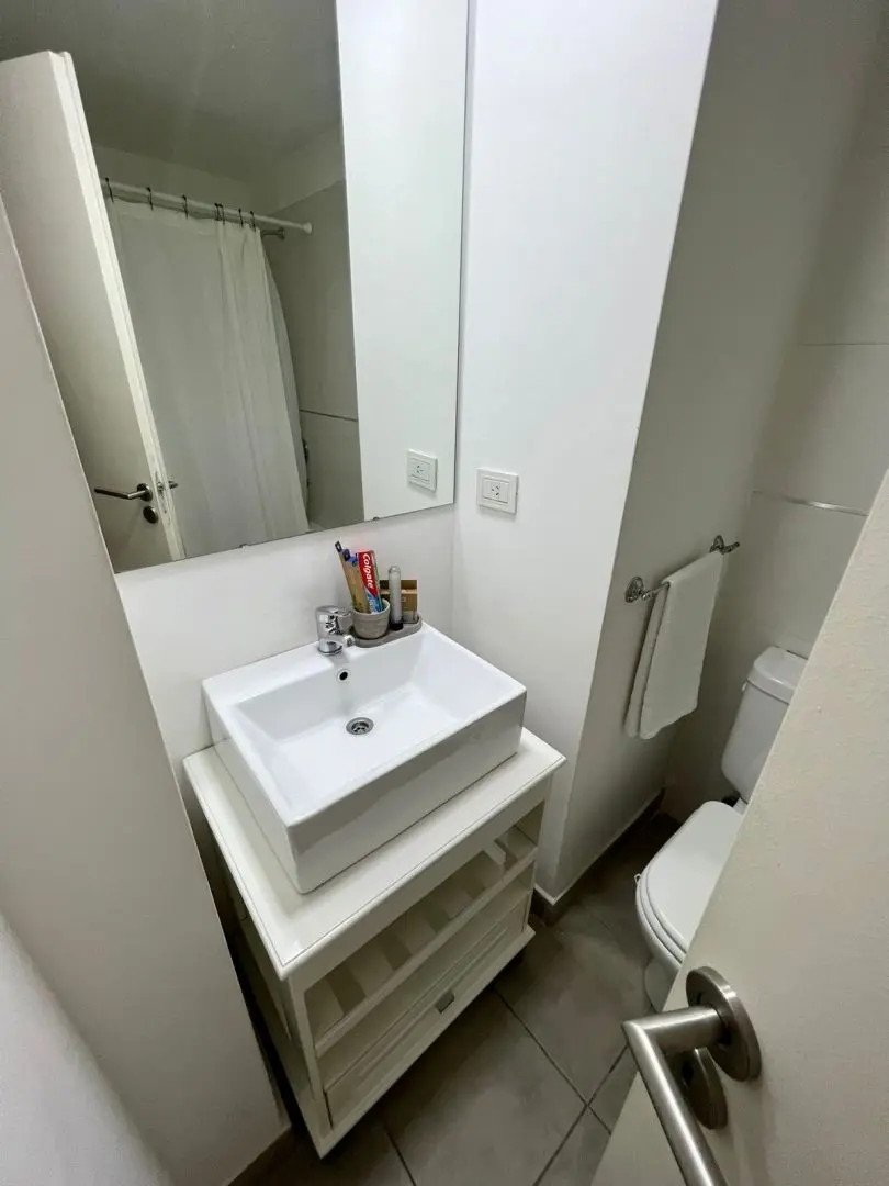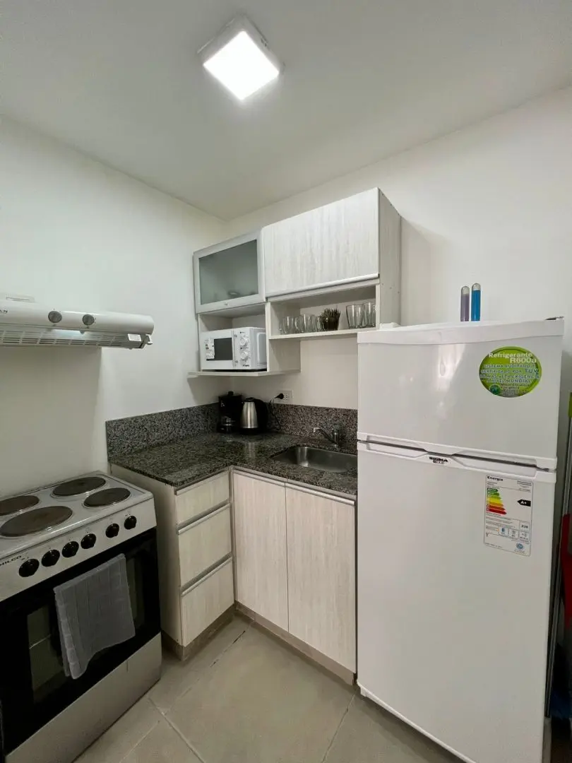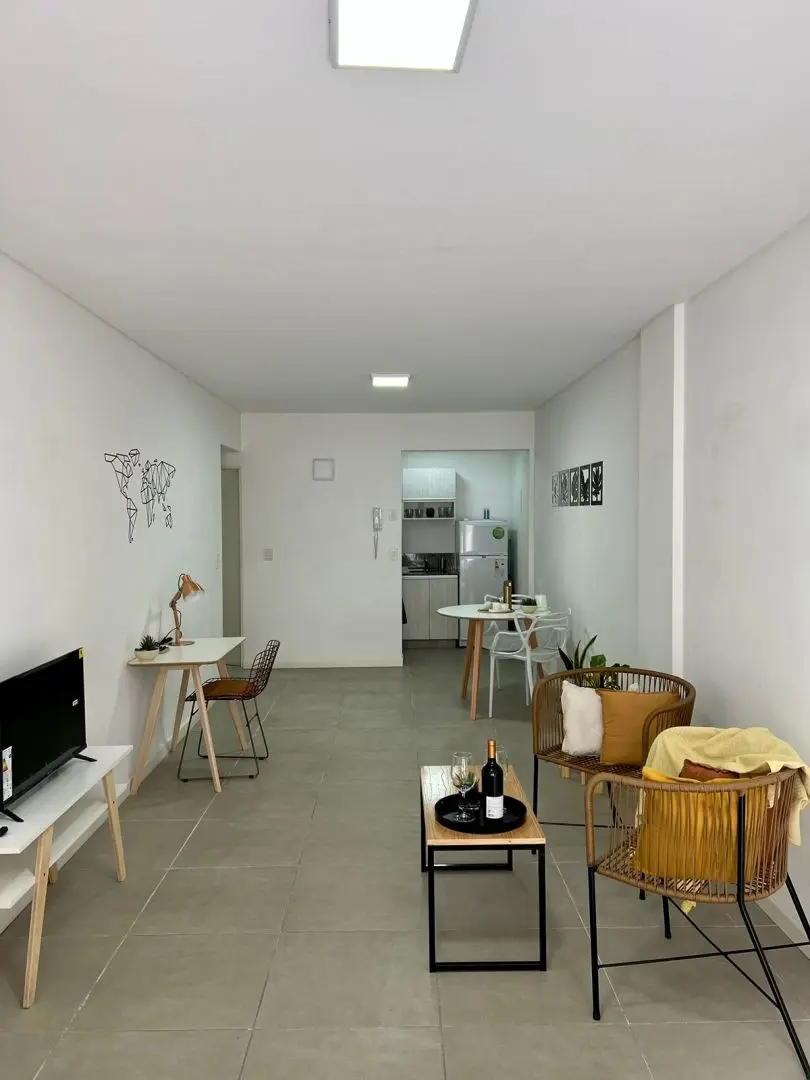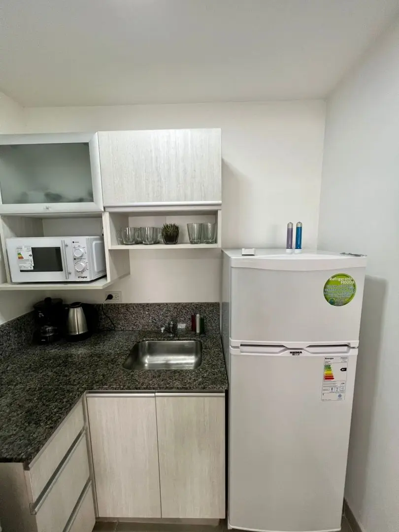Квартира-студия площадью не указана в Belgrano, с балконом и окнами на улицу, с мебелью. Внутри отдельная полностью оборудованная кухня, душевая/ванная с ванной, двуспальная кровать Queen, SMART TV, рабочий стол и обеденный стол, кондиционер (холод/тепло). В здании есть терраса с зоной гриля и laundry. Арендная ставка не включает коммунальные платежи здания, воду, электроэнергию и интернет; эти расходы оплачивает арендатор. Доступно с 4 мая 2026 года.