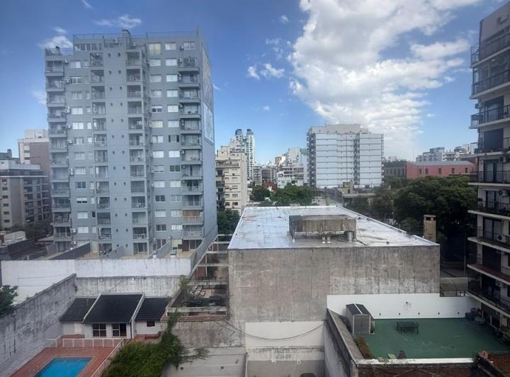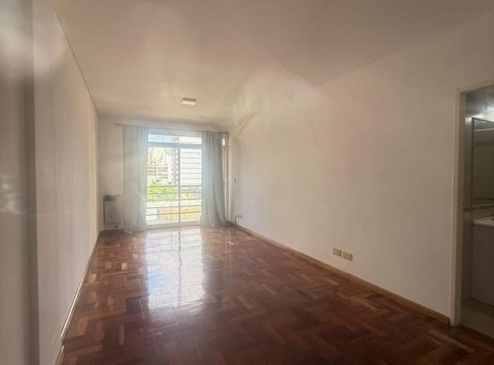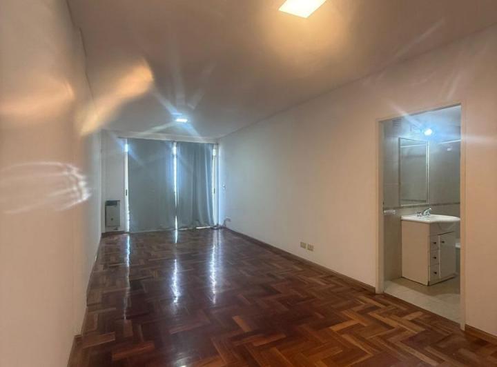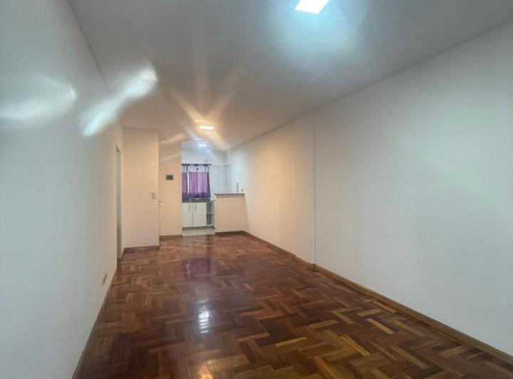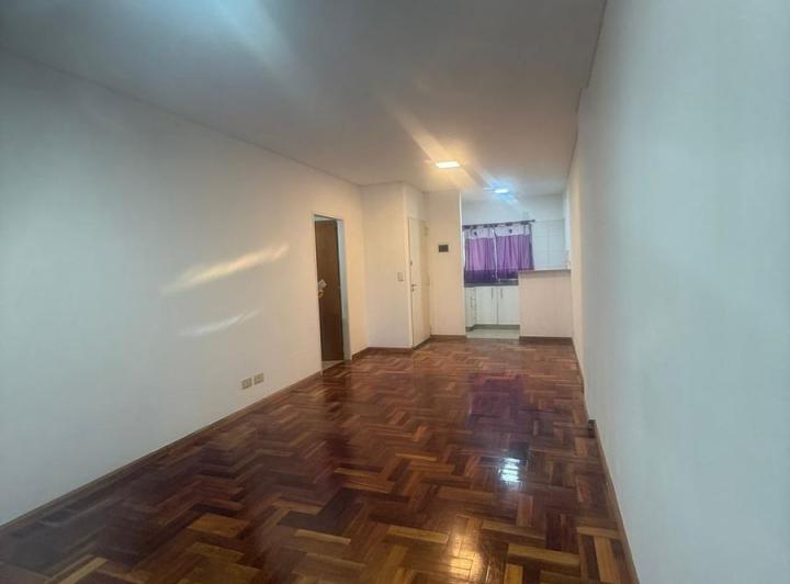 Квартира-студия площадью 1 помещение, на 7.90x3.01 m², окна во двор (contra frente). Западная ориентация; кухня с desayunador и отдельная ванная комната. В интерьере паркет и открытый вид. Есть балкон 2.46x1.28 m². В здании предусмотрены бассейн и laundry. Арендная плата указана без учёта коммунальных платежей здания, expensas рассчитаны администратором за январь 2026 и должны уточняться перед оформлением договора; договор на 24 месяца.