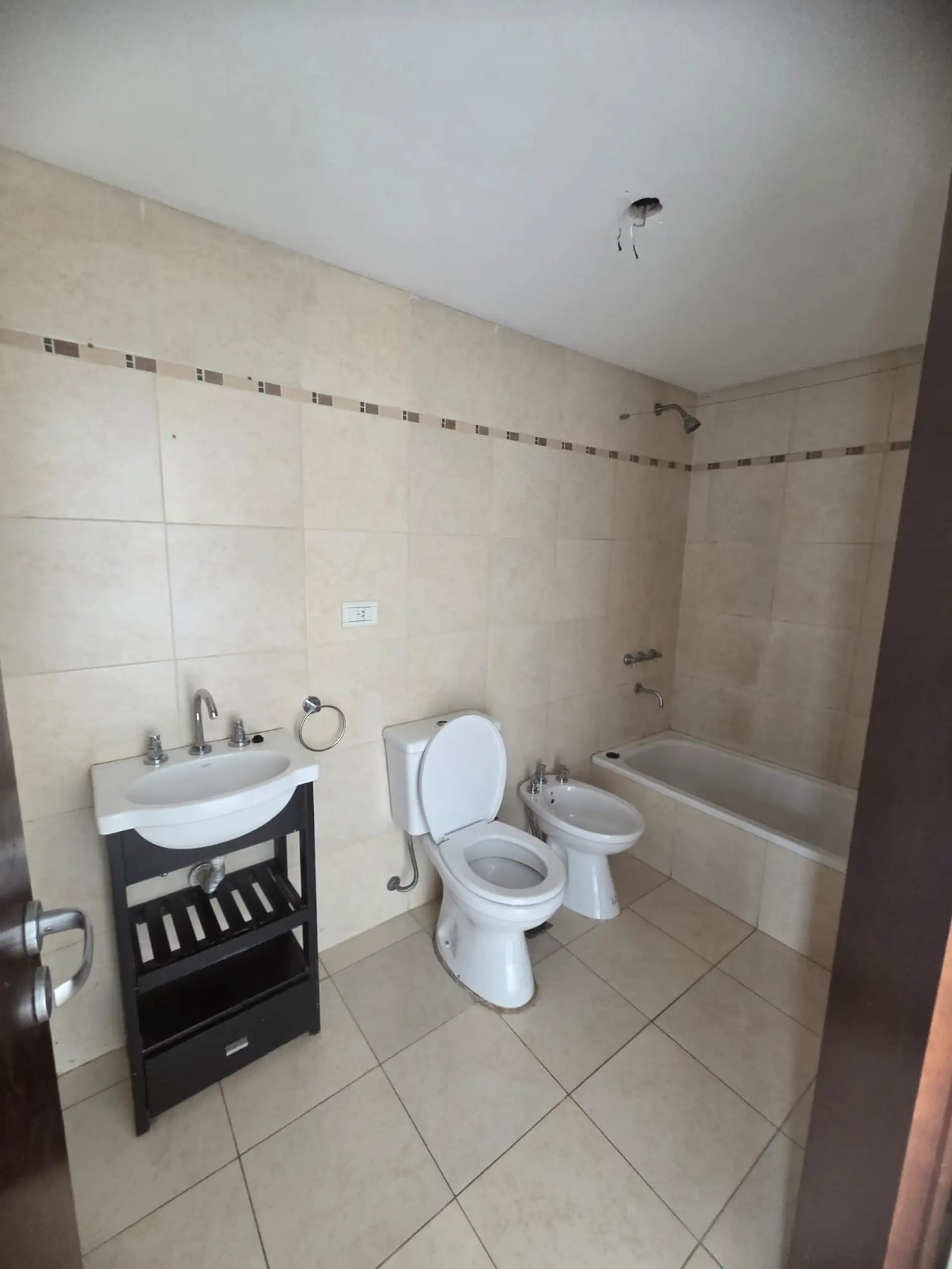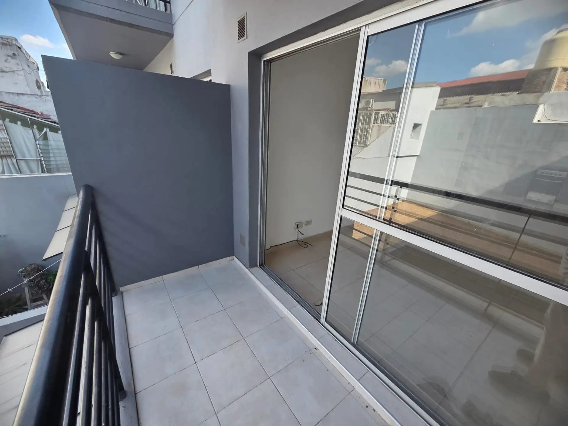 Квартира-студия площадью не указана, с балконом с окнами во двор и открытым видом. Отдельная зона кухни оснащена газовой плитой, электрическим водонагревателем и предусмотренным подключением для стиральной машины. Срок аренды — 2 года, с индексацией каждые 3 месяца по IPC.