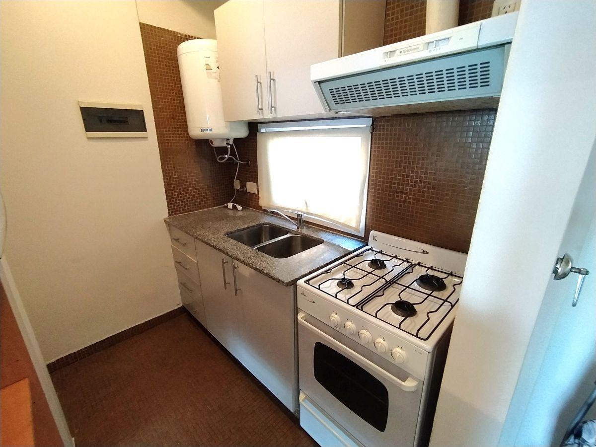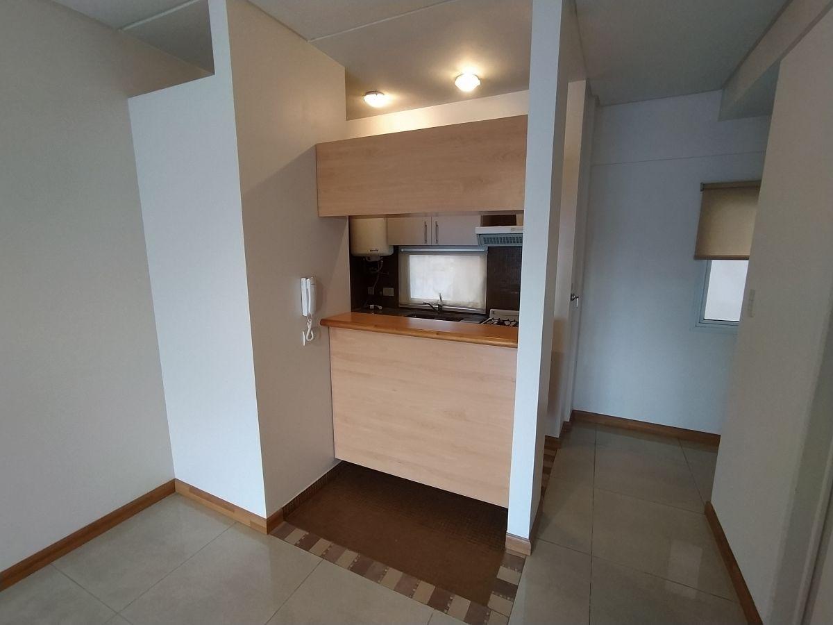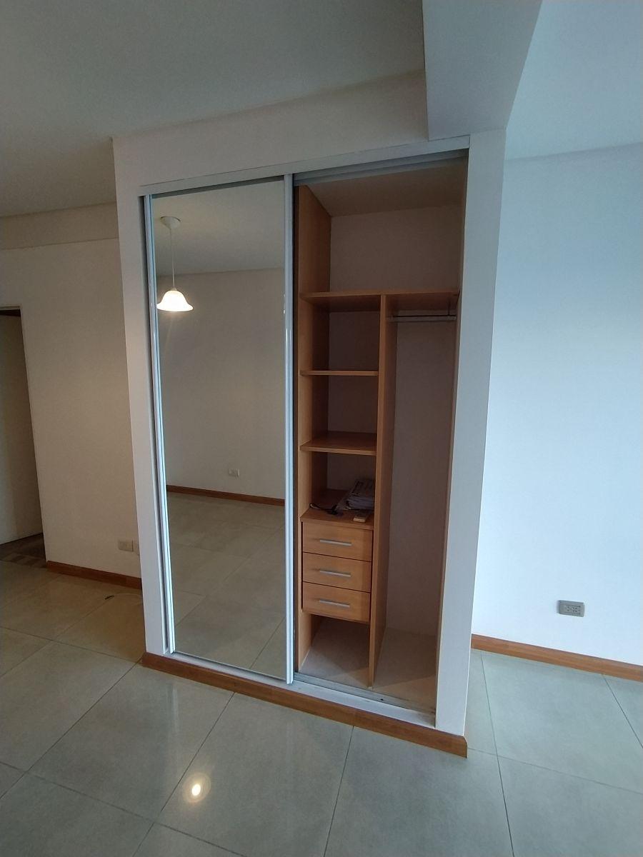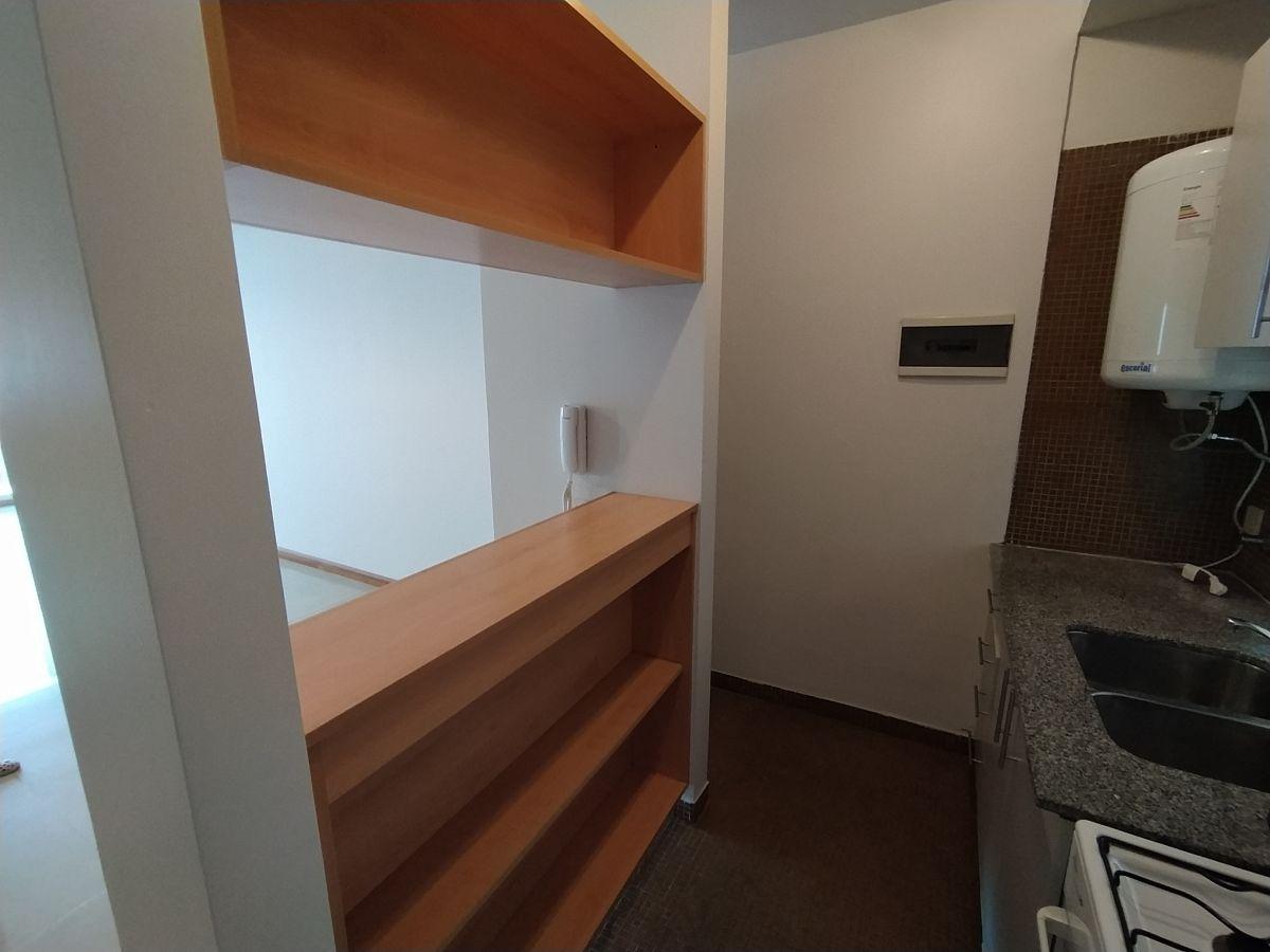 Квартира-студия в аренду, 4-й этаж, окна во двор. Кухня интегрирована, предусмотрены место для хранения и газовая плита. Установлены водонагреватель (termotanque) и полноразмерная ванная, есть встроенный шкаф. На балконе предусмотрено подключение для стиральной машины, упоминаются естественное освещение и вентиляция. Коммунальные платежи здания указаны как подлежащие изменению и уточняются по документам. Требования к аренде: договор на 2 года, ежеквартальная индексация по IPC. Залог-страховка ар