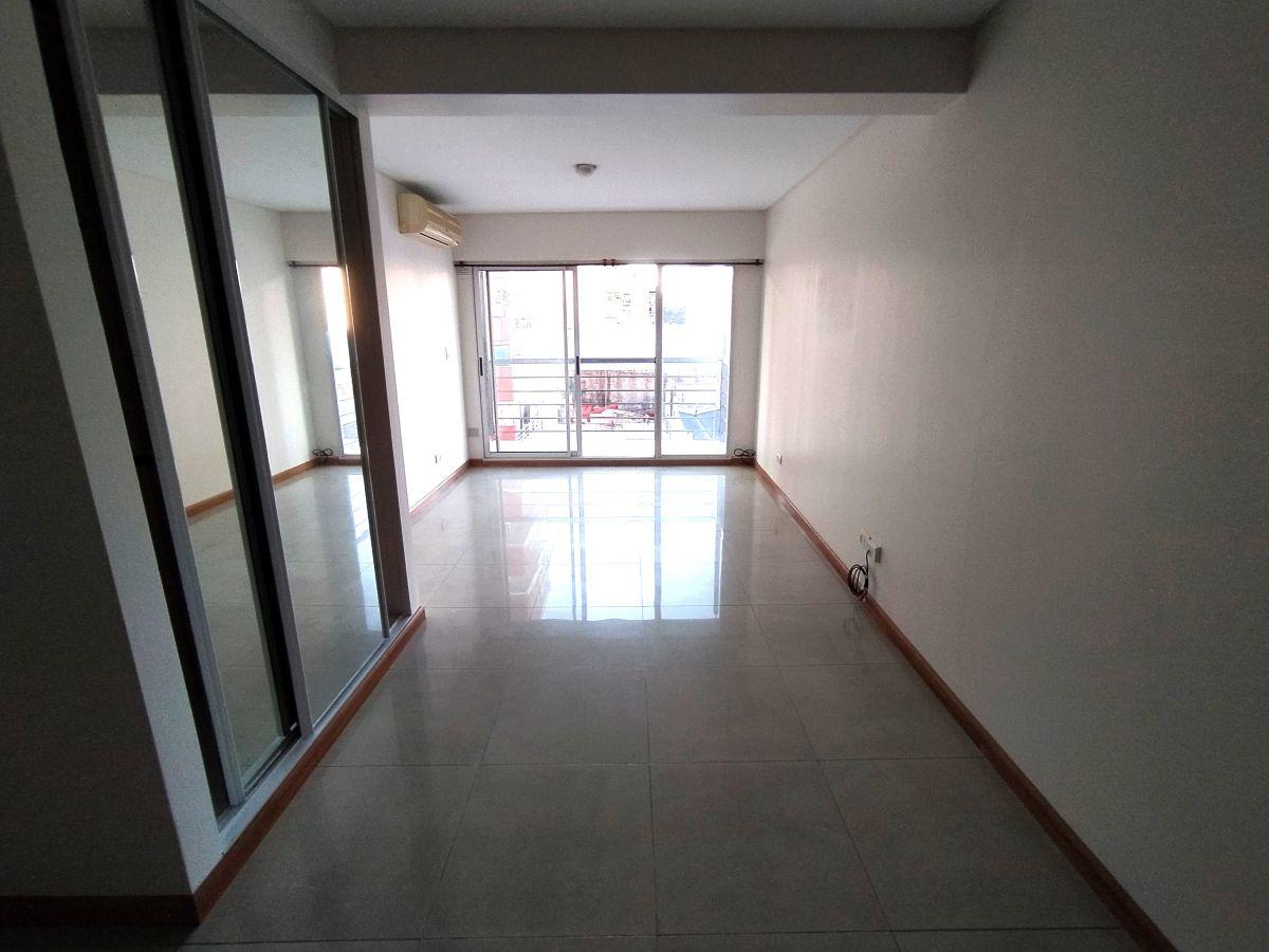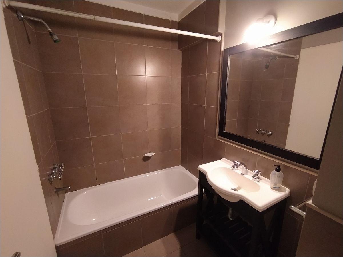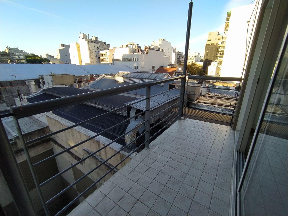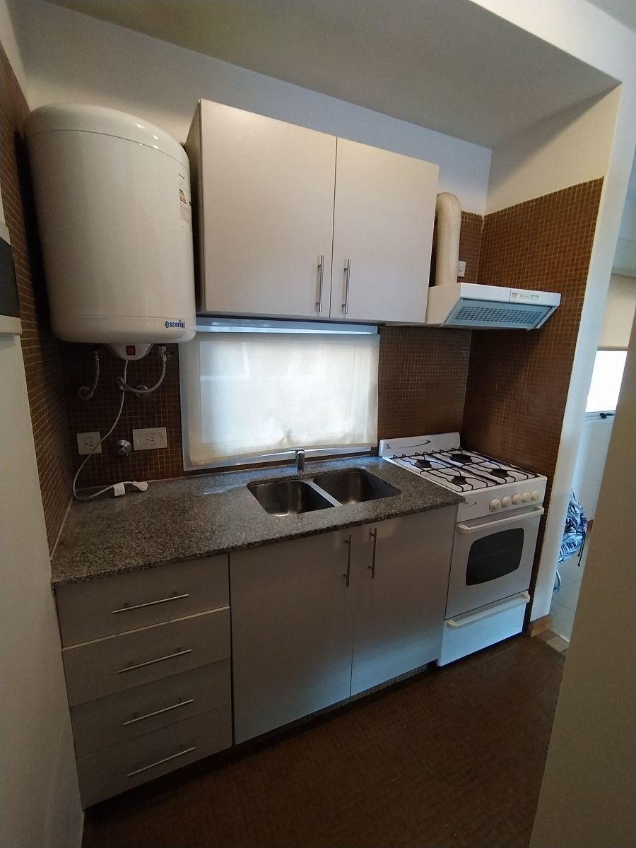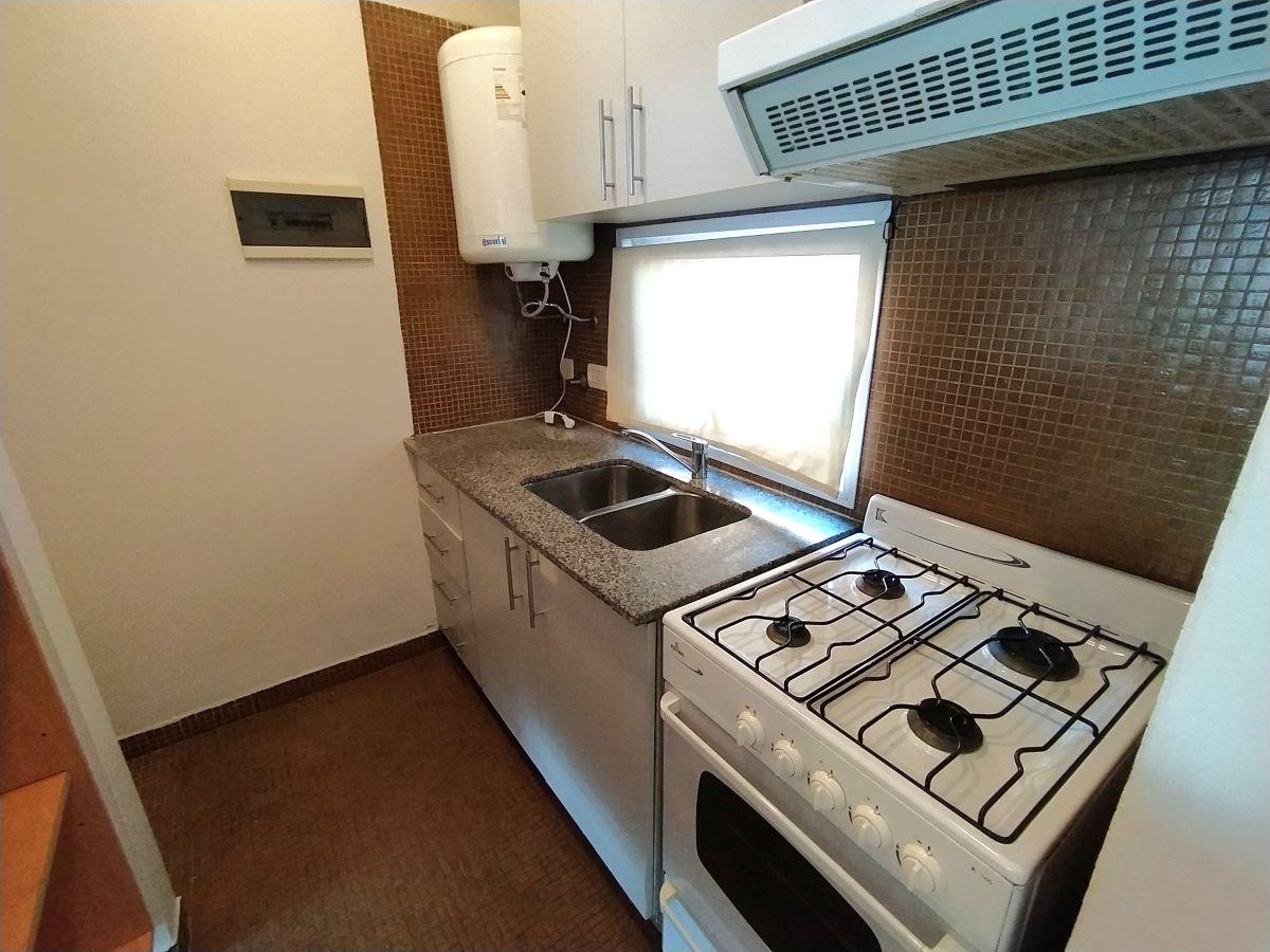 Квартира-студия в аренду, 4-й этаж, окна во двор. Кухня интегрирована, предусмотрены место для хранения и газовая плита. Установлены водонагреватель (termotanque) и полноразмерная ванная, есть встроенный шкаф. На балконе предусмотрено подключение для стиральной машины, упоминаются естественное освещение и вентиляция. Коммунальные платежи здания указаны как подлежащие изменению и уточняются по документам. Требования к аренде: договор на 2 года, ежеквартальная индексация по IPC. Залог-страховка ар