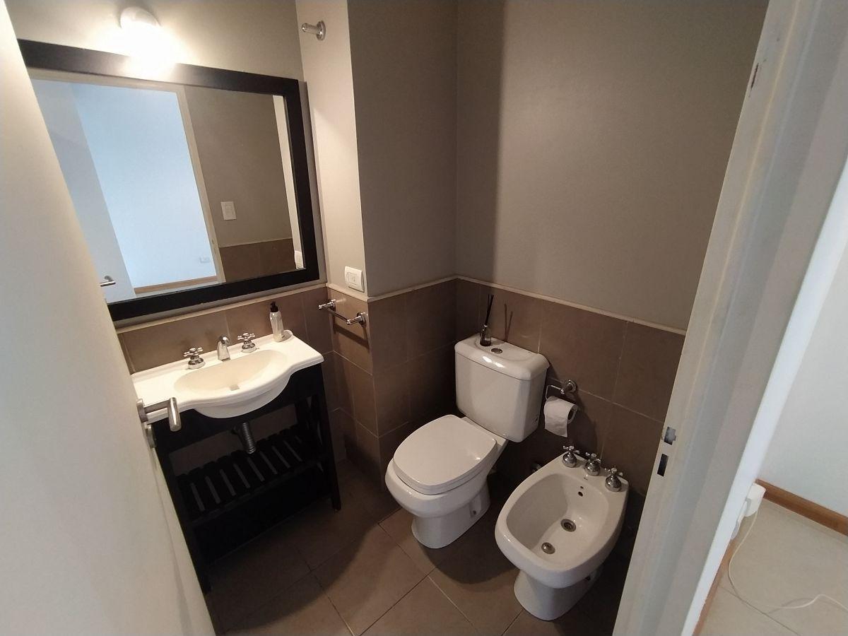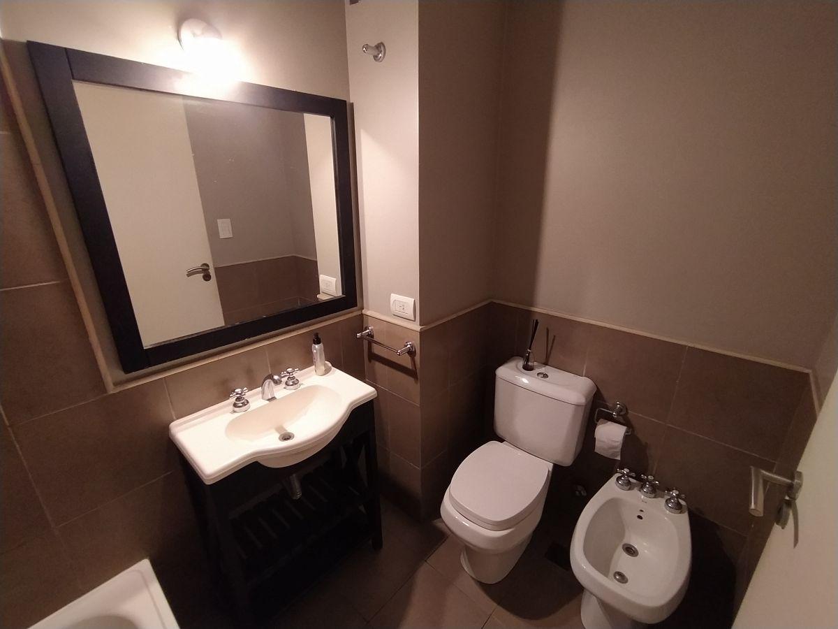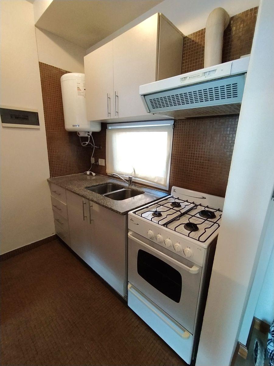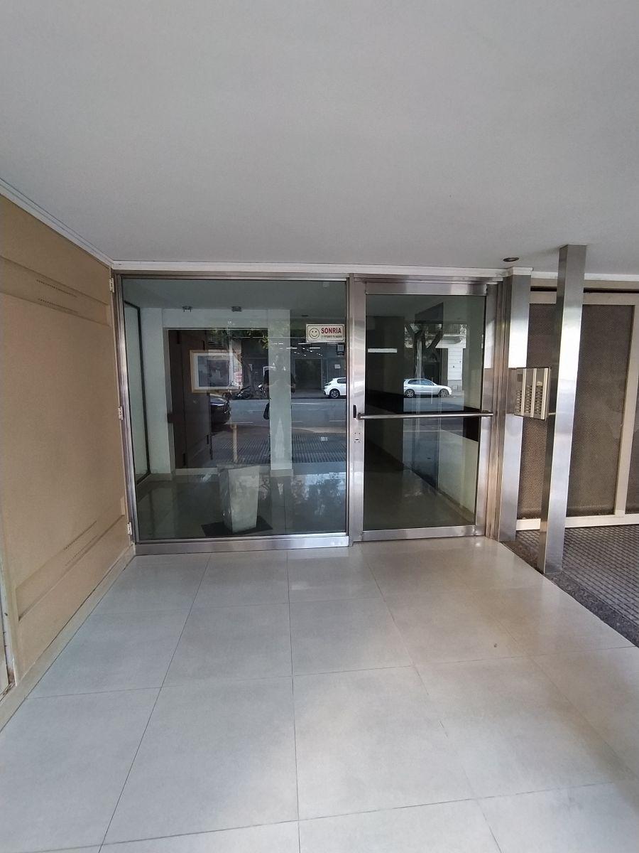 Квартира-студия в аренду, 4-й этаж, окна во двор. Кухня интегрирована, предусмотрены место для хранения и газовая плита. Установлены водонагреватель (termotanque) и полноразмерная ванная, есть встроенный шкаф. На балконе предусмотрено подключение для стиральной машины, упоминаются естественное освещение и вентиляция. Коммунальные платежи здания указаны как подлежащие изменению и уточняются по документам. Требования к аренде: договор на 2 года, ежеквартальная индексация по IPC. Залог-страховка ар