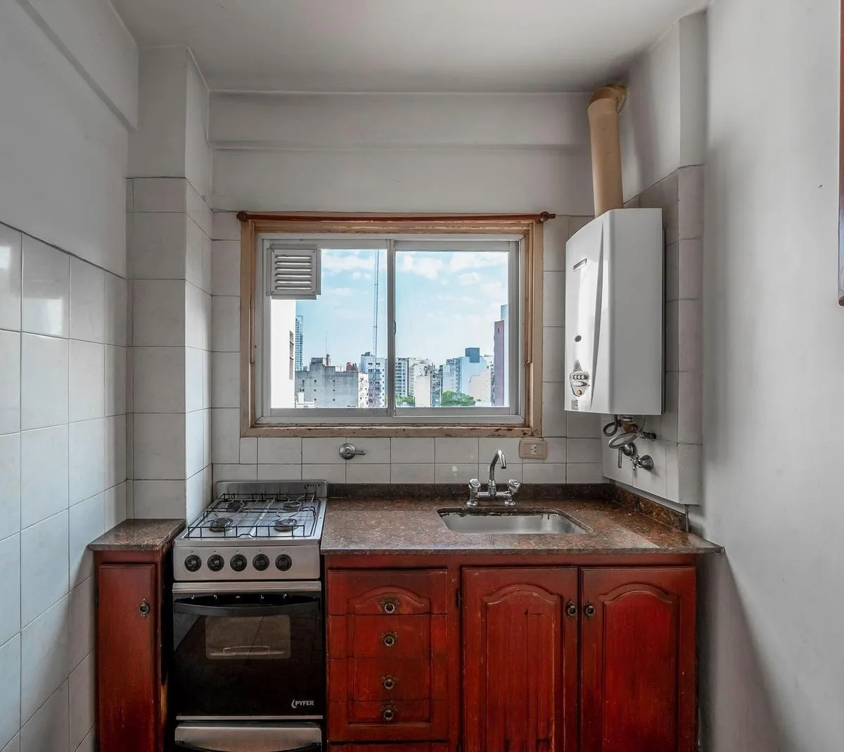 Квартира-студия на contrafrente в Caballito. Площадь не указана. В квартире есть отдельная кухня, установлен телевизор с LED-экраном и кондиционер. В стоимость аренды включены коммунальные платежи здания, вода, ABL и интернет. Окна во двор. Расположена на Calle Colpayo, в 2 кварталах от Av. Rivadavia и Av. Acoyte.
