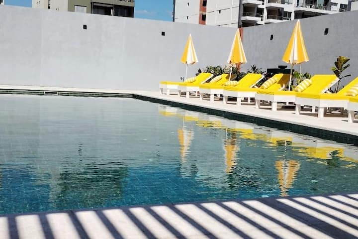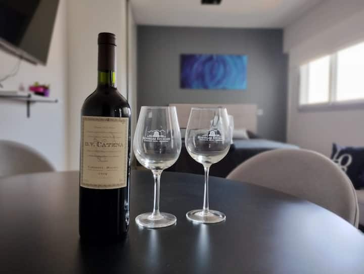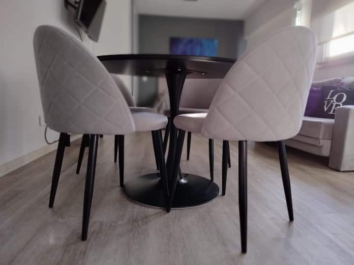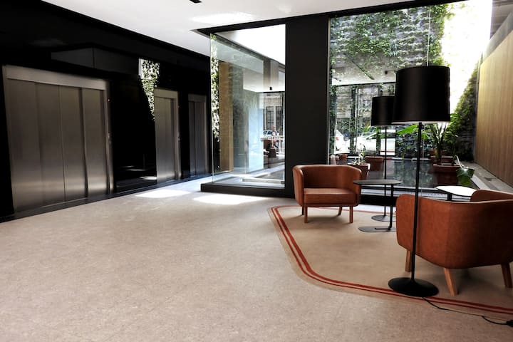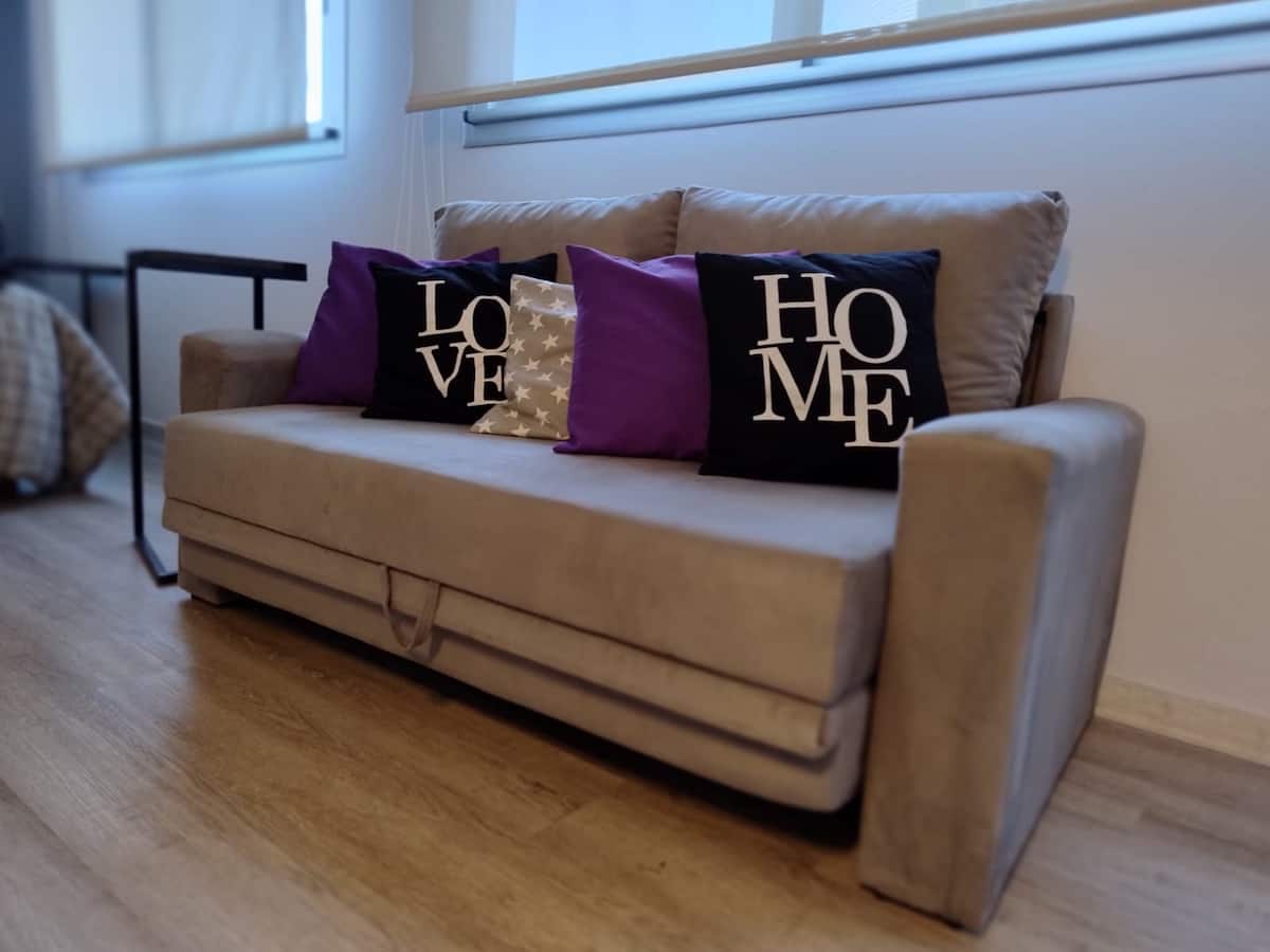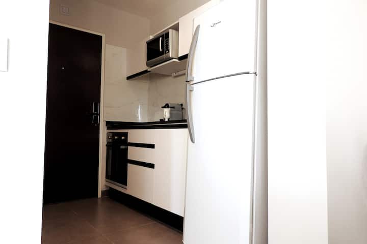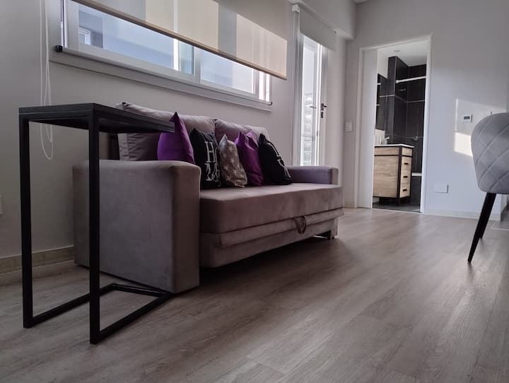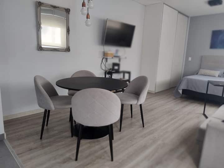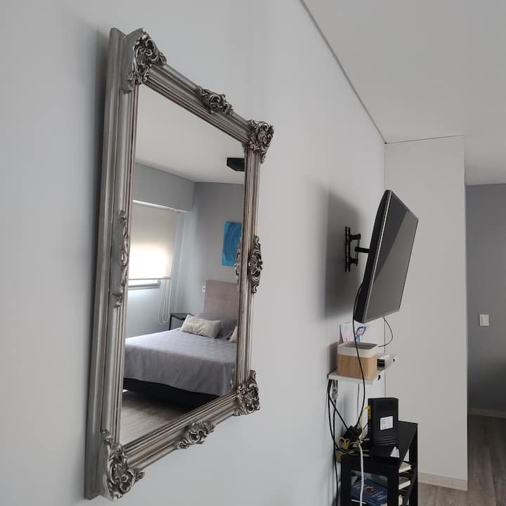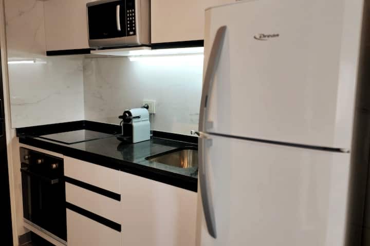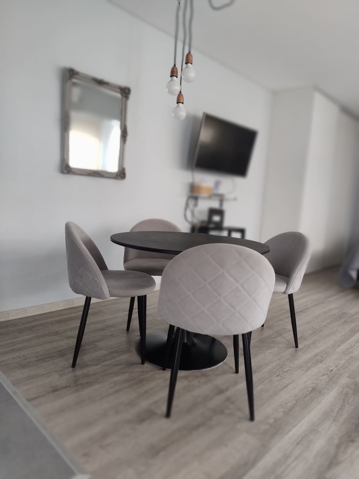 Новая квартира-студия в комплексе Alma DVZ, окна на две стороны: окна на улицу и на двор, с большим балконом. В интерьере предусмотрены кровать queen-size и двухместный диван-кровать; на окнах установлены затемняющие шторы и солнцезащита. Кухня оснащена духовкой, электрическими конфорками, холодильником с морозильной камерой, микроволновой печью, тостером, электрическим чайником и Nespresso. Отопление индивидуальное (радиантный пол), установлены инверторный кондиционер, высокоскоростной Wi‑Fi, 4