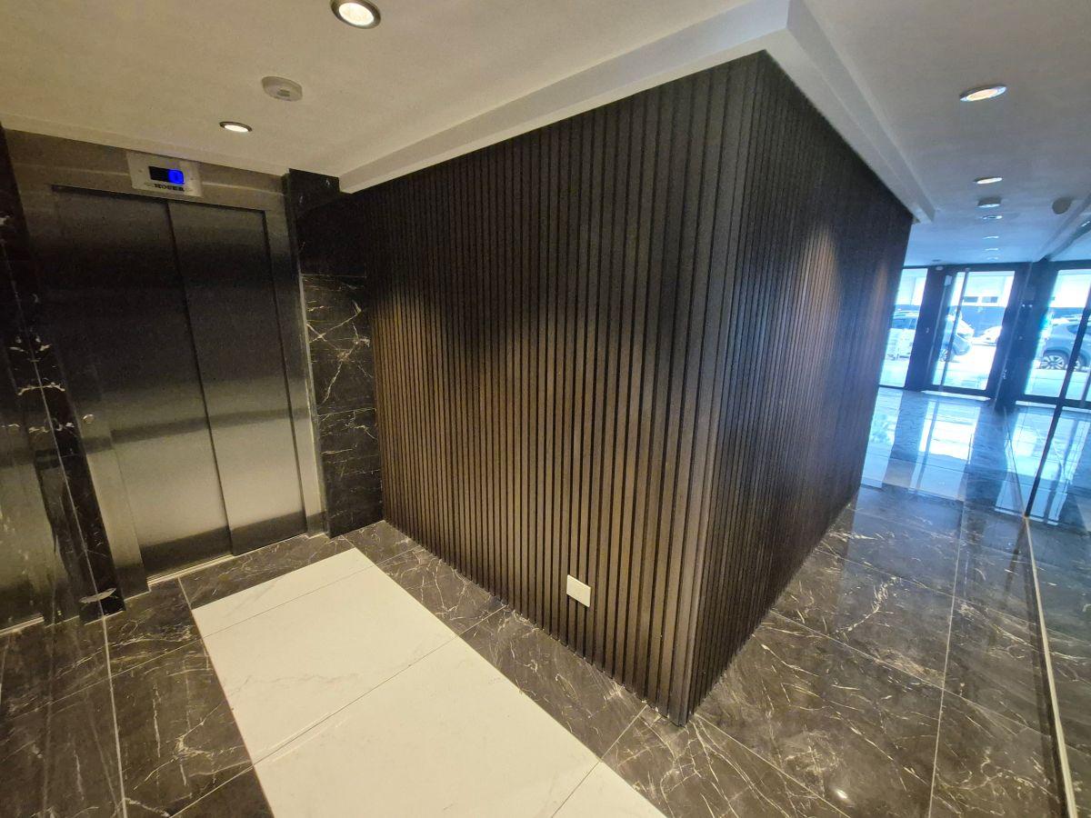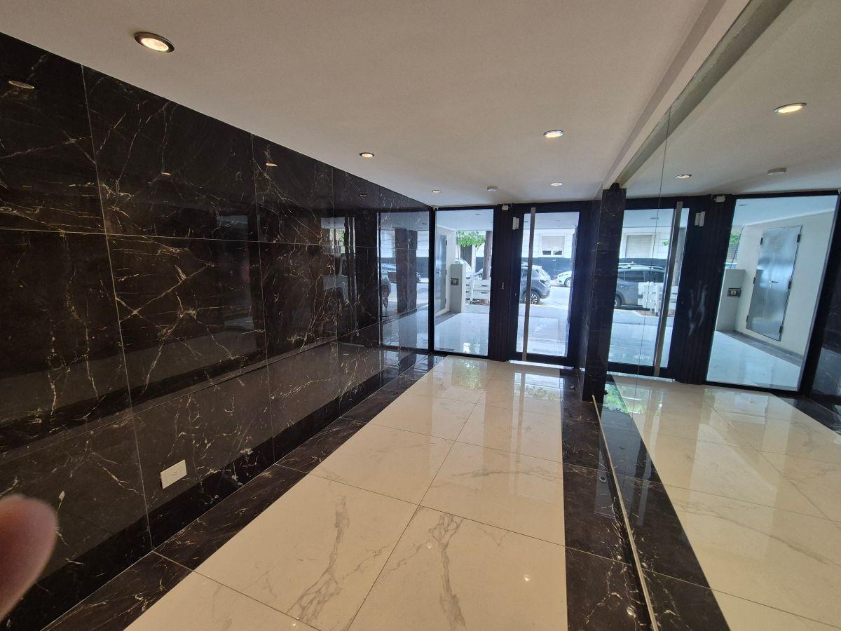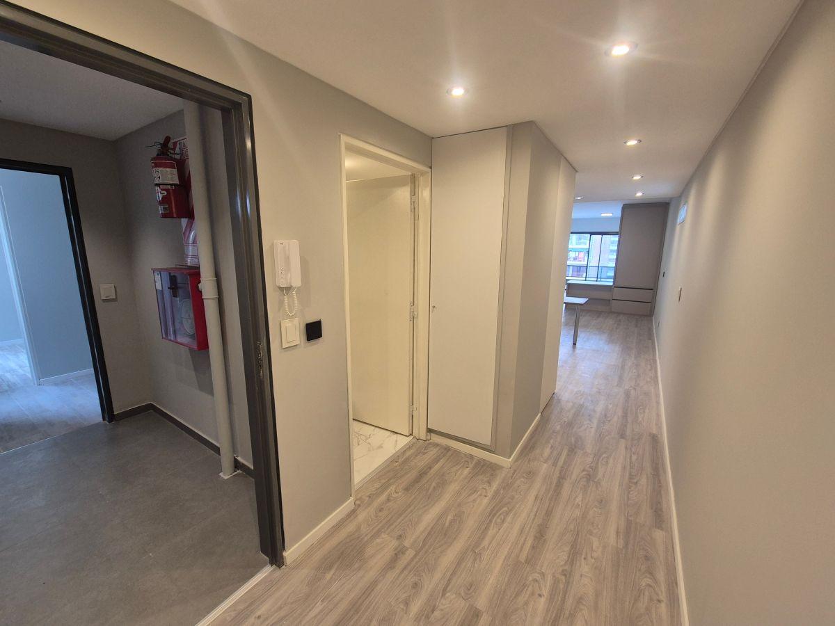 Квартира-студия площадью 47 m², новая (никто не жил), окна во двор (contrafrente) и балкон. В помещении установлен разделяющий элемент, оформленный как планировка «2 ambientes». Кондиционер, электрический тёплый пол, стеклопакеты. В здании 2 лифта, вход через полузакрытый вестибюль (paleier semi-privado). Есть общая гостиная для жильцов (SUM) с кондиционером и телевизором, выход на террасу с бассейном и зоной гриля, а также место для хранения велосипедов. Рядом с Av. La Plata и Av. Directorio; с