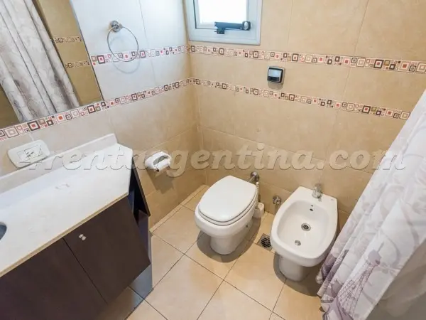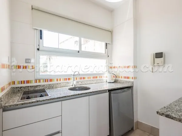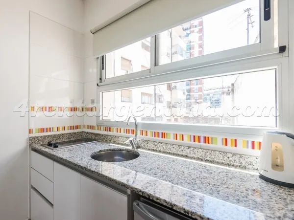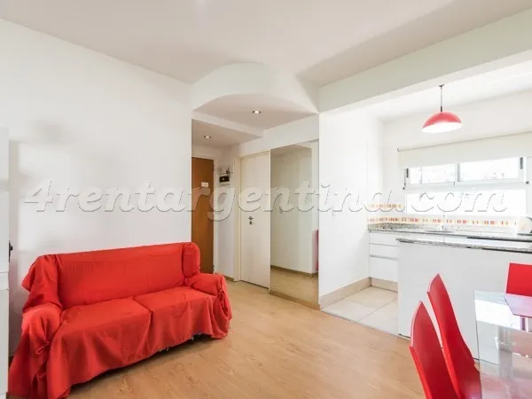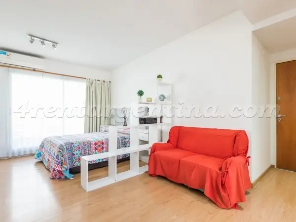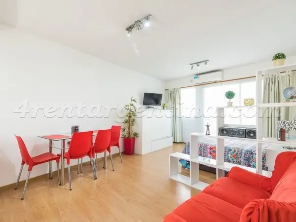 Квартира-студия площадью, рассчитанной на 2 человека, в Caballito. Есть гостиная с диваном и 2 односпальные кровати, которые объединяются в двуспальное спальное место, отдельная кухня с барной стойкой, ванная с ванной и балкон с окнами на улицу. В квартире предусмотрены кондиционер (холод/тепло), LED-телевизор и кабельное ТВ, Wi‑Fi, микроволновая печь, электрическая духовка и конфорка, холодильник, тостер, кофеварка, фен, утюг, DVD, сейф. В здании есть солярий, зона гриля и лифт. В стоимость вкл