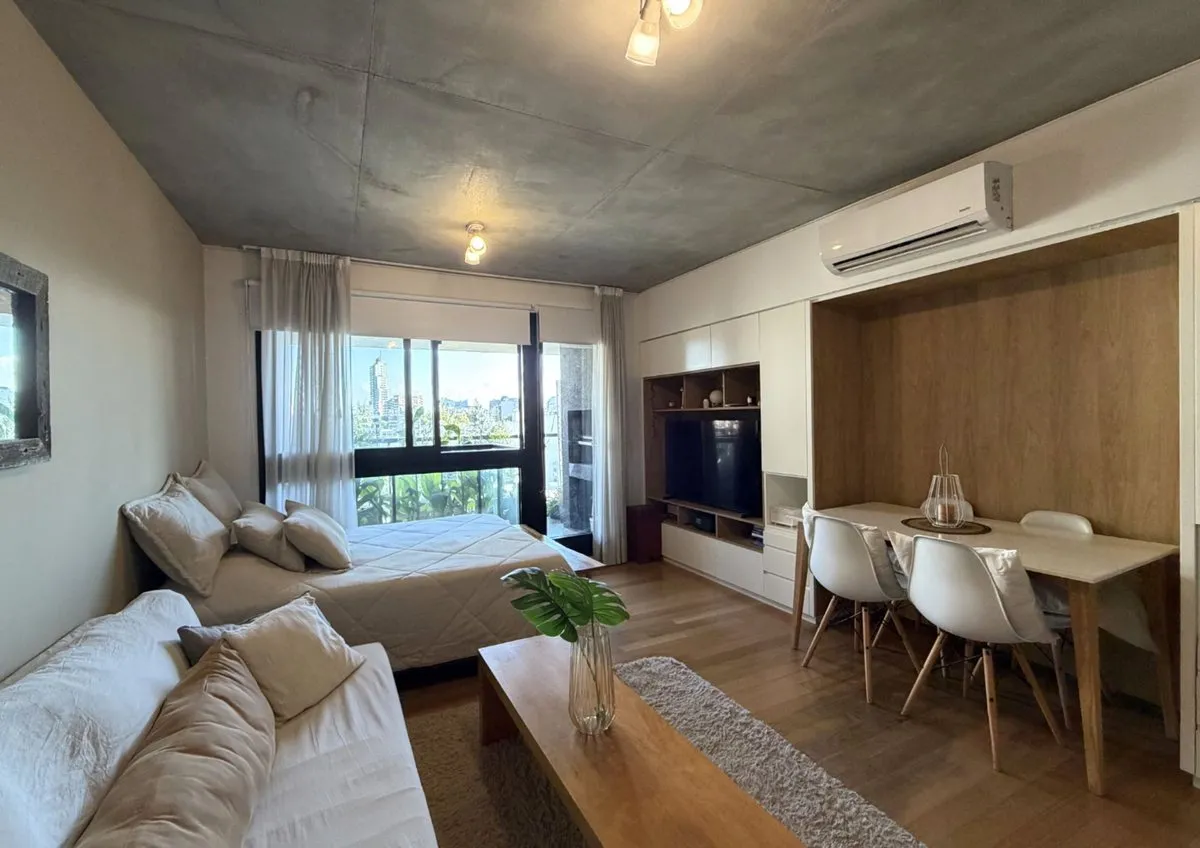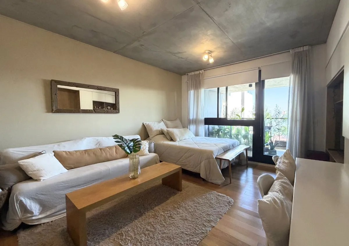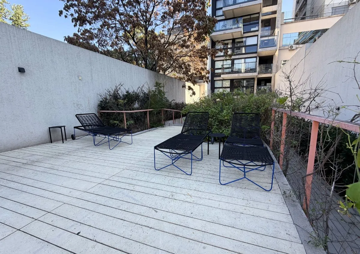 Квартира-студия площадью 1 комната в Chacarita, окна на улицу. Есть балкон и собственная зона гриля. Встроенная кухня с электрической плитой, полным санузлом, большим шкафом и местом для хранения. Квартира с мебелью и включает холодильник, диван-кровать, кровать, столы и стулья. В здании предусмотрены бассейн, общая гостиная для жильцов (SUM), коворкинг, прачечная, тренажёрный зал и зелёные зоны, работает круглосуточная охрана. В объявлении указано, что вход в комплекс осуществляется с Carranza,