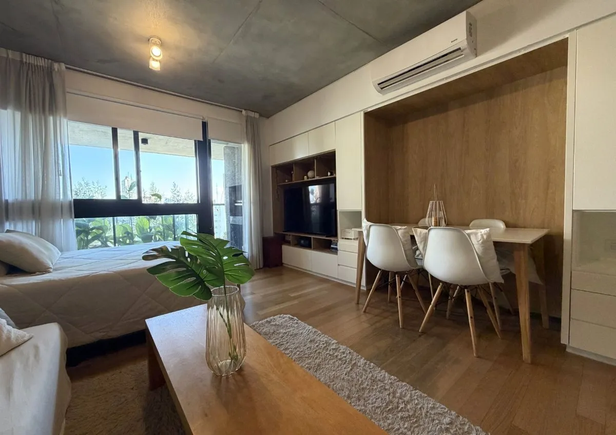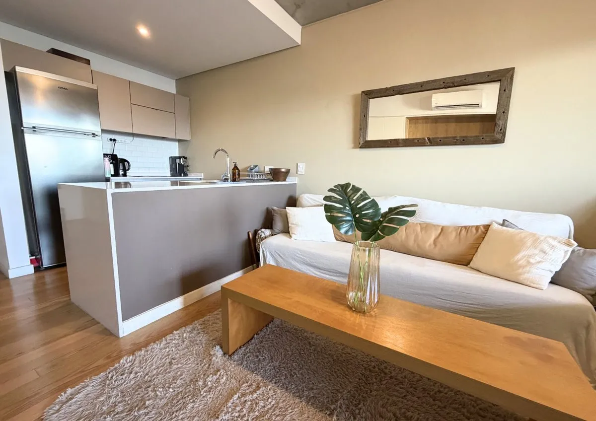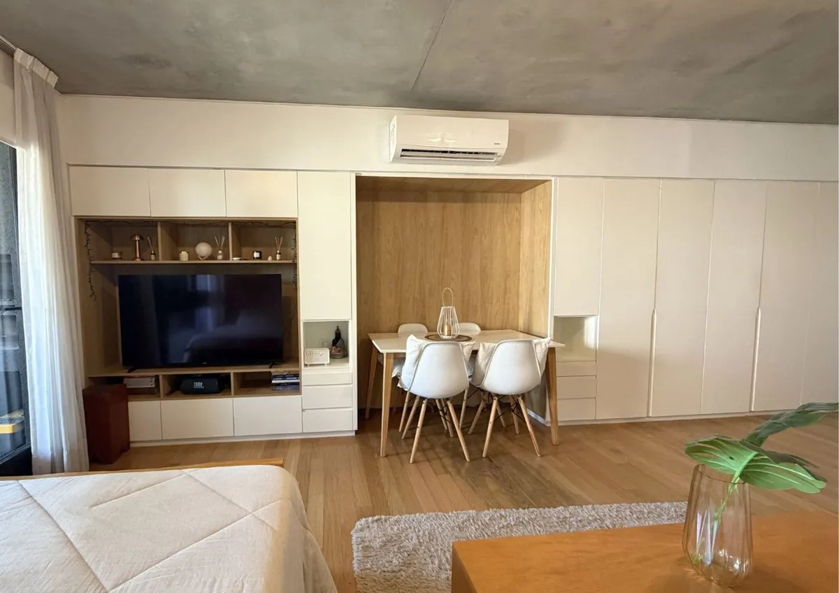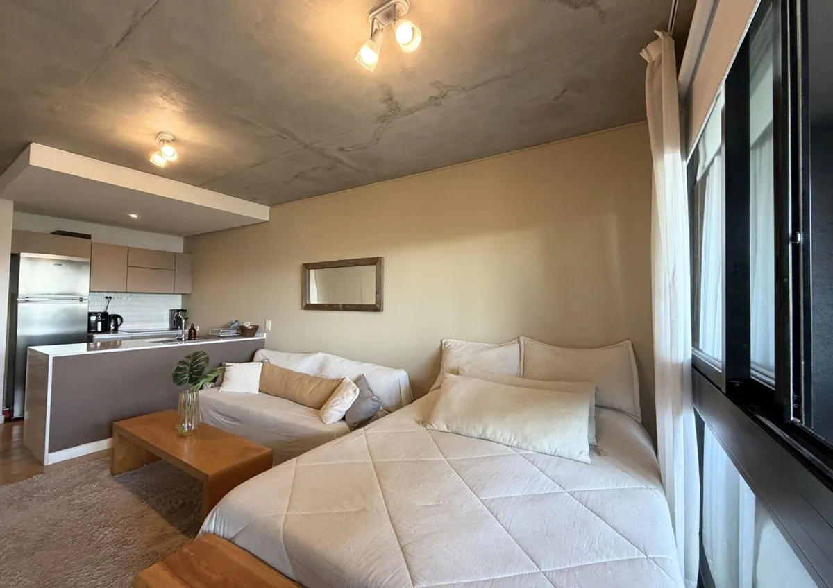Квартира-студия площадью 1 комната в Chacarita, окна на улицу. Есть балкон и собственная зона гриля. Встроенная кухня с электрической плитой, полным санузлом, большим шкафом и местом для хранения. Квартира с мебелью и включает холодильник, диван-кровать, кровать, столы и стулья. В здании предусмотрены бассейн, общая гостиная для жильцов (SUM), коворкинг, прачечная, тренажёрный зал и зелёные зоны, работает круглосуточная охрана. В объявлении указано, что вход в комплекс осуществляется с Carranza,