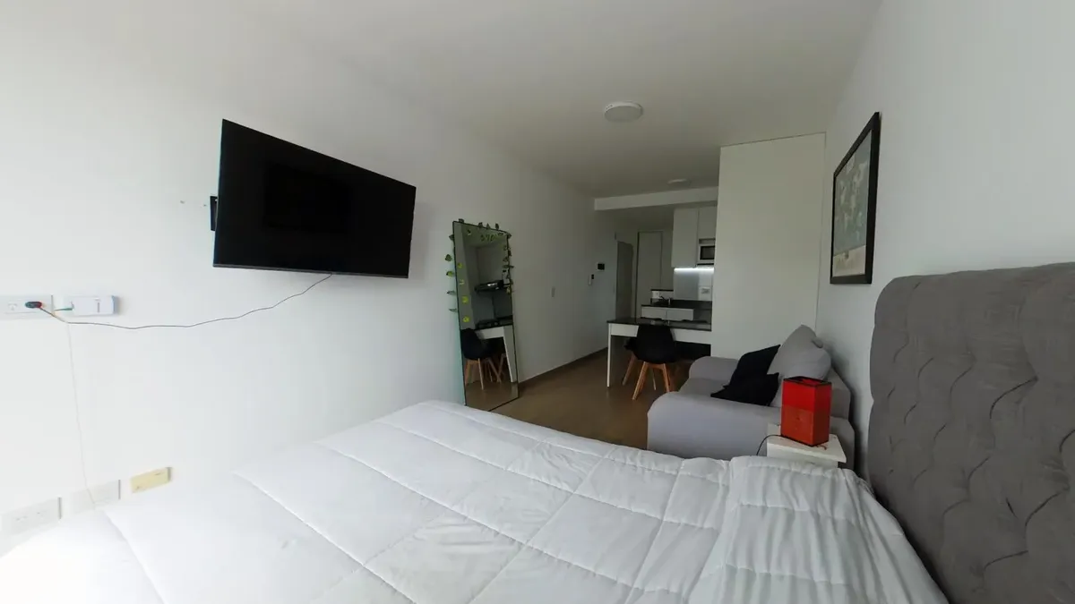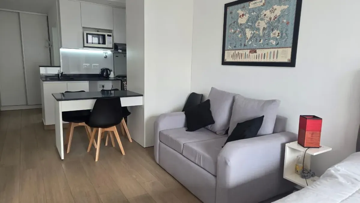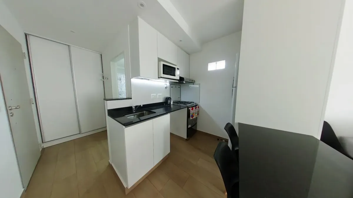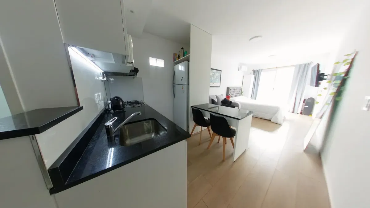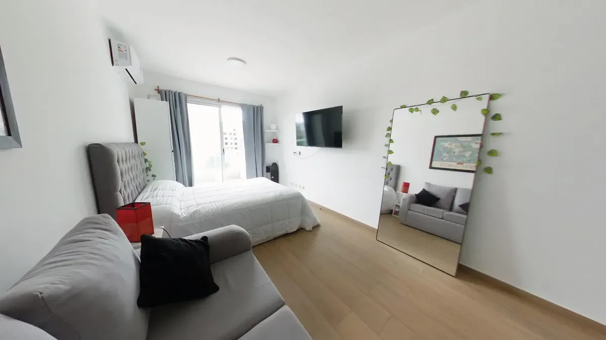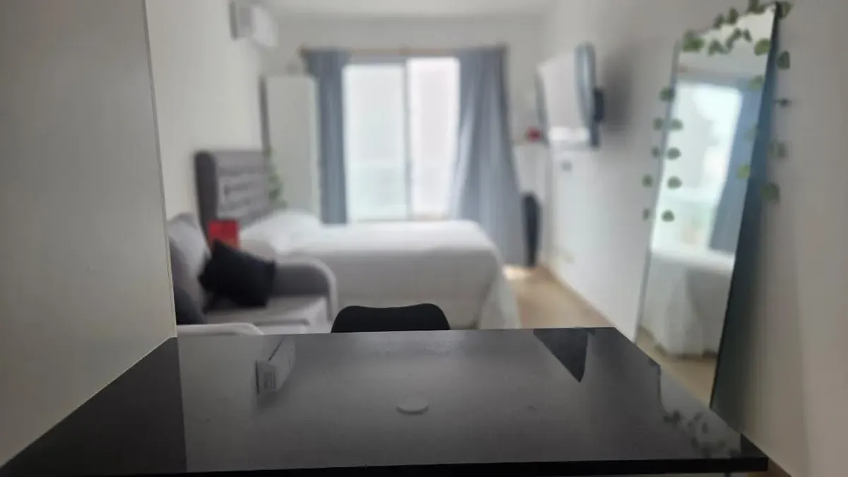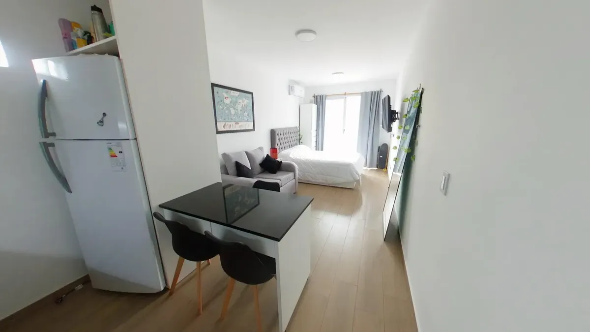 Квартира-студия в аренду на срок, 4-й этаж, окна во двор, с балконом. Площадь в объявлении не указана; с мебелью и оборудованием, как на фото. Кондиционер сплит (холод/тепло), полуконегрированная кухня с газовой духовкой, холодильник с морозильной камерой, полноценная ванная комната. Максимальная вместимость 2 человека. В цену входят все платежи, кроме электроэнергии и коммунальных платежей здания; минимальный срок аренды 3 месяца.