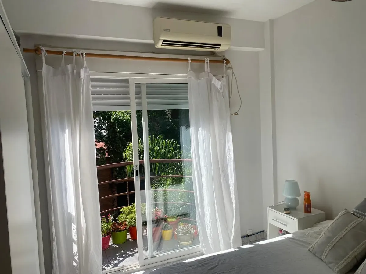 Квартира-студия в Coghlan/Colegiales на 2-м этаже. Балкон с окнами на улицу. Оснащена кондиционером, газовой варочной панелью и бойлером (termotanque). Ванная комната с душем. Указано, что объект расположен на Pedro Ignacio Rivera 3400, вблизи Hospital PIROVANO и станции Coghlan.