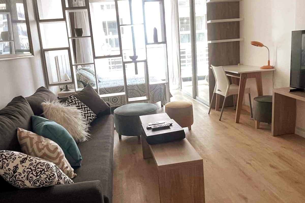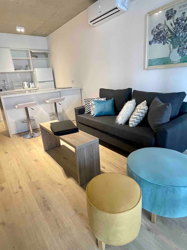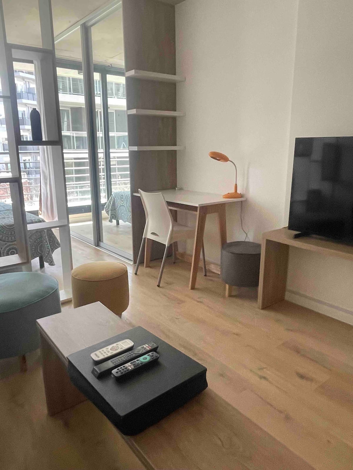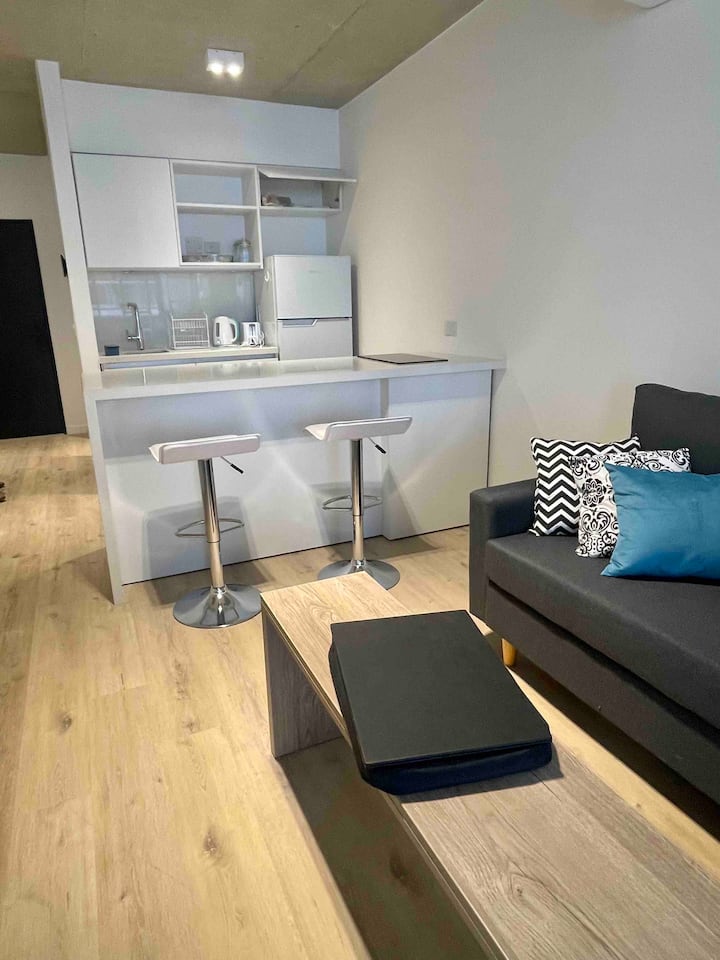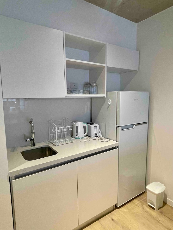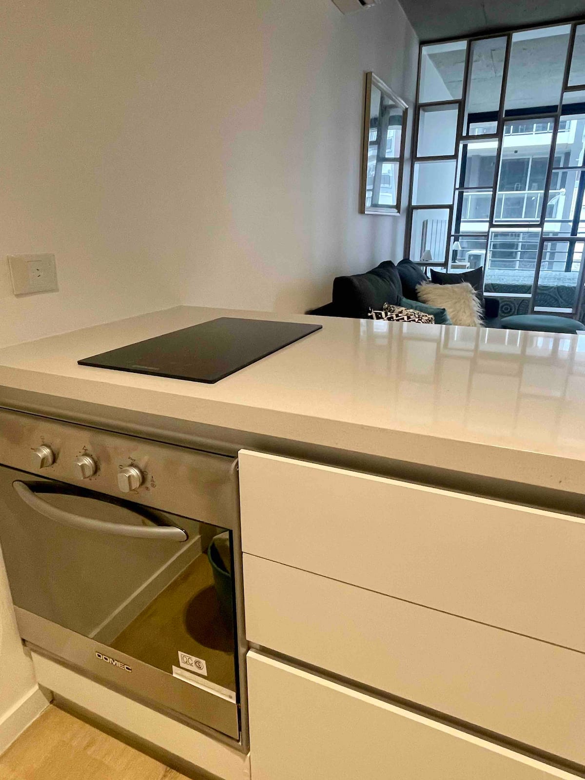 Квартира-студия в Coghlan, окна выходят на балкон. Есть кондиционер (горячий/холодный), двуспальная кровать (может быть разделена на 2 односпальные), письменный стол и телевизор 42" Smart LED с кабельным телевидением. Кухня оборудована холодильником с морозильной камерой, электрической духовкой, тостером и электрической кофеваркой. Ванная комната оборудована необходимыми удобствами, есть высокоскоростной Wi‑Fi. В описании также указаны парковочное место и охрана.
