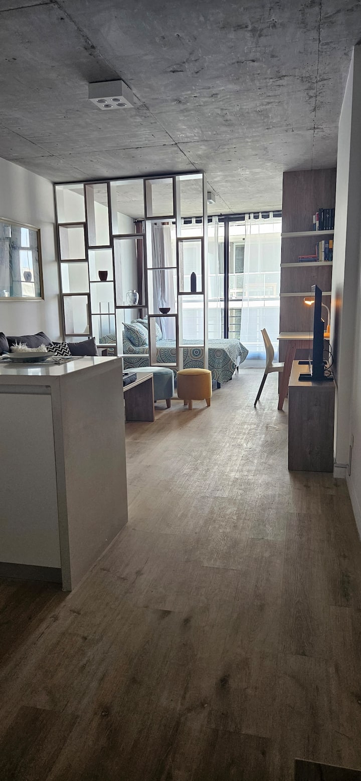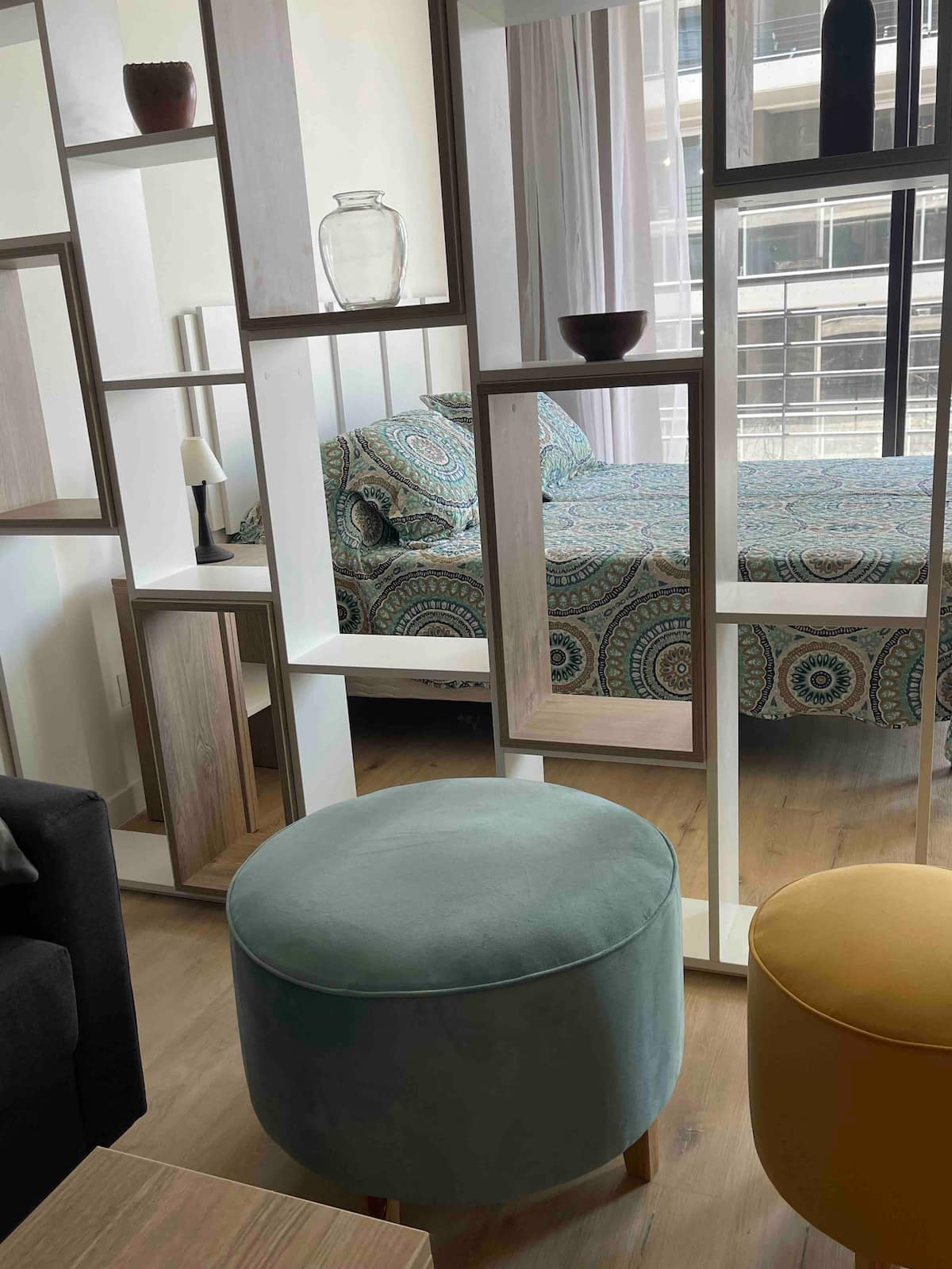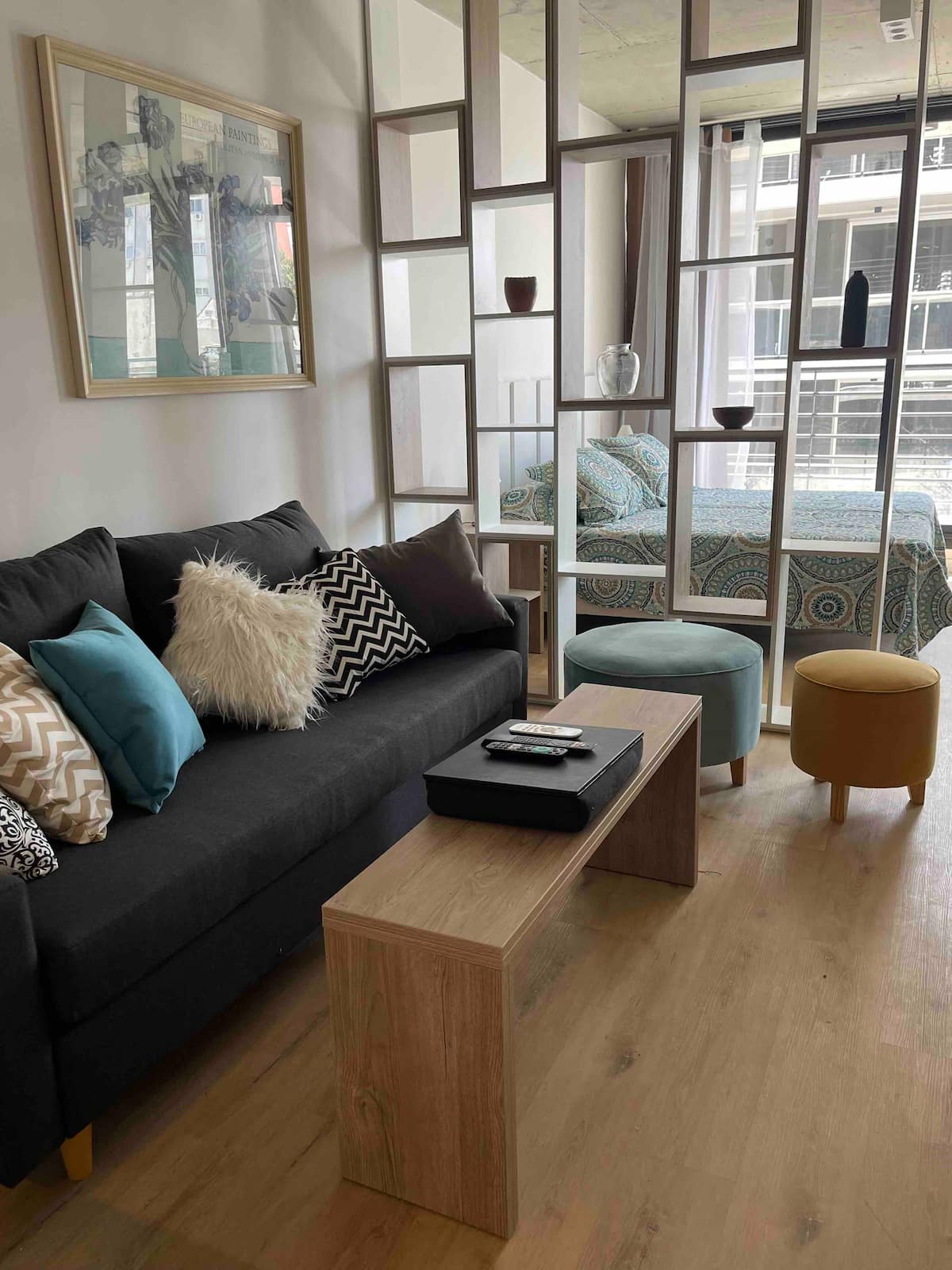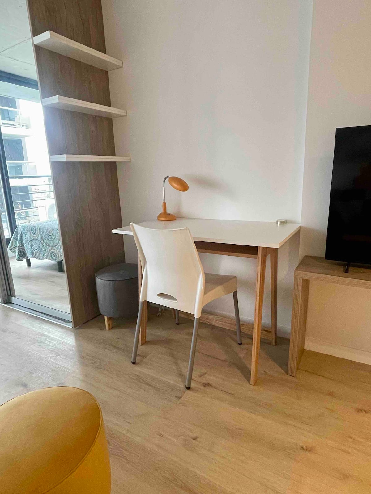Квартира-студия в Coghlan, окна выходят на балкон. Есть кондиционер (горячий/холодный), двуспальная кровать (может быть разделена на 2 односпальные), письменный стол и телевизор 42" Smart LED с кабельным телевидением. Кухня оборудована холодильником с морозильной камерой, электрической духовкой, тостером и электрической кофеваркой. Ванная комната оборудована необходимыми удобствами, есть высокоскоростной Wi‑Fi. В описании также указаны парковочное место и охрана.