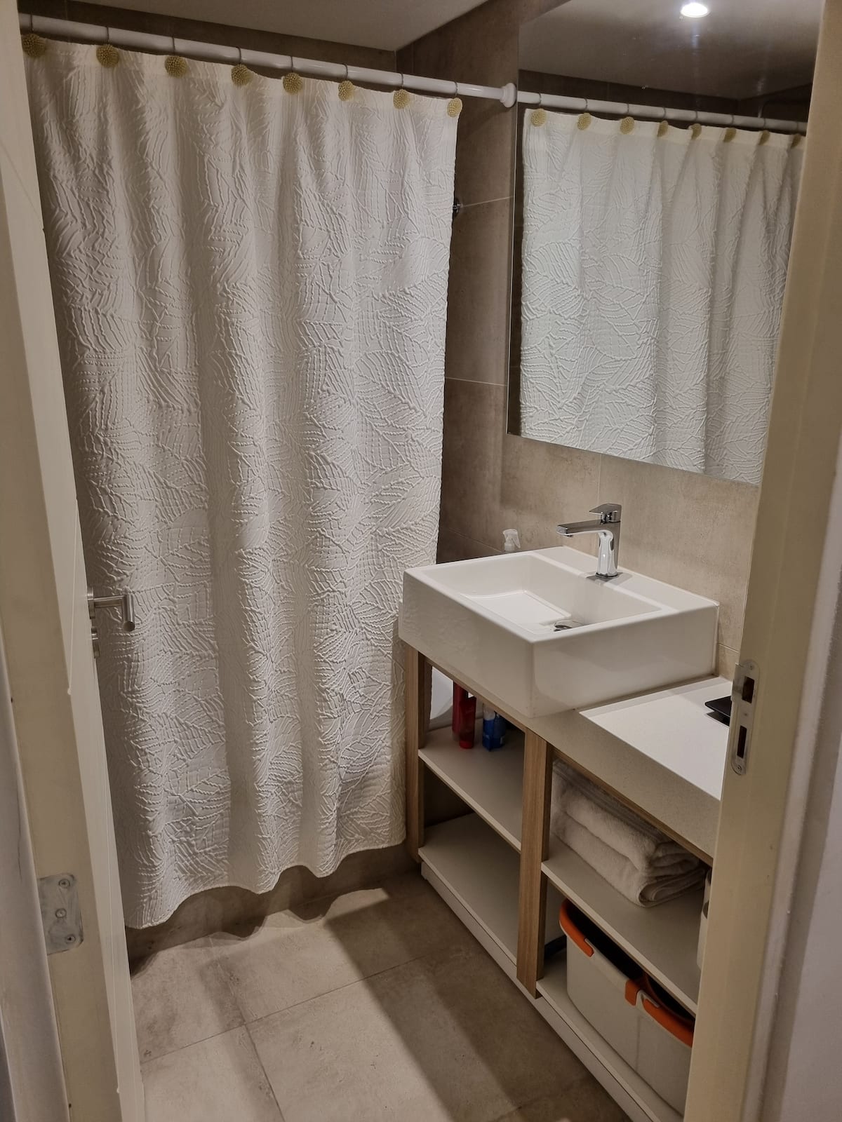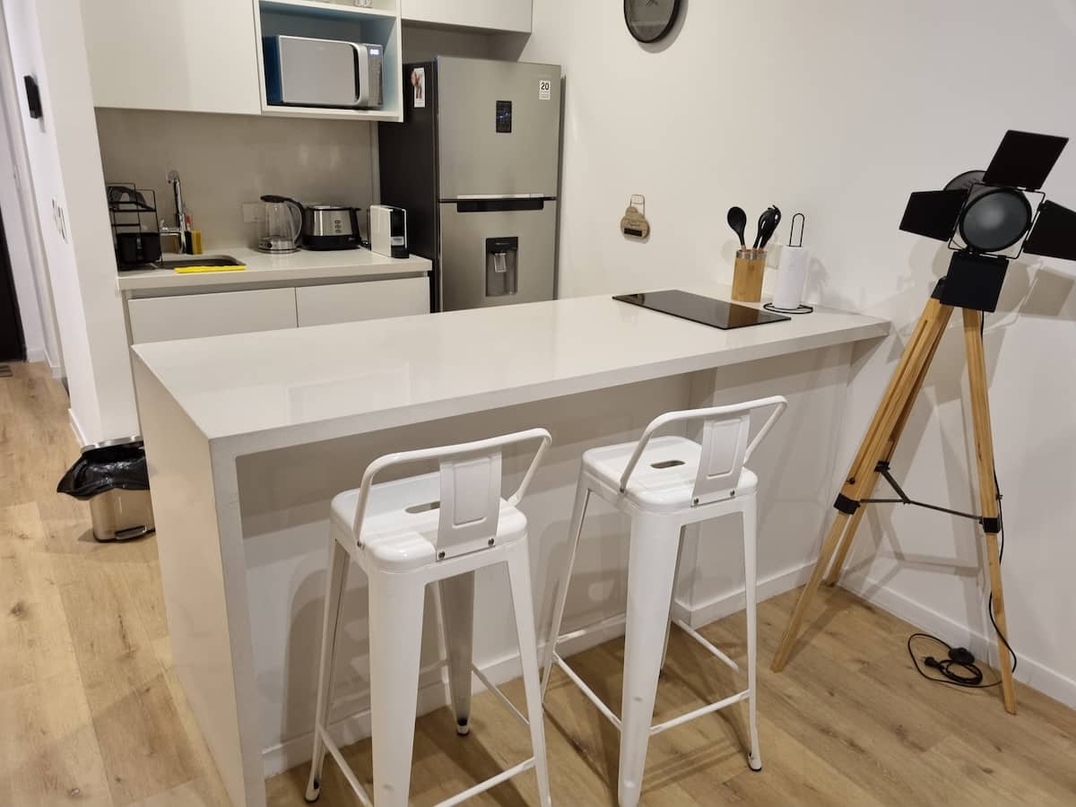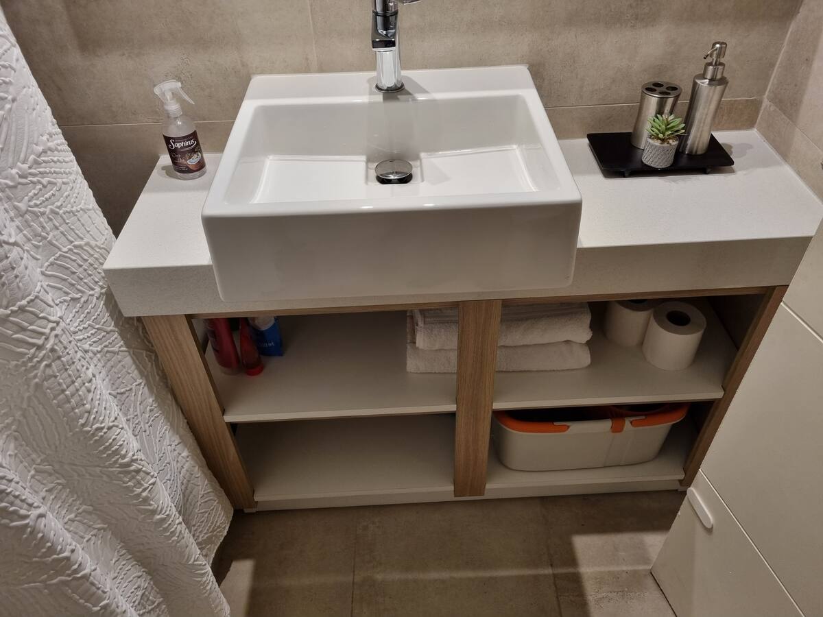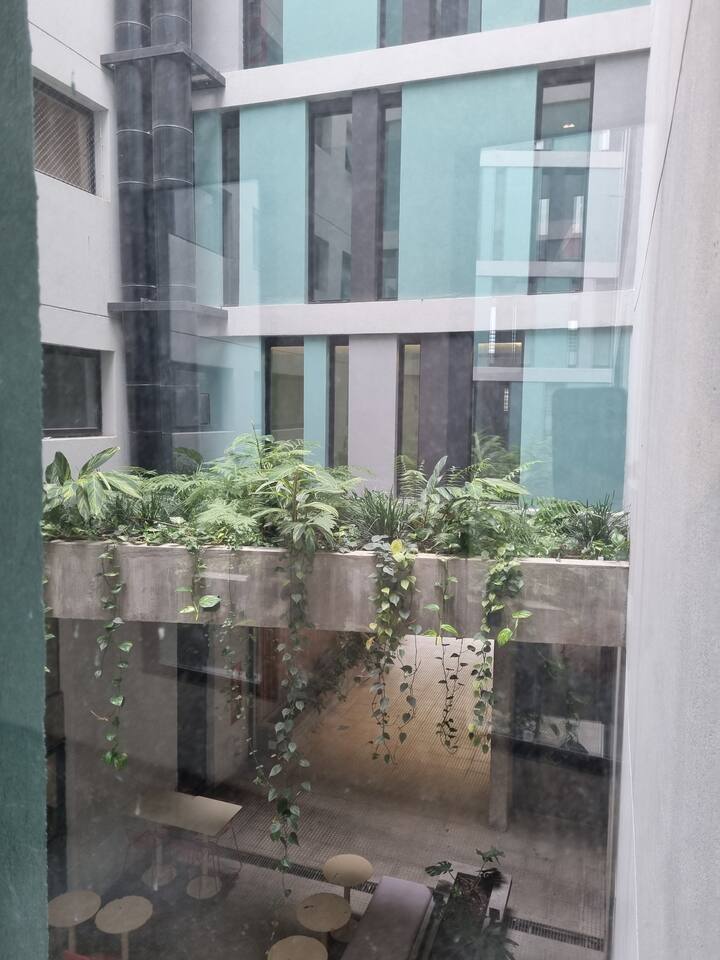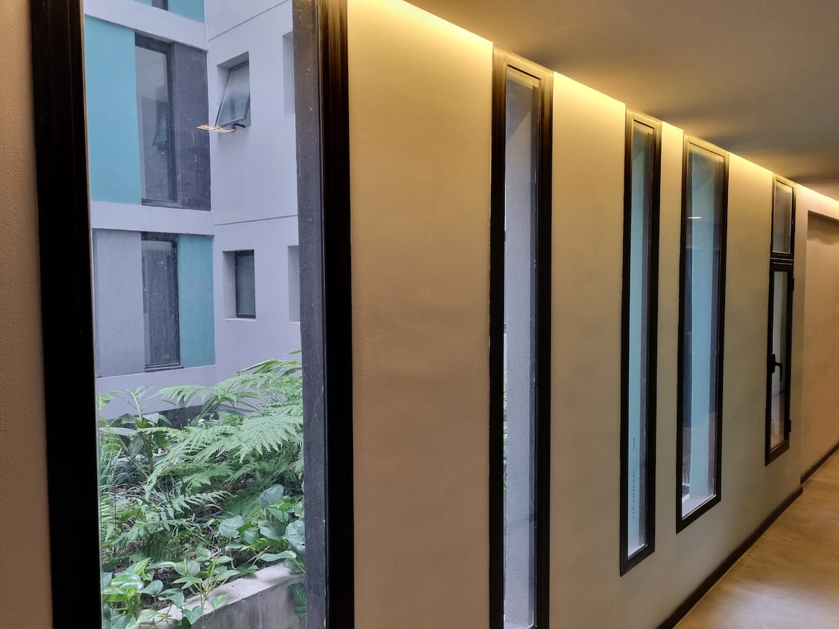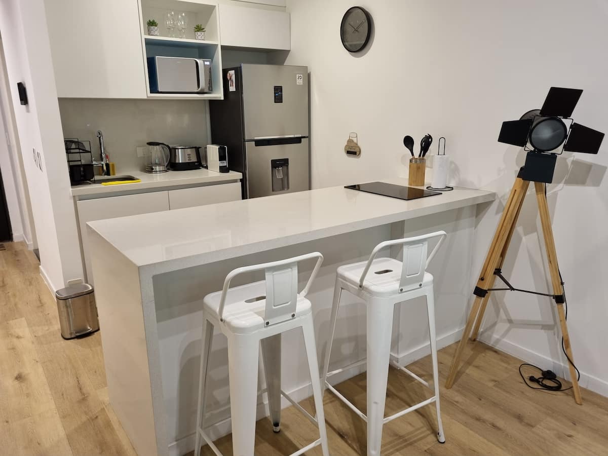 Квартира-студия площадью 43 m², новая. Большая гостиная с диваном-кроватью, балконом с деревянной отделкой и рабочим местом, быстрый WiFi. Кухня укомплектована, есть барная стойка для завтраков. В здании на крыше: бассейн, общая зона с солярием, прачечная; также есть тренажёрный зал. На первом этаже располагаются Lucciano's, Carrefour и кафе во внутреннем дворике. Территория с охраной и самостоятельное заселение.