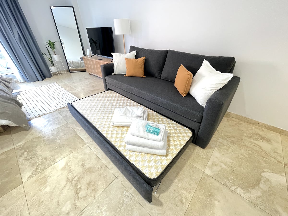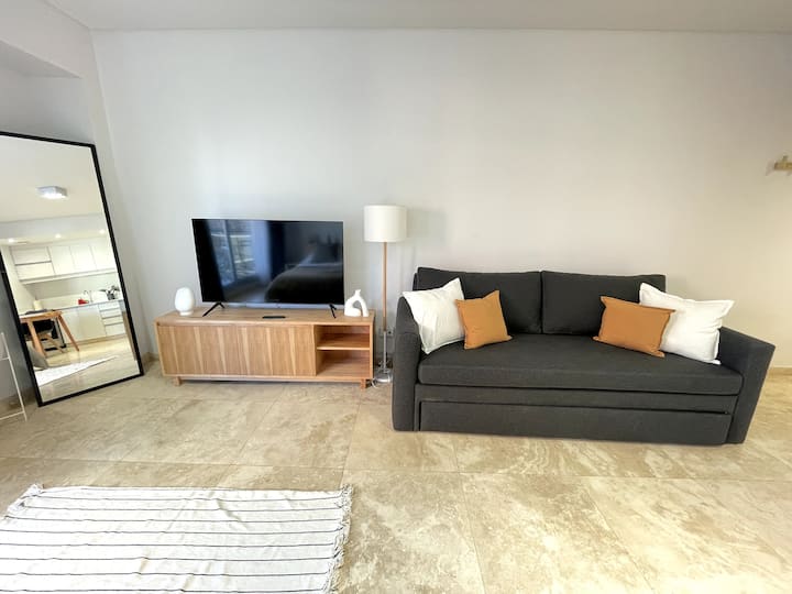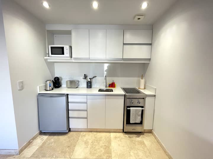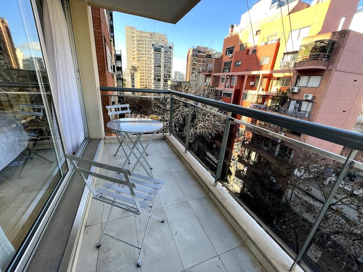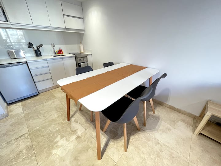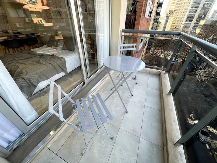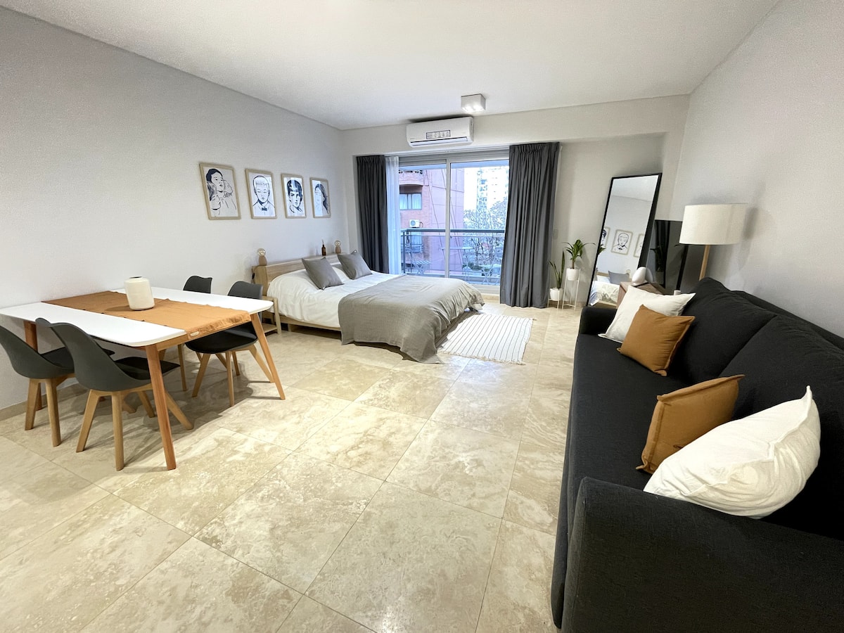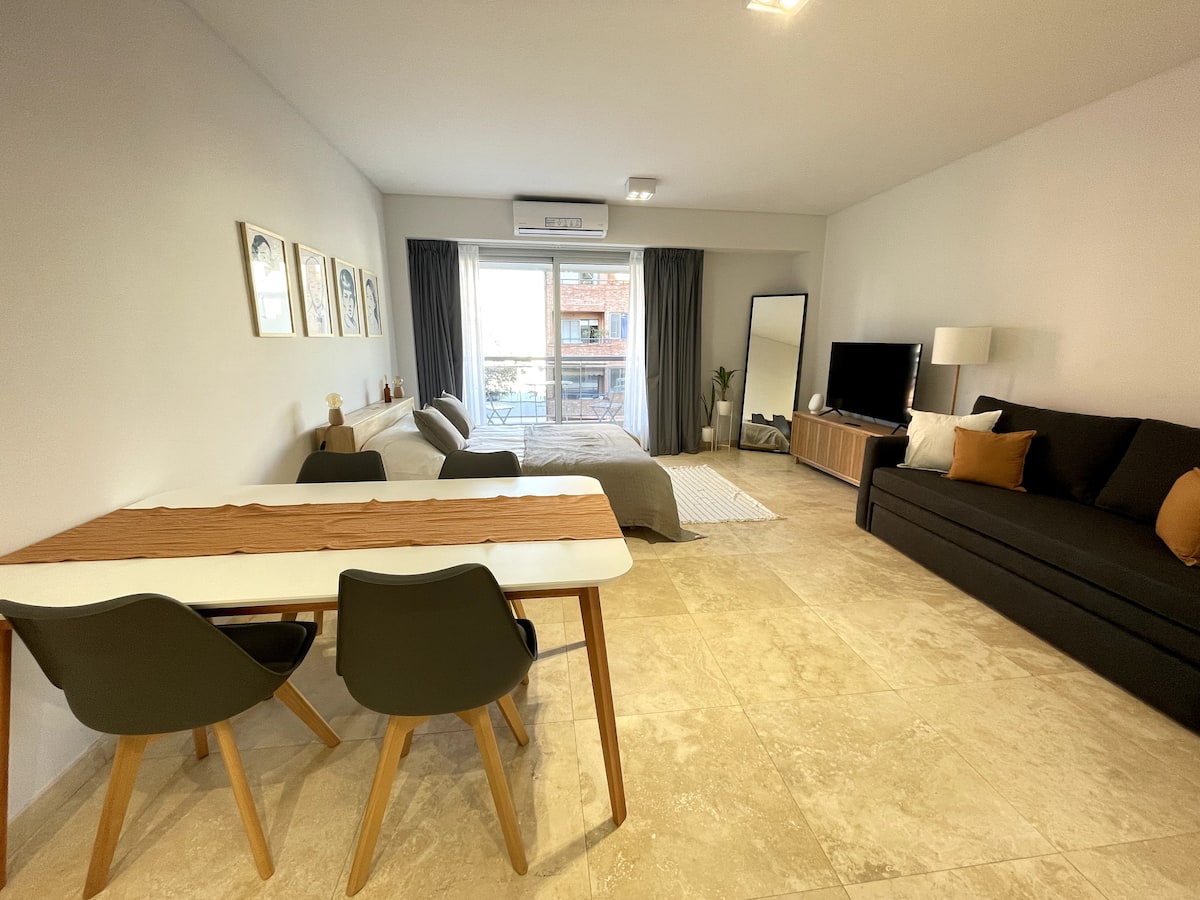 Квартира-студия площадью 40 m² в Colegiales, с мебелью. Есть кондиционер холод/тепло, Smart TV и обеденный стол. Спальные места: двуспальная кровать queen и диван-кровать на 2 места. Кухонные принадлежности в полном комплекте, посуда. Размещение рассчитано на 4 человека.