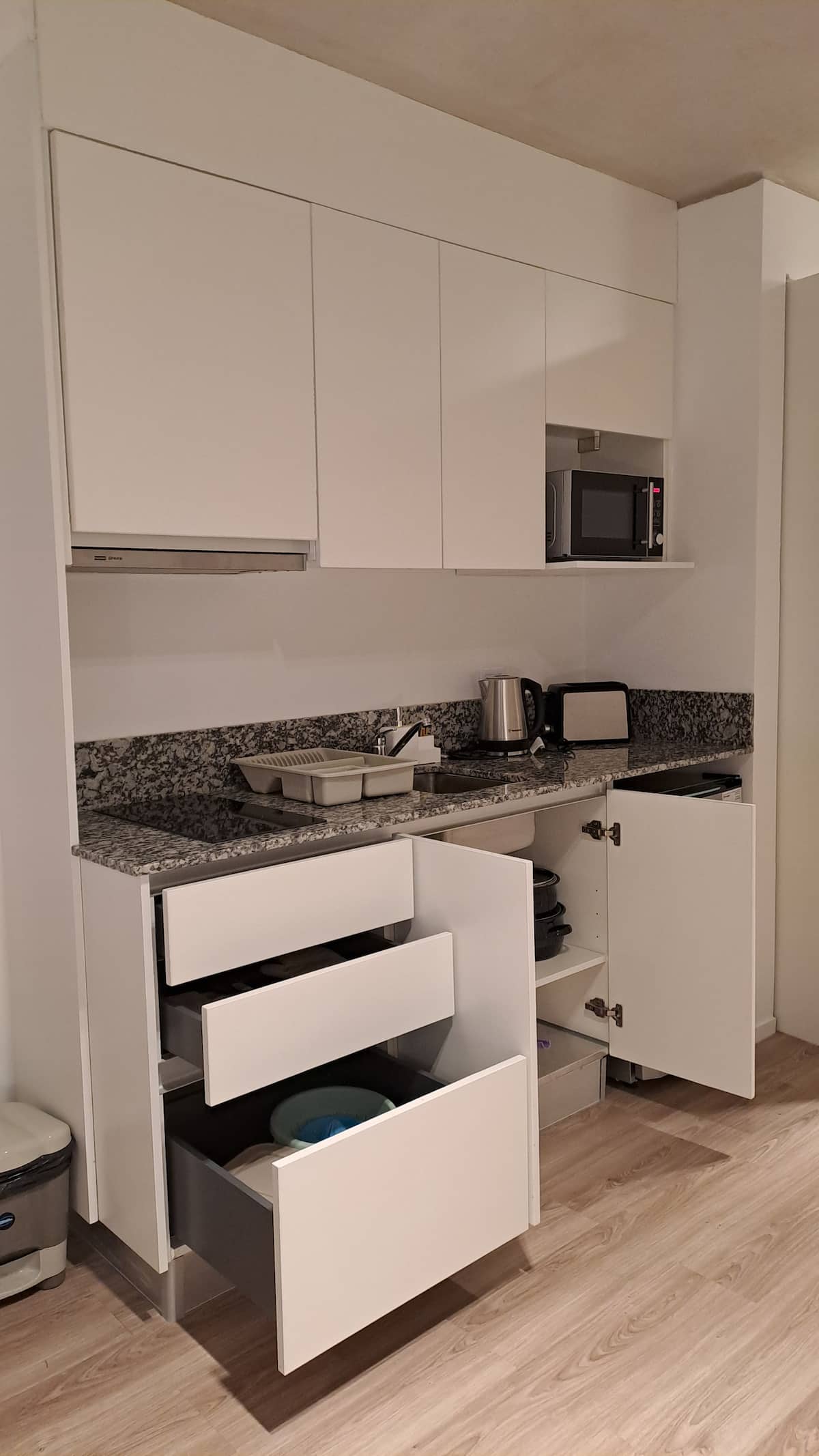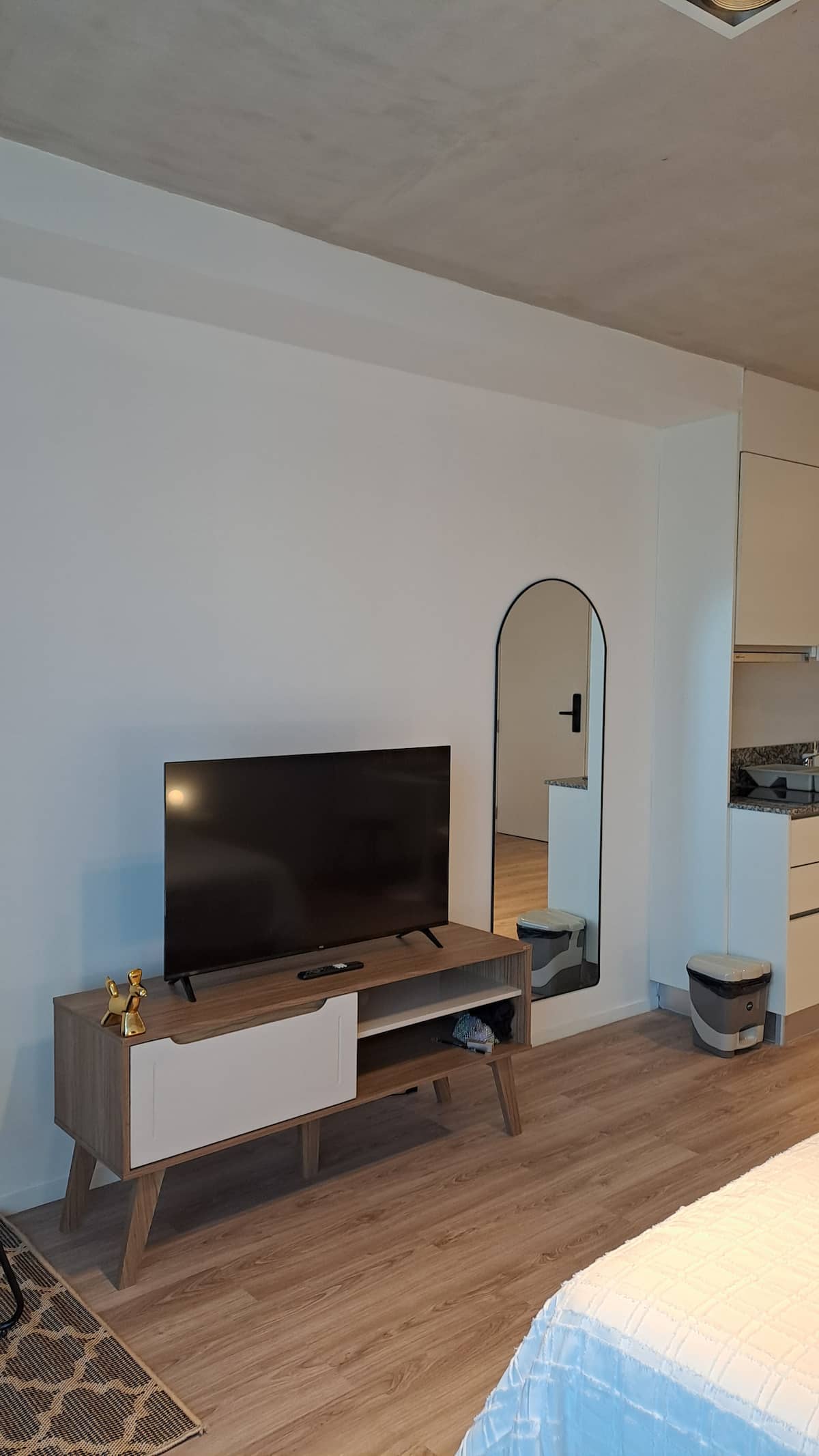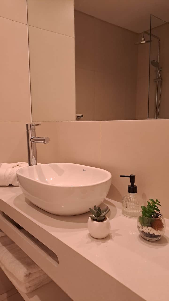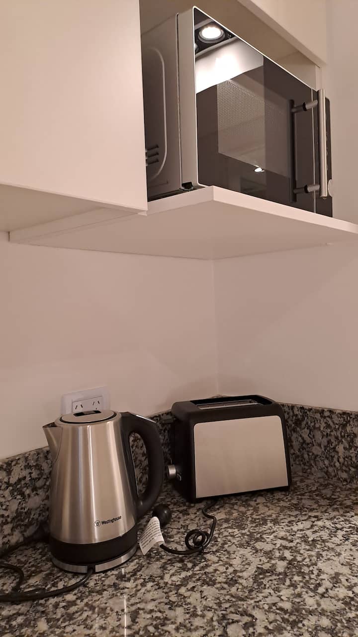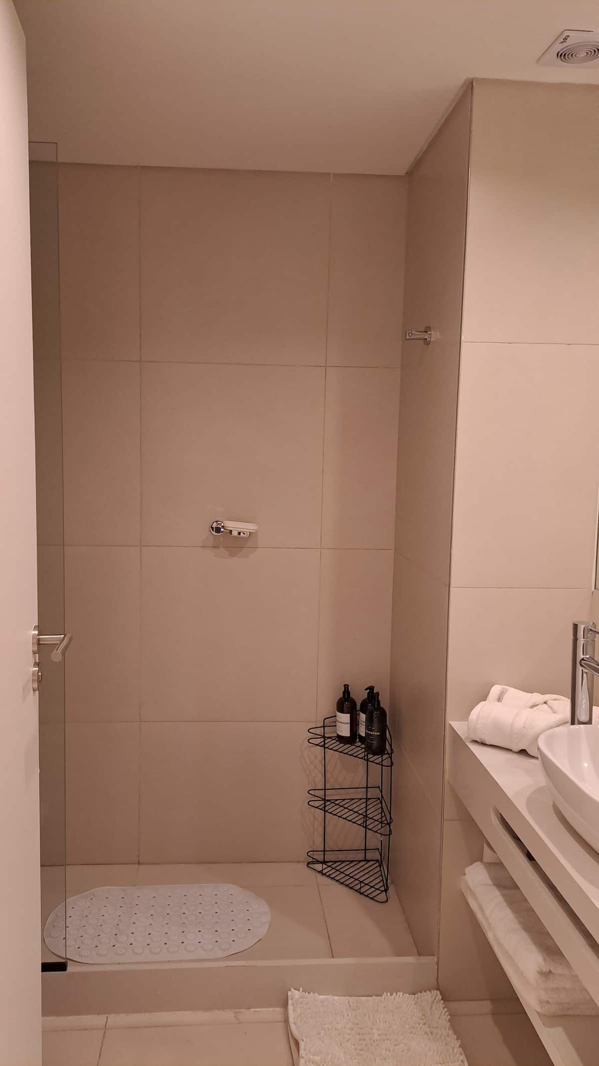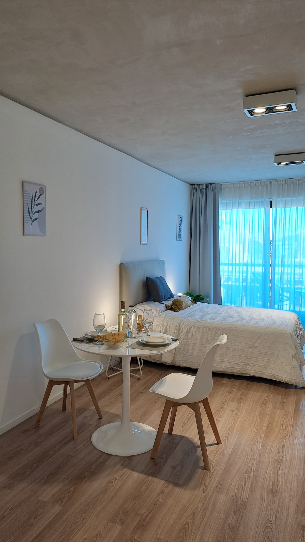 Квартира-студия площадью 30 m² в Colegiales на 5-м этаже. Окна выходят на балкон с мебелью. В квартире есть двуспальная кровать, системы хранения и шторы, полностью оборудованная кухня с электрической плитой, микроволновой печью и холодильником, а также кондиционер, Wi‑Fi и Smart TV. В ванной комнате установлена душевая кабина, фен и полотенца, предусмотрены утюг и гладильная доска, есть стол на 2 места. В здании предусмотрены бассейн, солярий, спортзал и прачечная. Прачечная — самообслуживание