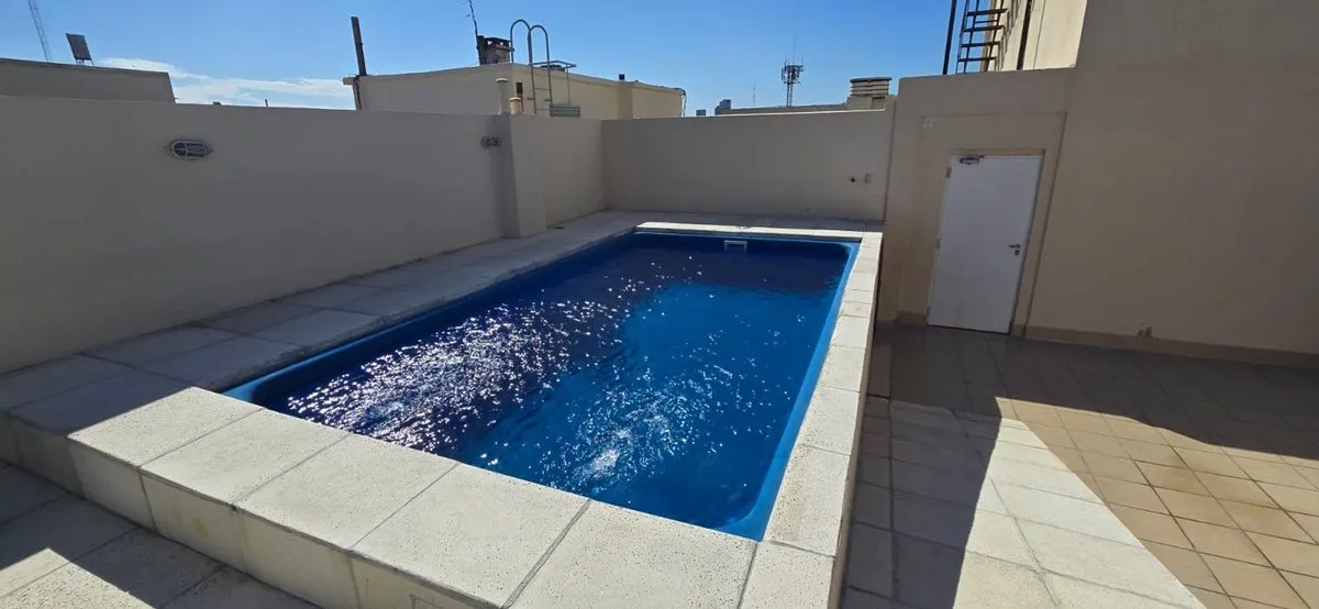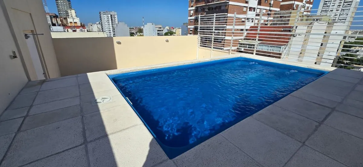 Квартира-студия в Colegiales площадью 39 m² (35 m² крытых и 4 m² полукрытых) на 7-м этаже в доме на 9 уровней. Окна во двор (contrafrente). Кухня оборудована электрической варочной поверхностью и барной стойкой, зона отдыха и спальня разделены мебельной перегородкой. Полная ванная комната и балкон. Кондиционер, встроенный шкаф для хранения, кладовая в комплексе. В здании есть бассейн с открытым видом. Квартира передаётся частично с мебелью: посуда, столовые приборы, холодильник и телевизор; двус
