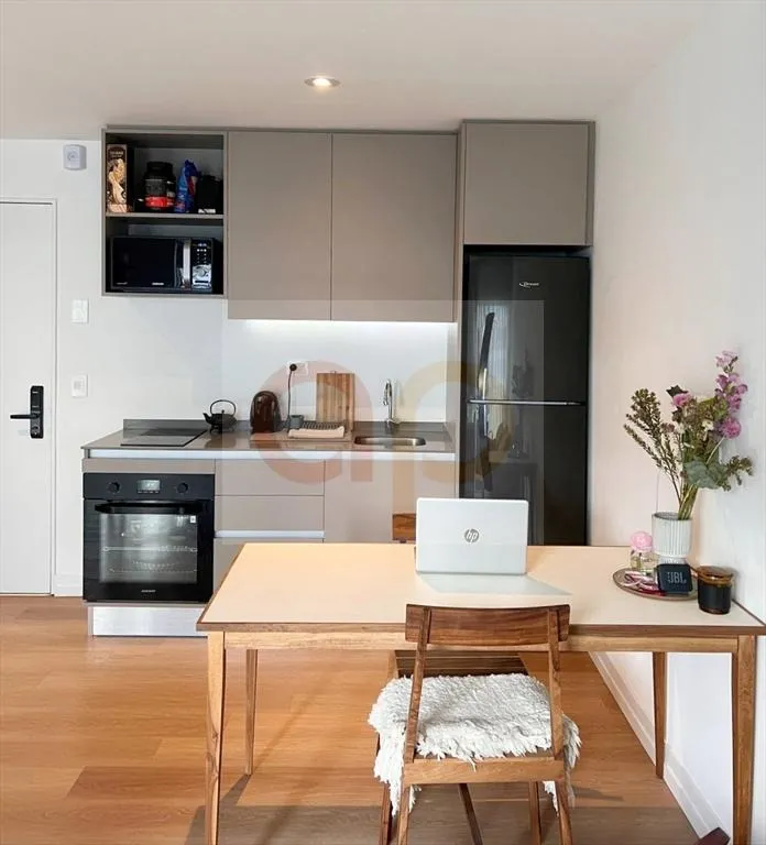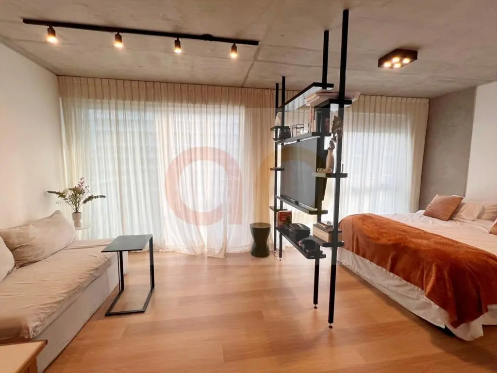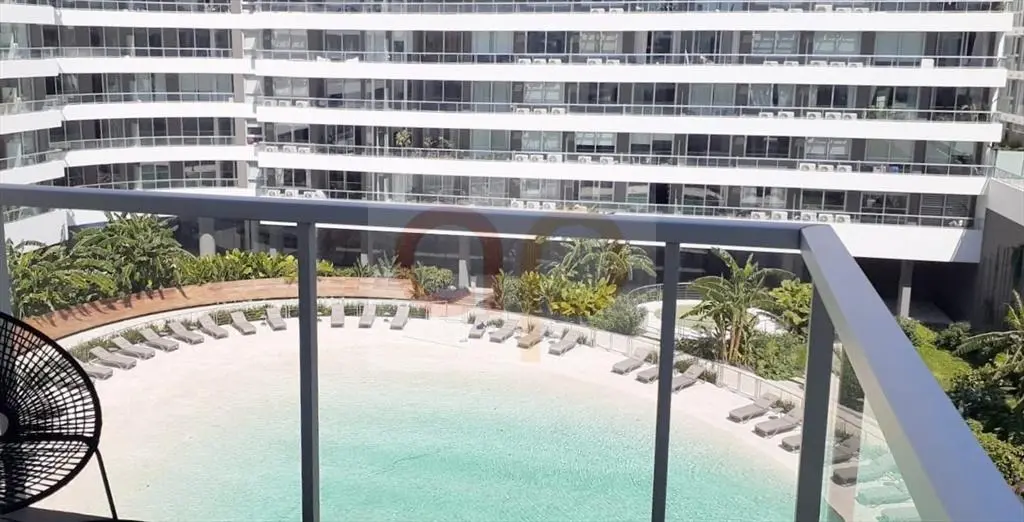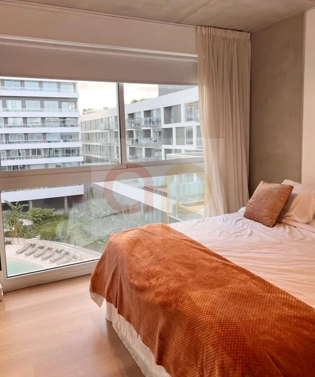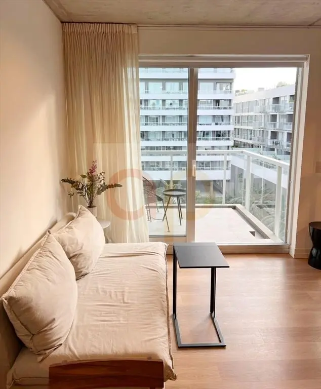Квартира в Colegiales площадью 35 m² крытых и 42 m² общих, ориентация на северо-восток. Кухня объединена с гостиной-столовой; в зоне гостиной паркет/ламинат, большое панорамное окно и выход на балкон. В квартире двуспальная кровать, встроенная кухня с электрической варочной панелью на 2 конфорки и электрической духовкой, ванная комната с ванной. Здание с круглосуточной охраной, крытым и открытым бассейном, гидромассажем, тренажёрным залом, SPA (сухая и влажная сауна, массажные кабинеты, шотландс