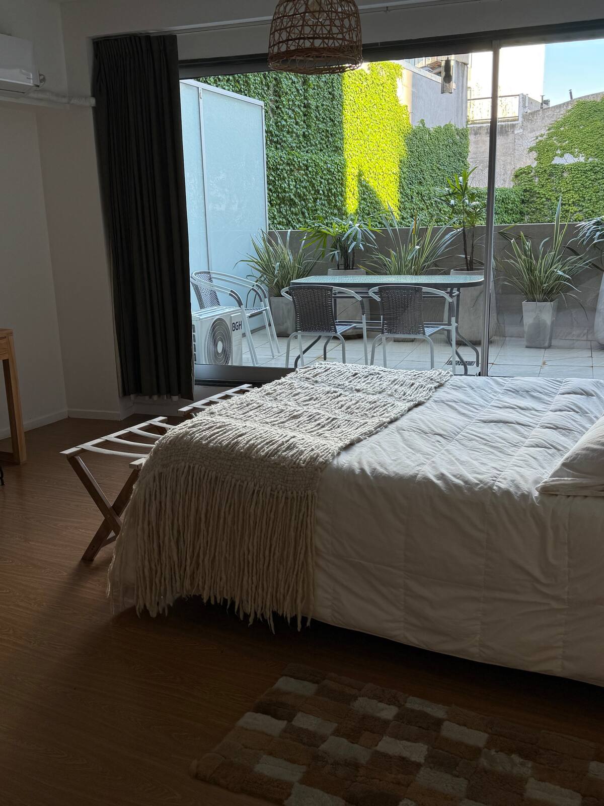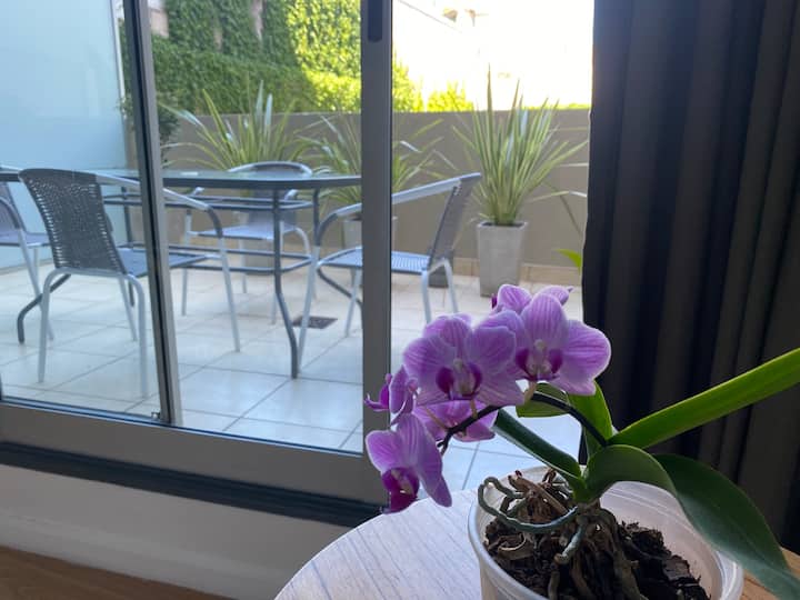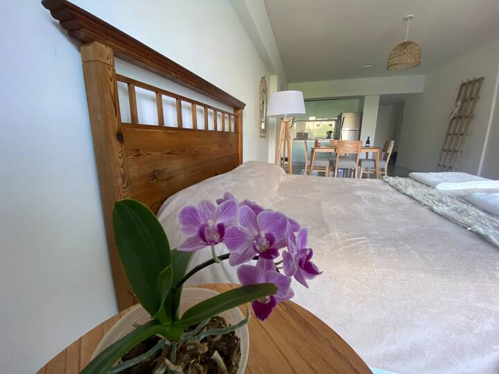 Квартира-студия площадью 52 m² с балконом и террасой. В распоряжении двуспальная кровать на 2 человека, полностью оборудованная кухня на 4 персоны, ванная комната. В здании есть прачечная. Размещение рассчитано на 2 человека. Без домашних животных; курение разрешено только на балконе.