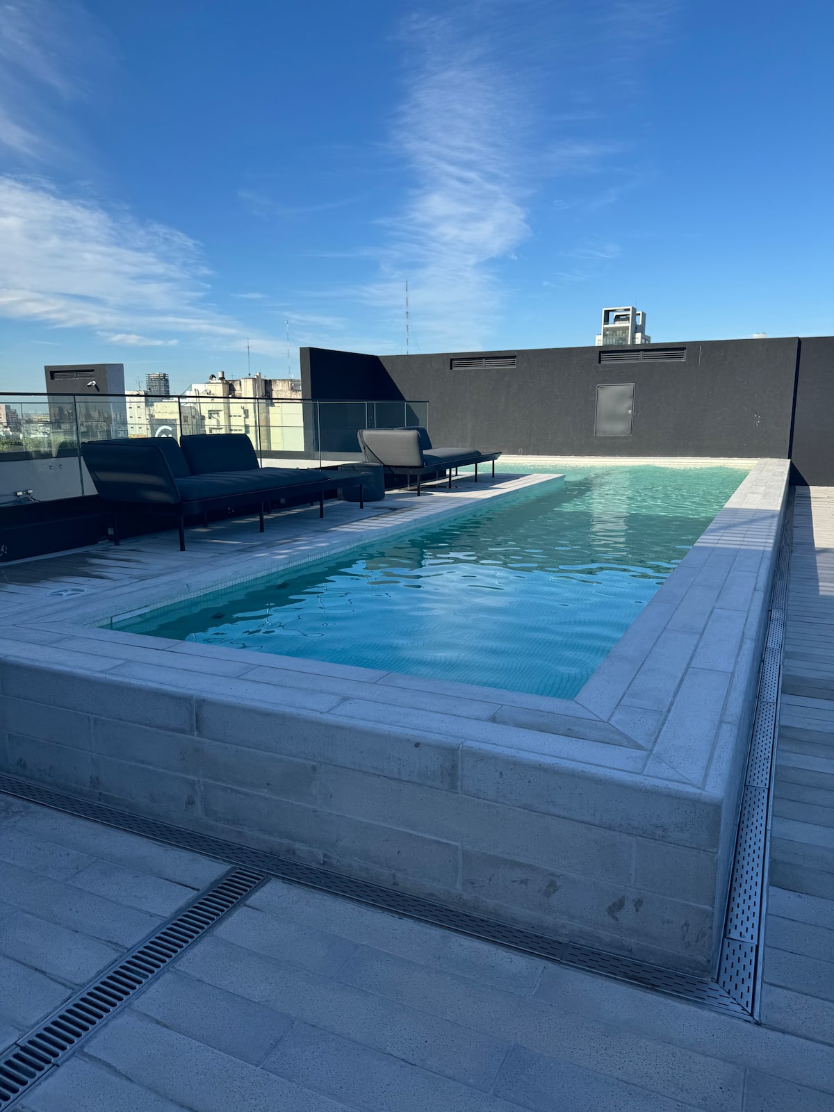 Квартира-студия в здании в Colegiales на границе Palermo. В доме предусмотрена охрана 24 часа. Есть крытый подогреваемый бассейн, тренажёрный зал, коворкинг и терраса с солярием. Также указаны зоны гриля и второй бассейн на открытом воздухе.