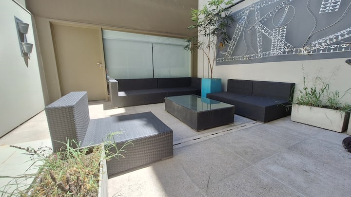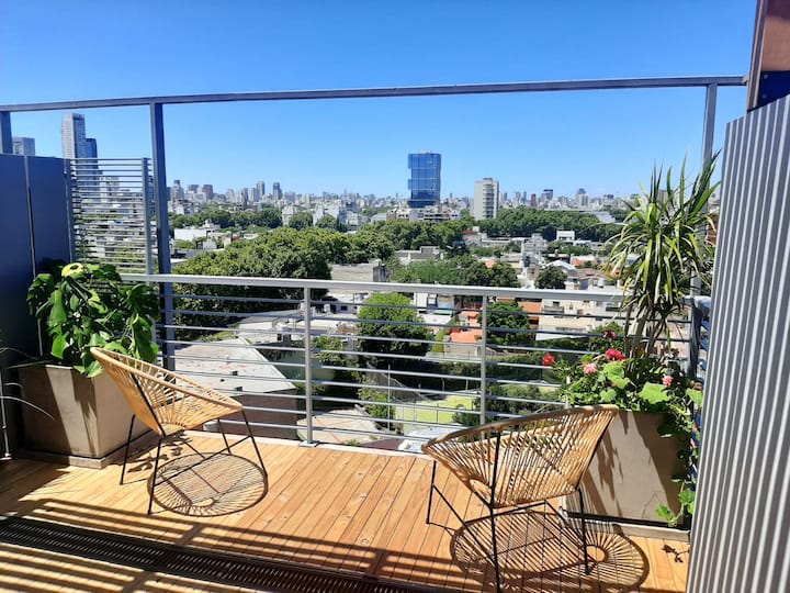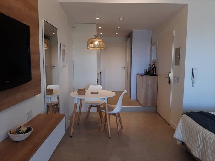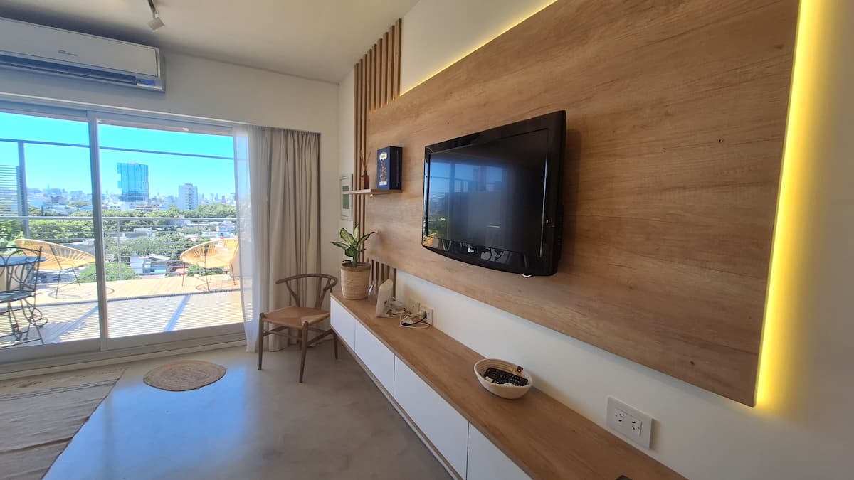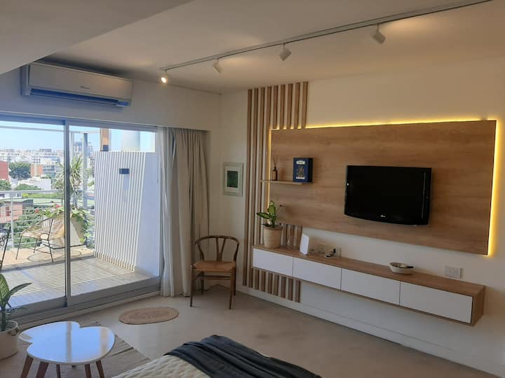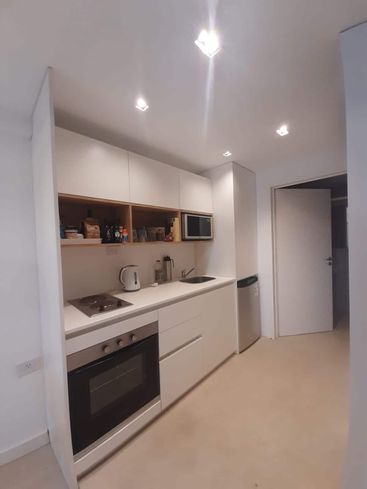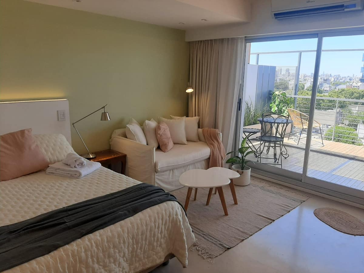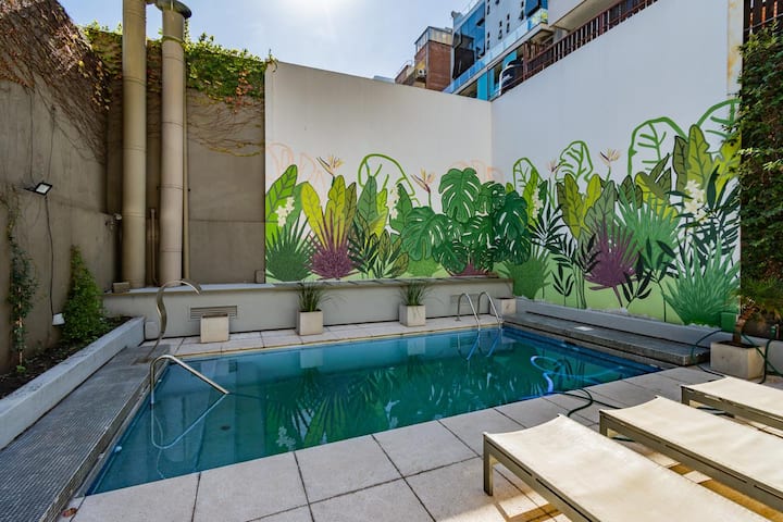 Квартира-студия площадью в Colegiales, после полной реконструкции. Окна выходят на внутренний двор, есть бассейн. Меблировка и набор мебели или техники в объявлении не указаны.