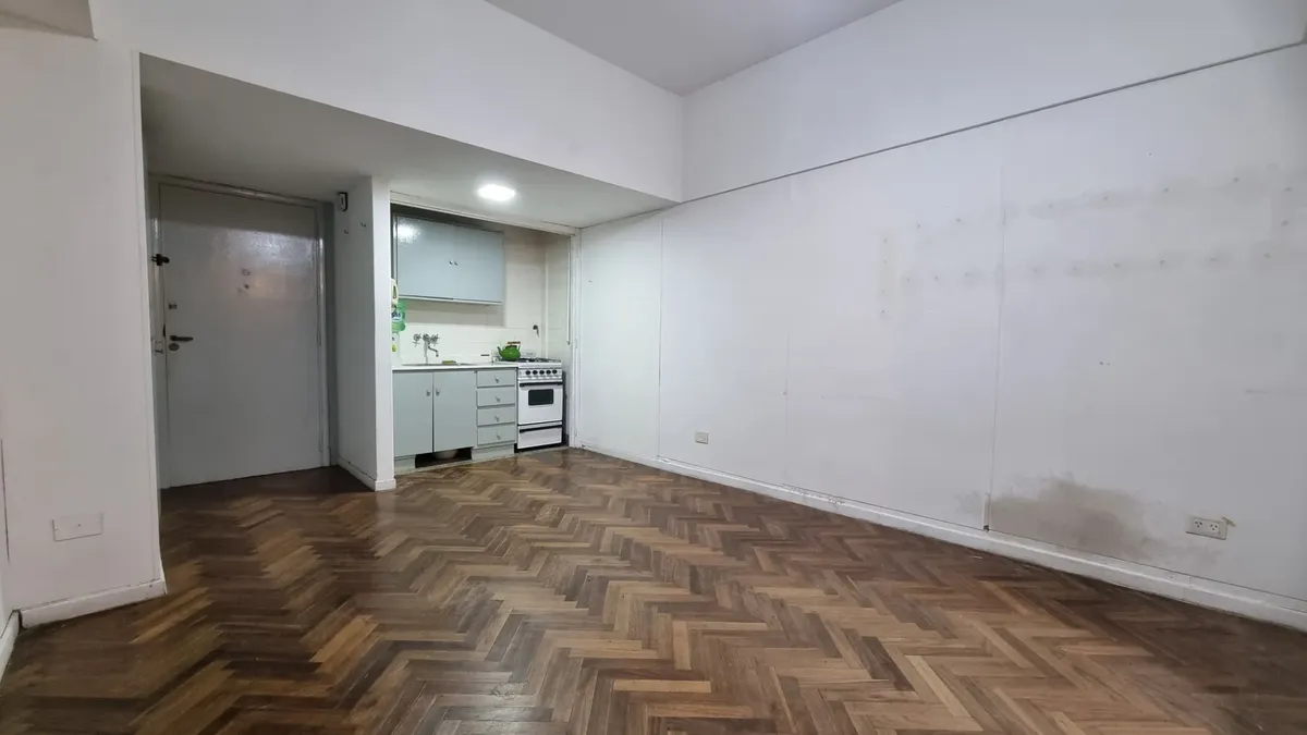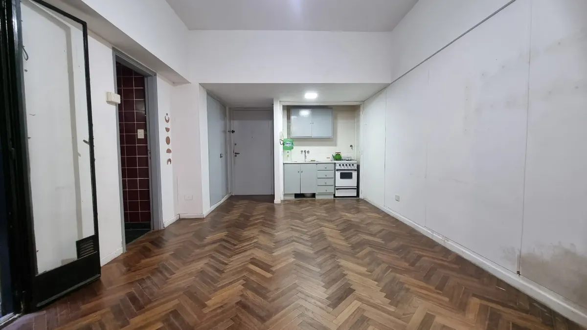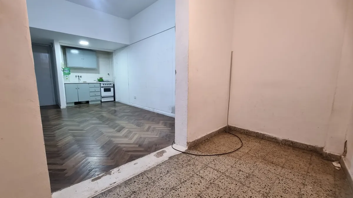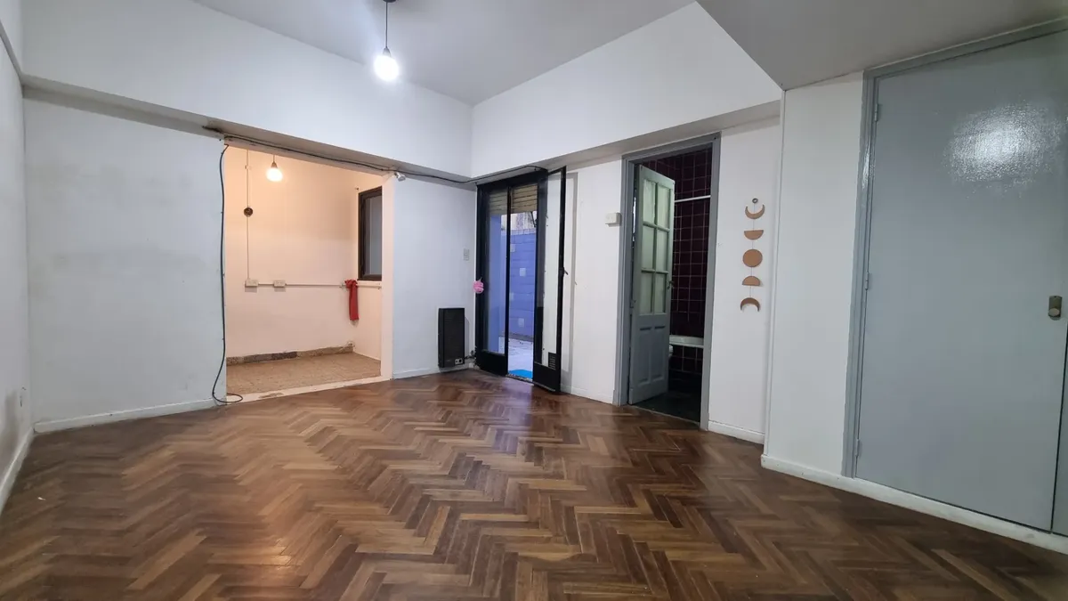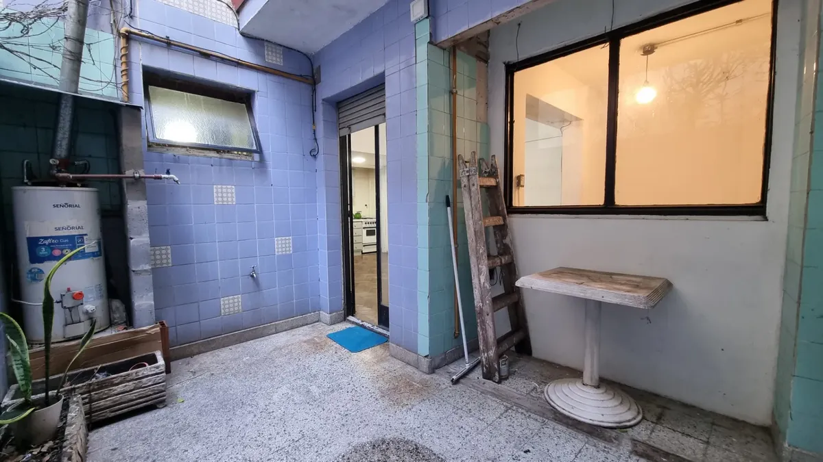 Квартира-студия площадью на первом этаже с патио. Внутри паркетный пол в хорошем состоянии, место для рабочего стола, встроенный шкаф и печь. Кухня с газовой духовкой, столешницей и навесными шкафами, ванная комната с ванной и вентиляцией во внешнюю сторону. Патио 3x3.5 m² с местом для стиральной машины; на 4-м этаже есть общая терраса.